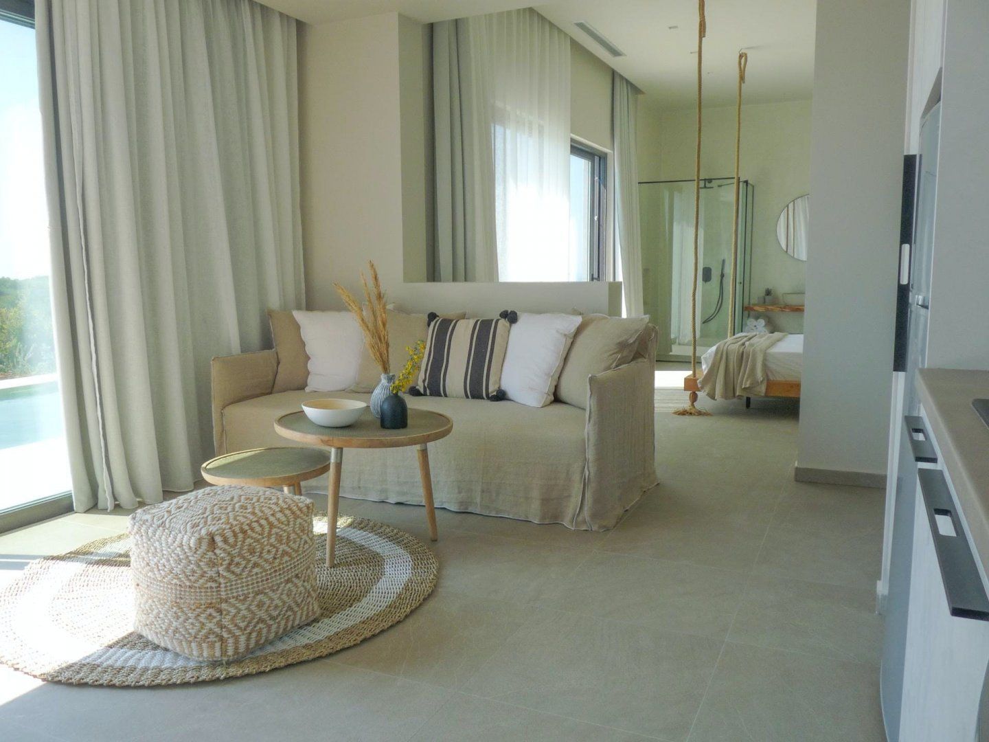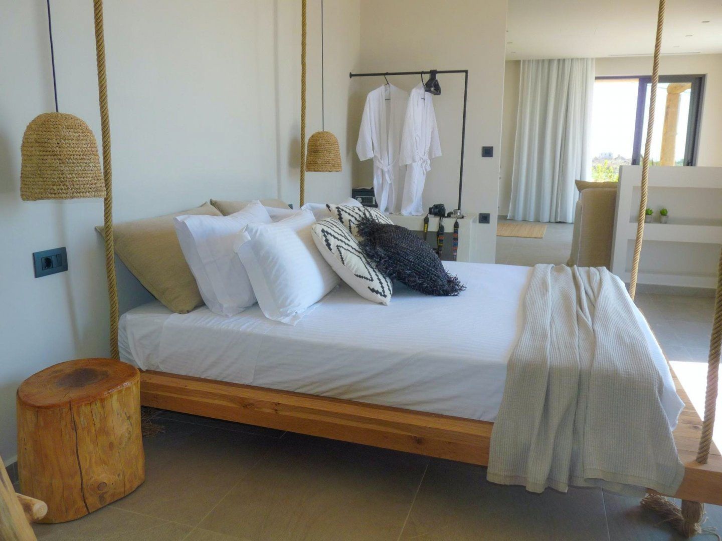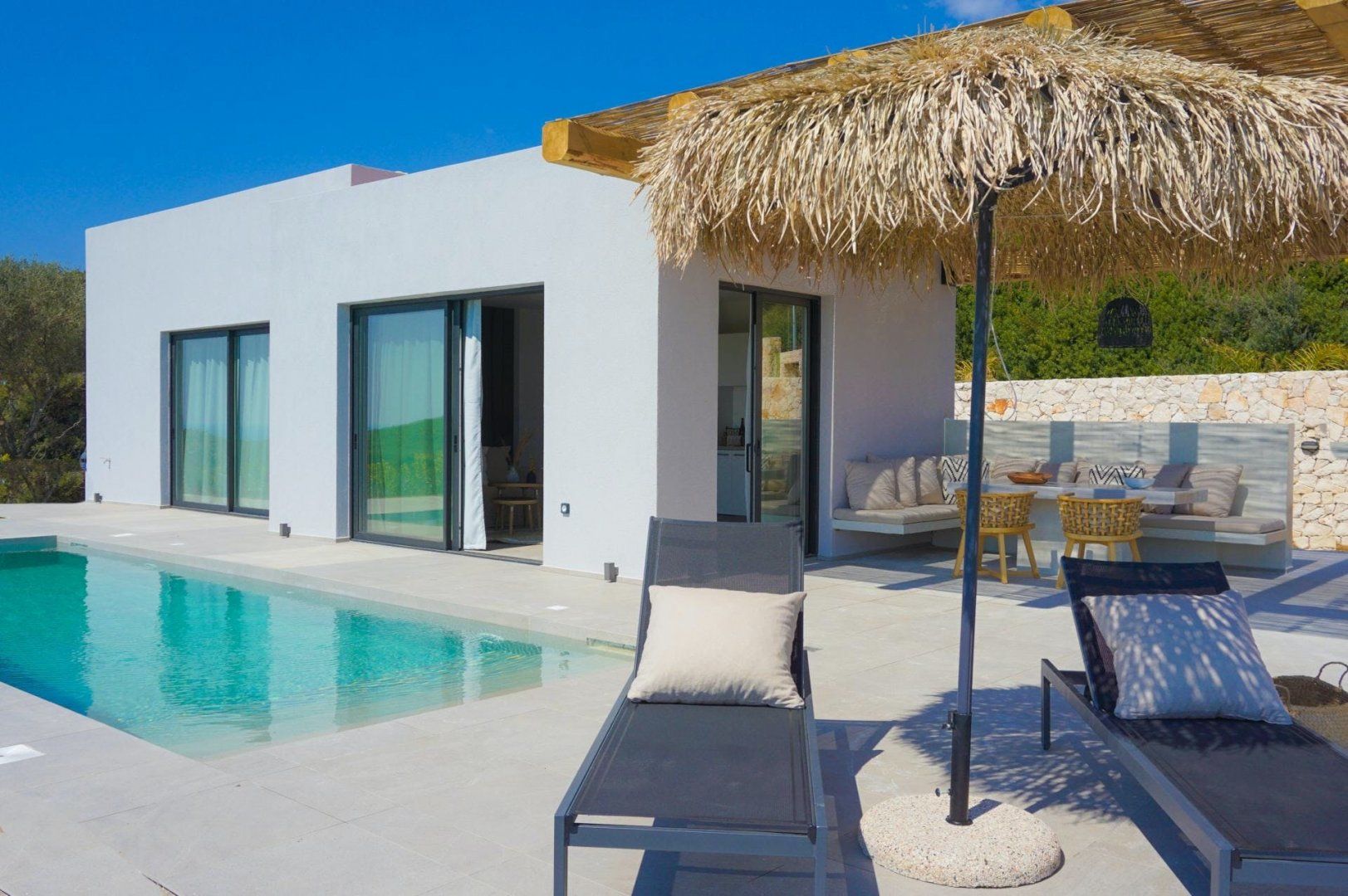 Boasting impressive views over the Ionian, this villa is an idyllic spot to call home in Kefalonia’s Livathos region. The simplicity of the space allows the natural surroundings of this villa to shine – we like how light-flooded the interiors are as well as the minimalist design touches. Though the kitchen is on the small side, the nearby village of Spartia offers authentic tavernas and a bakery. Pick up some produce and tuck in on your sun-dappled terrace before enjoying a siesta under the parasols or a dip in the pool.