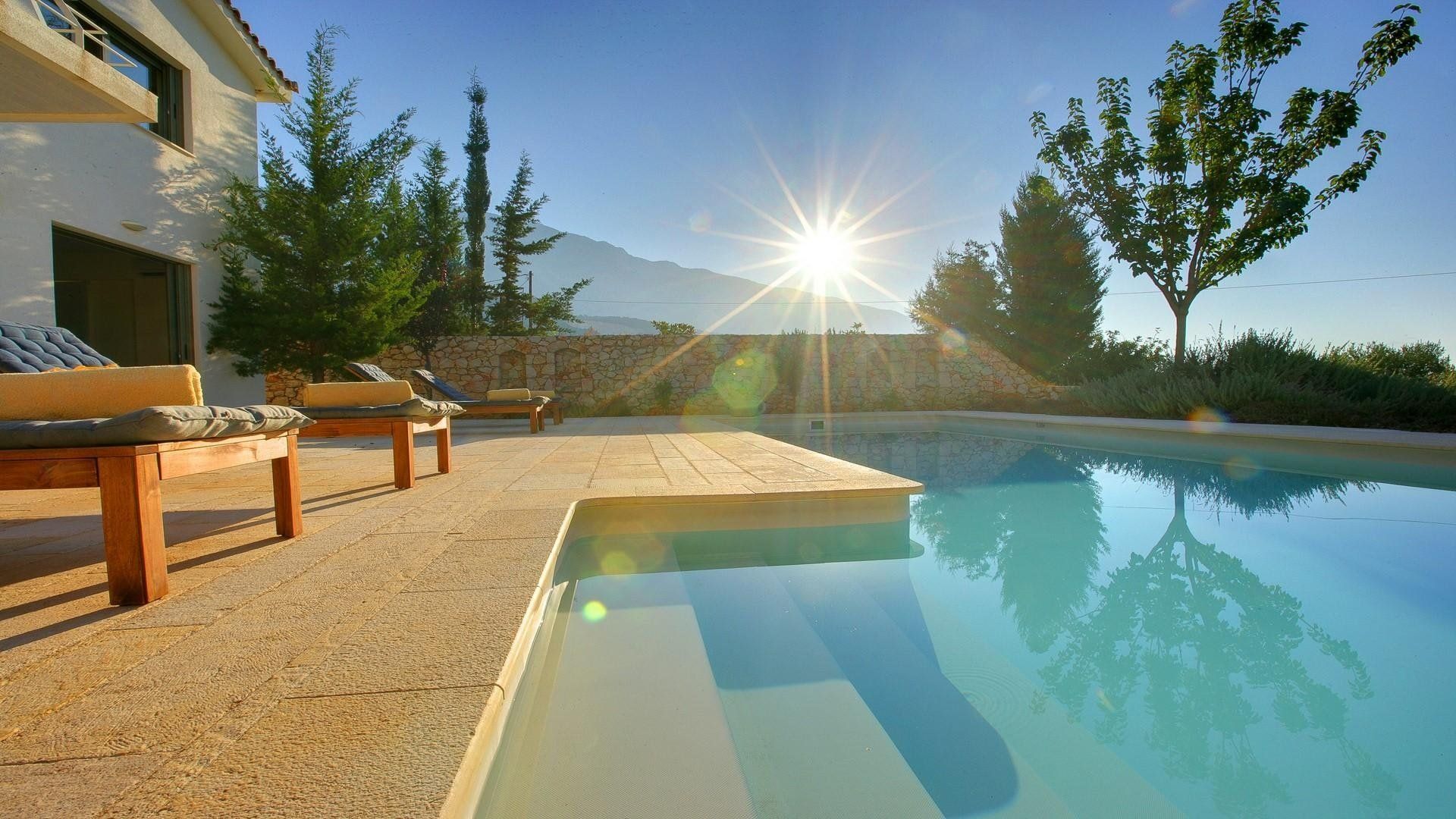 With nothing but the sweet bird song and gentle sea breeze rustling through the surrounding trees, this one is an oasis of calm serenity. Days begin with a fresh Greek coffee on the terrace, before lazing the hours away on a sun lounger. Take a dip in your crystal clear pool, before drying off for an alfresco lunch on the terrace. Famous for its black fir and wild horses, this southern location is particularly romantic – the perfect setting for pre-dinner drinks as the meat sizzles on the barbecue.