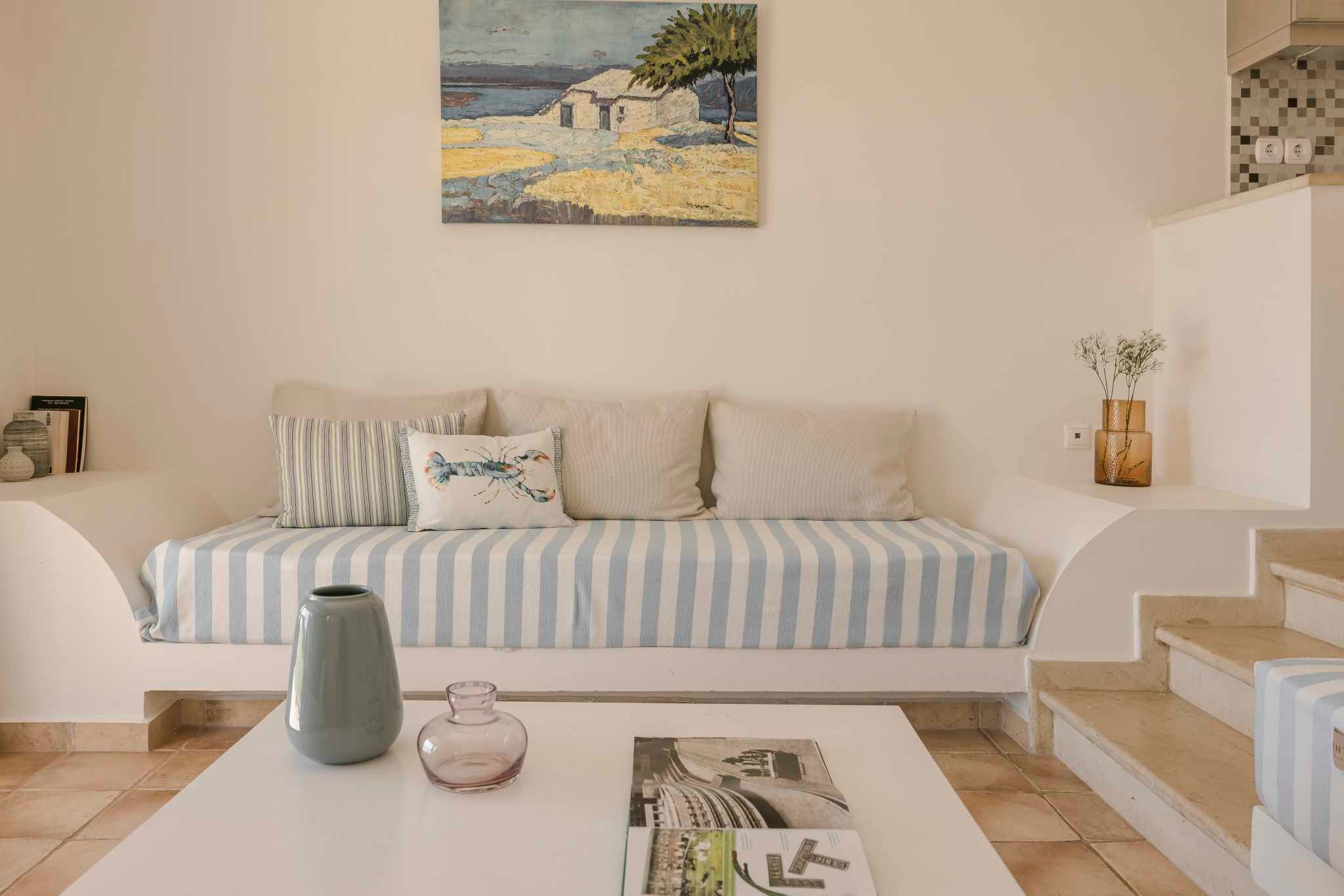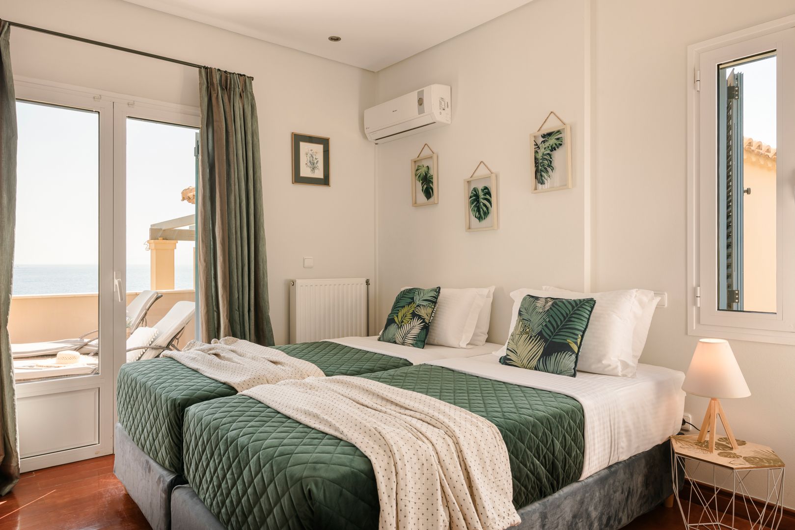 Just steps away from a stunning, pristine beach, this villa is the perfect escape for families and friends. With two separate houses, you’ll share time with those closest to you before stepping out into the large garden to share a glass of wine as you watch the sun sink into the Ionian Sea. The various terraces and balconies overlooking the coast are perfect spots to enjoy your Greek omelettes in the morning as you plot out the day ahead.