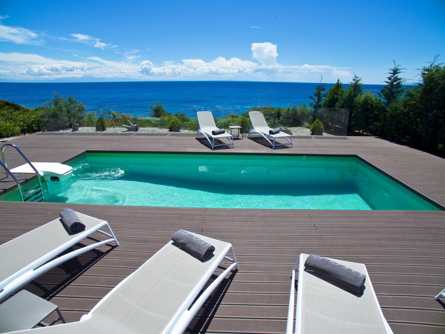 Soak up peaceful serenity on a sunbed by the glittering pool or take the kids snorkelling via access to the sea at the foot of the garden.