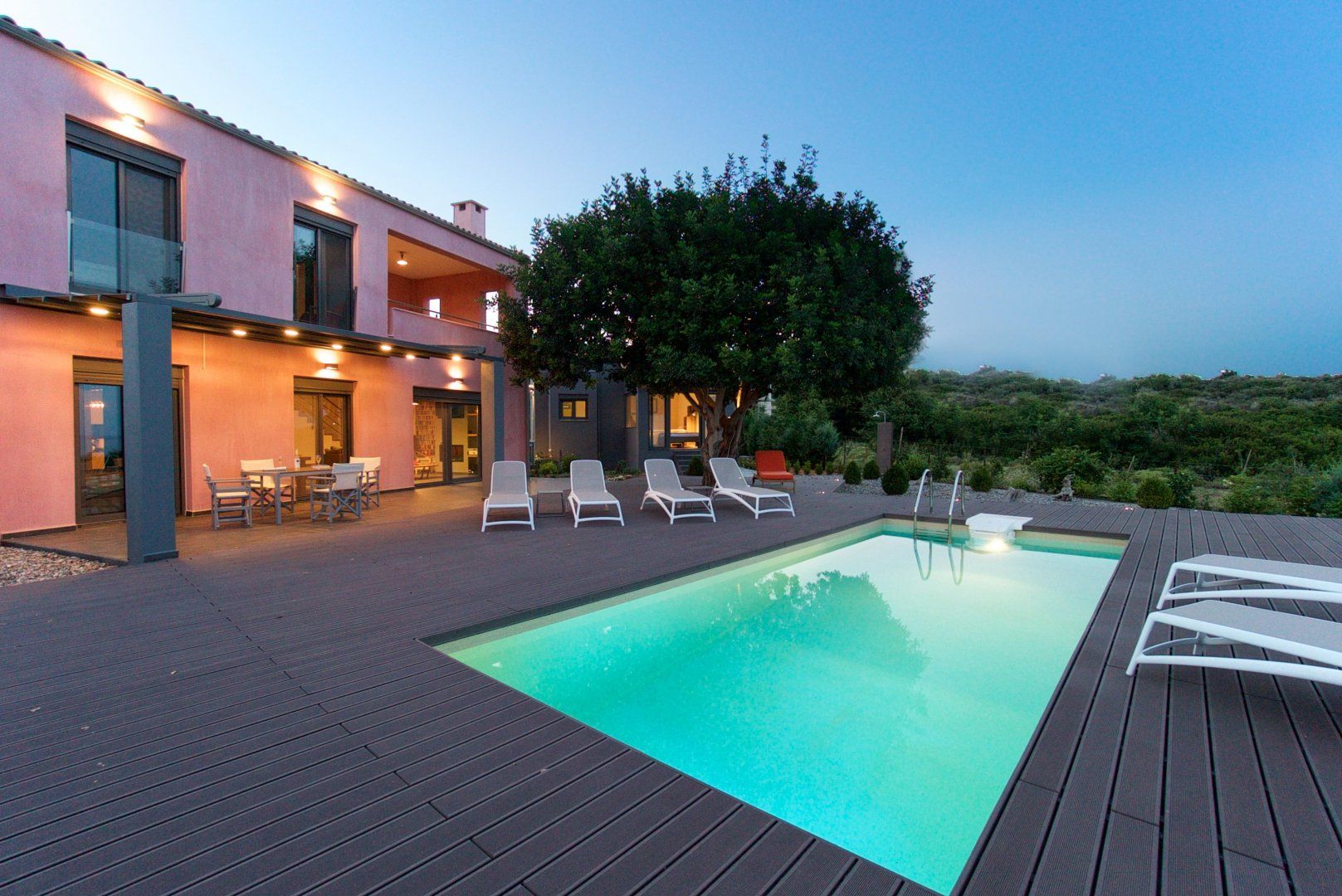 Perched on the breathtaking South East coast of Kefalonia, with views of Zakynthos in the distance, lies an outstanding villa with a stunning guest house attached.