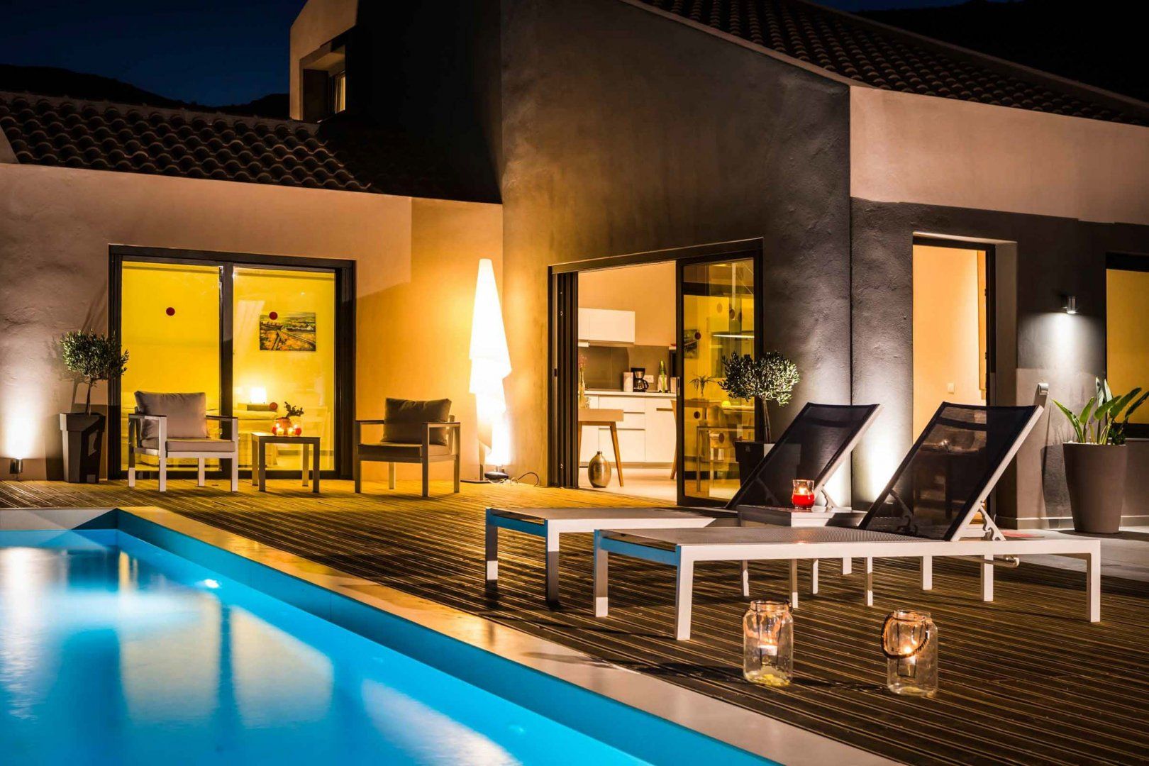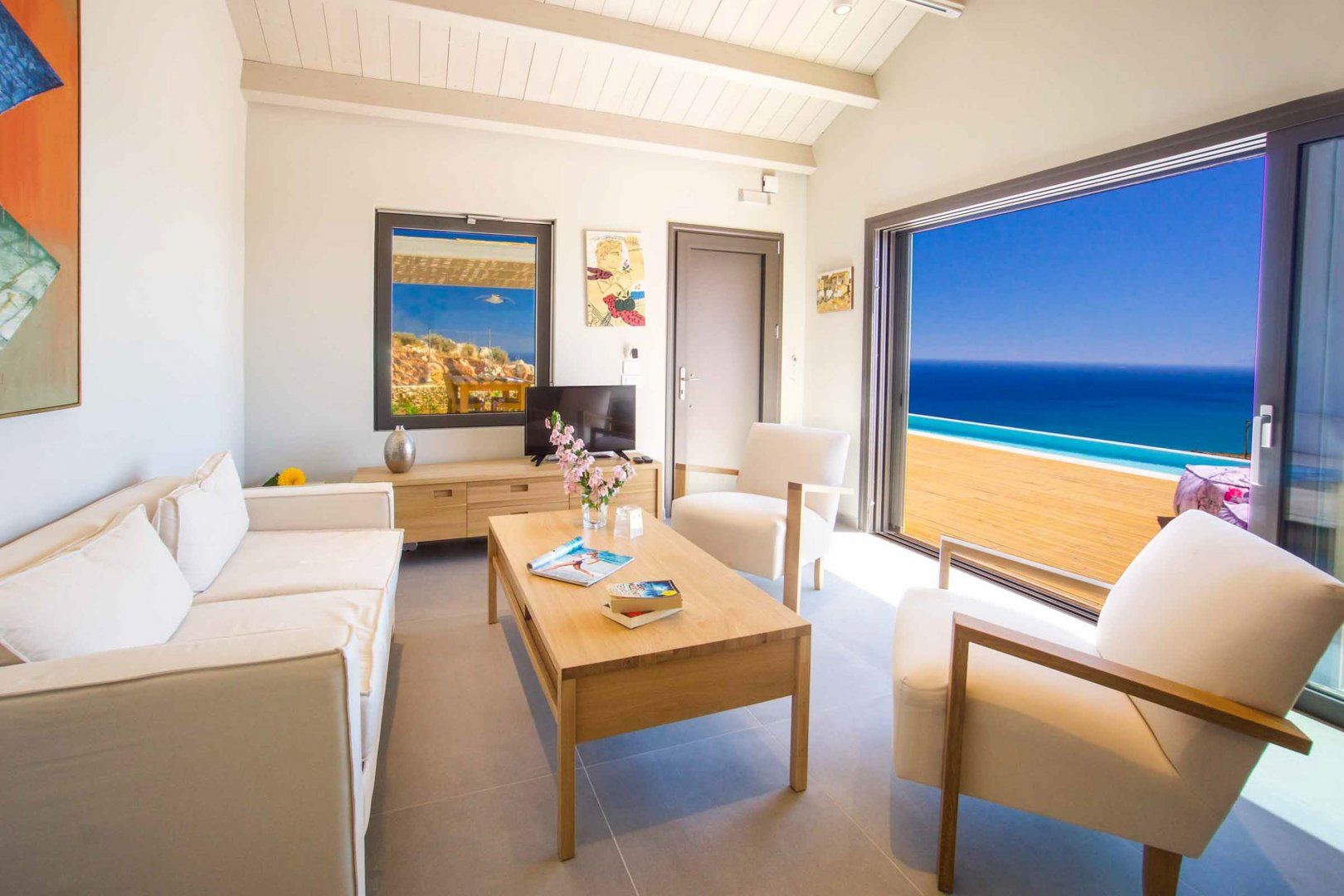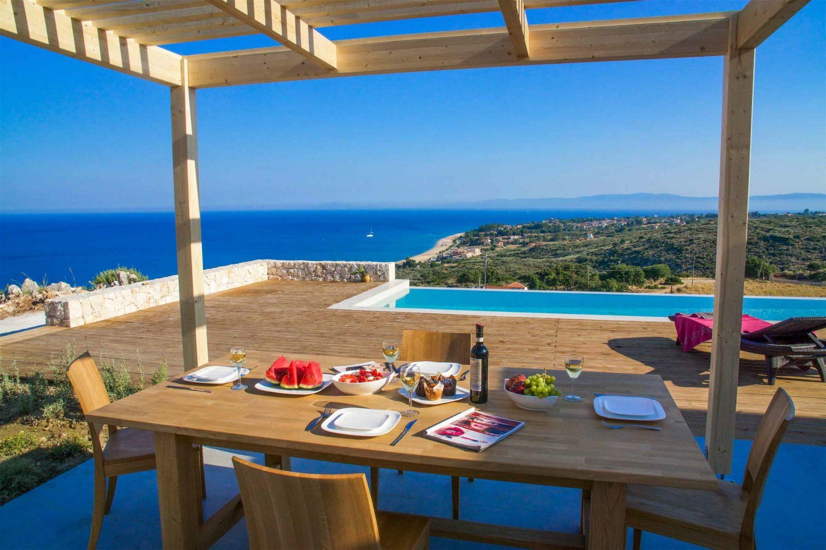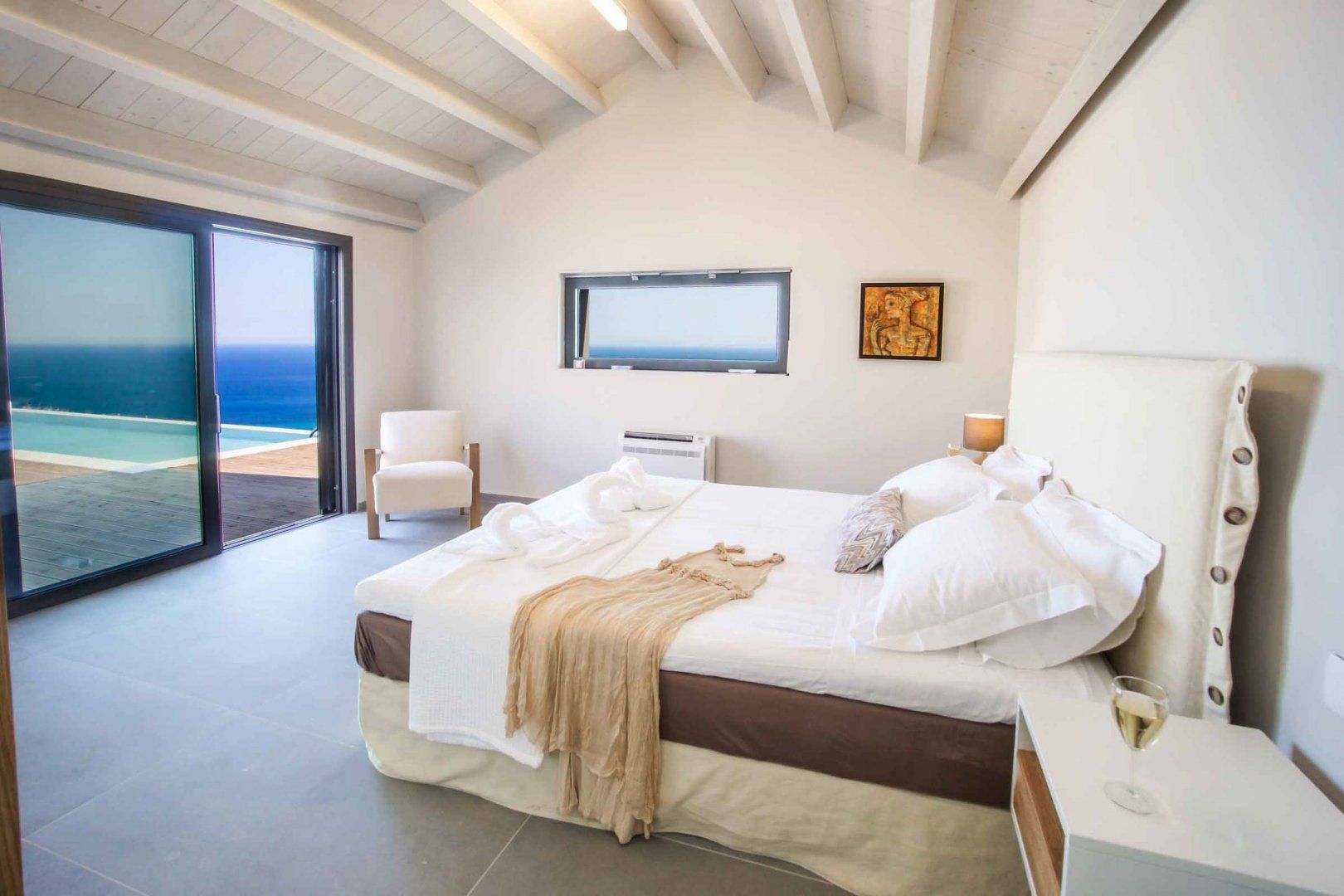 Sitting high above the Ionian Sea, this villa offers incredible vistas from its private patio, equipped with a pool, an alfresco dining spot and plenty of outdoor seating from which to drink in the views. Equally enticing seascapes can be enjoyed from the bedroom and living area. And while the indoors may not have the same wow factor as the outside, thoughtful touches like a freestanding tub, complimentary bathrobes and an upstairs den (that can sleep a child on its daybed) are features we can definitely get on board with. Away from home, Skala is easily reached by car with its choice of restaurants, cafes and shops, as well as its sandy beach.
