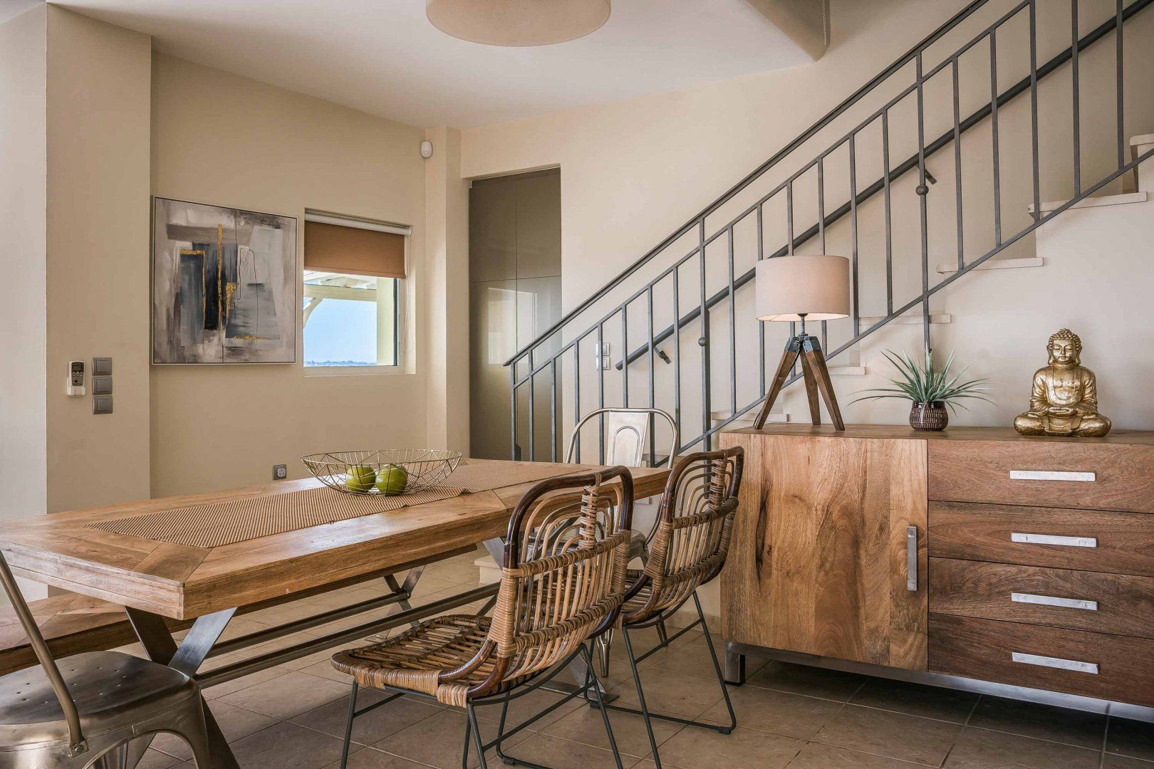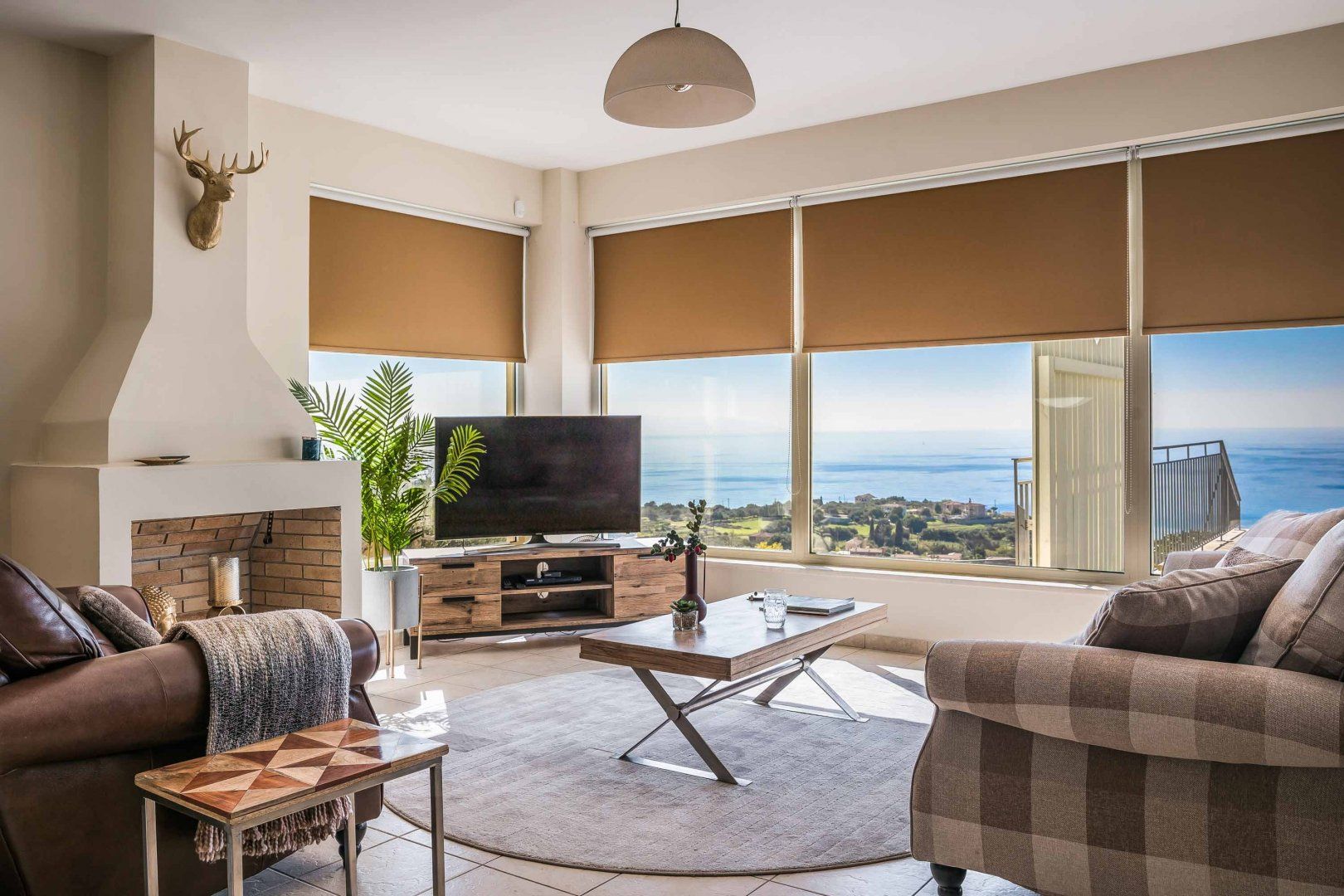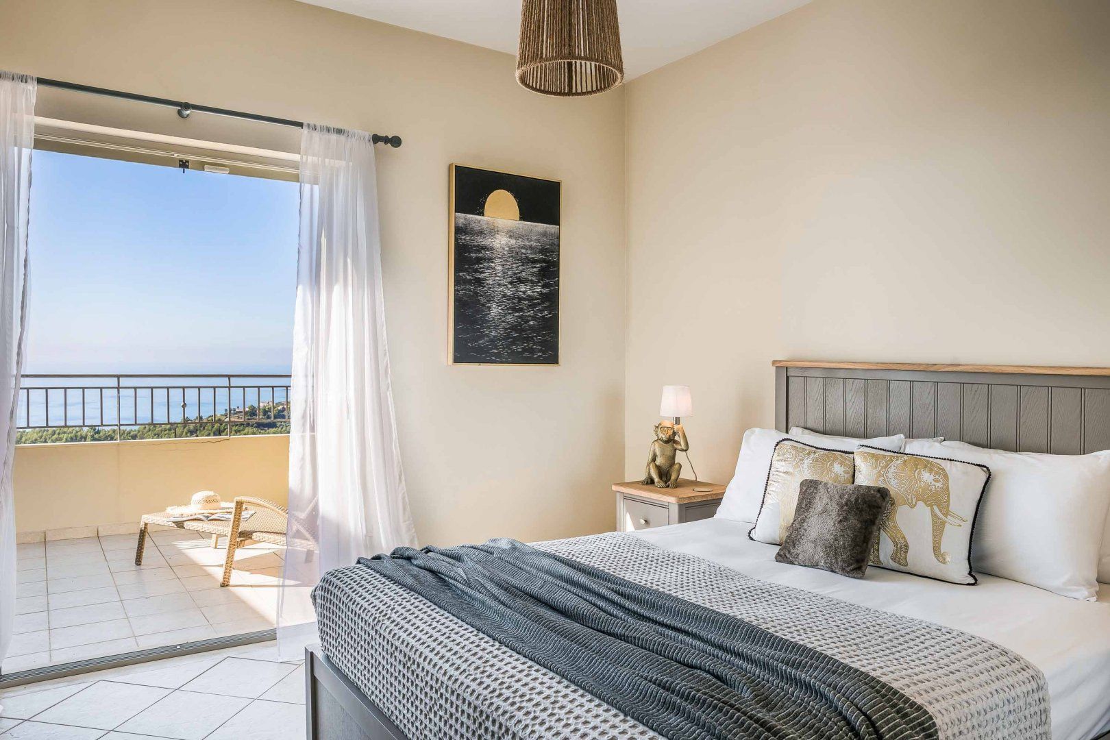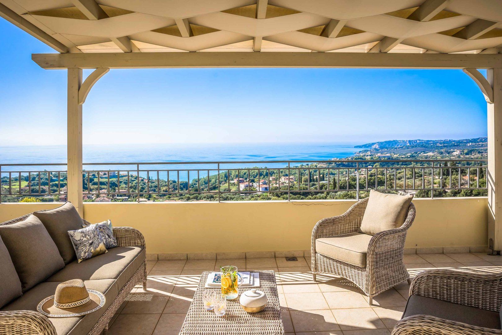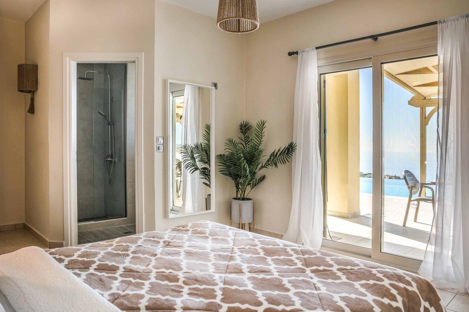 Nestled in the Kefalonian countryside above a small track leading down to Trapezaki beach, this villa has endless panoramas of the sweeping Mediterranean coastline. Set in a great location, you'll reach Trapezaki in just a short walk and its host of shops and restaurants serving up delicious local delicacies. Or why not grill up a feast back at the villa with the wonderful brick barbecue and wood-fired oven. Inside, you won’t be short of sea views with all ensuite bedrooms leading out to the terrace or upper floor balcony. Looking to work up a sweat before a dip in the infinity pool? Follow a short path to the air gymnasium shared with the villa next door.