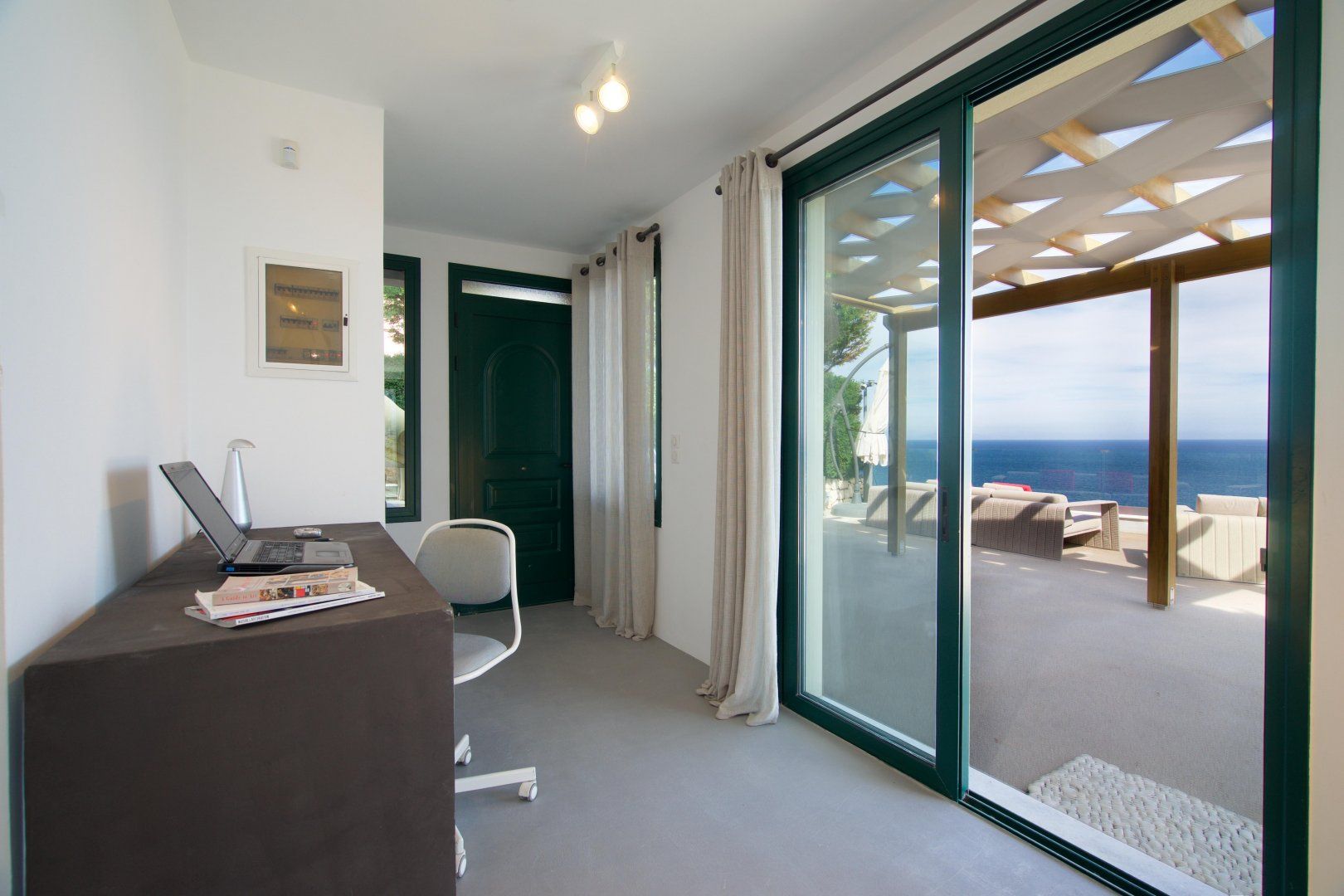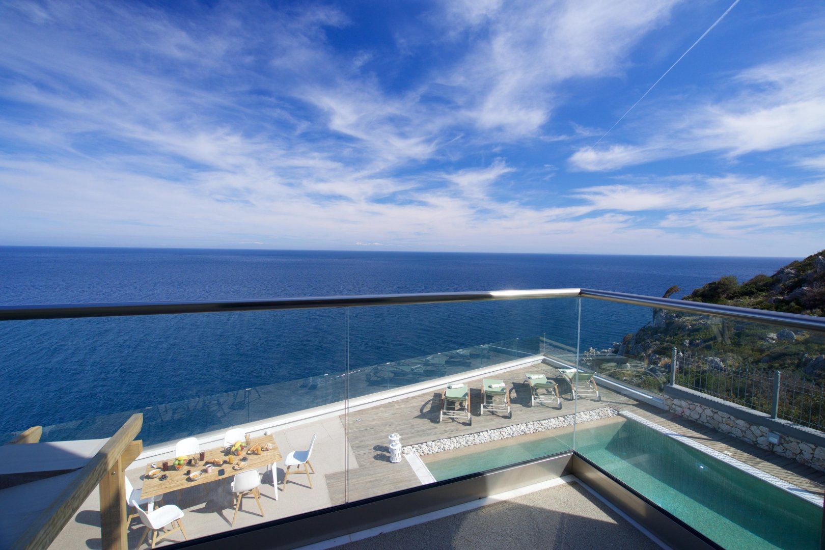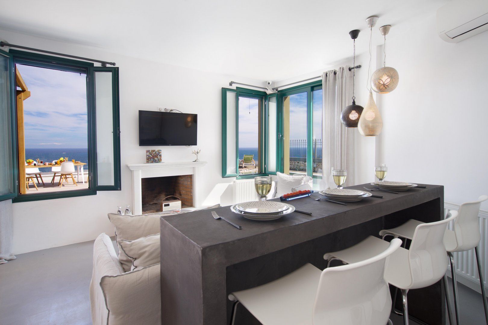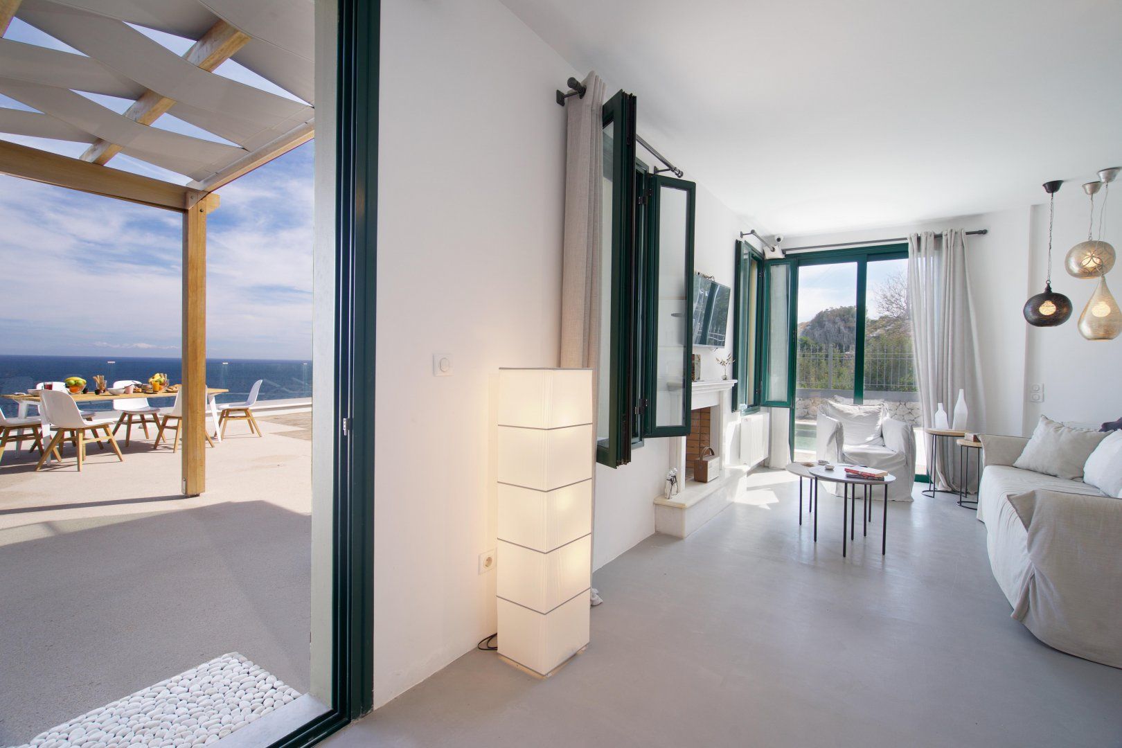 The view from this home in an elevated position just north of Skala is to die for. The glittering sea extends right across your field of vision from the enormous terrace, with a glass safety barrier so absolutely nothing interferes with your view. Out here, which is where we think you'll spend most of your time, you'll be able to relax on the sun loungers, sip drinks on the sofas and eat at the table under the stars. And just when you think this outside space couldn't get any better, there's a beautiful private pool too, with hydrotherapy and swim-against-the-stream settings.