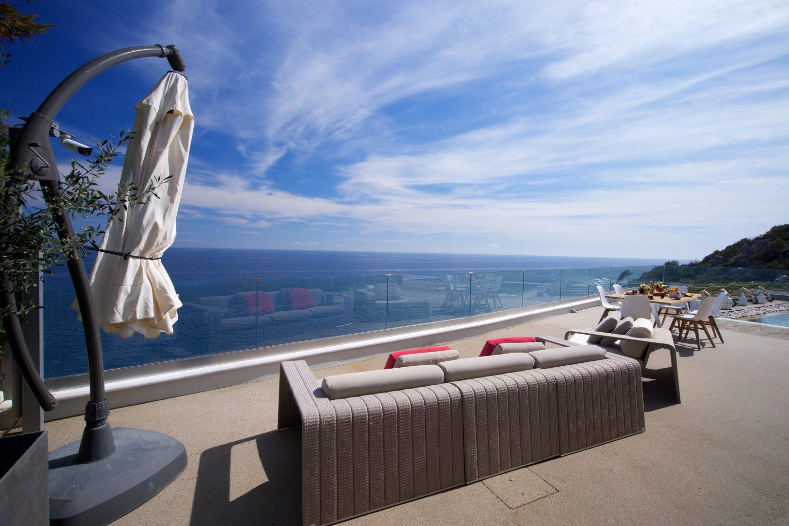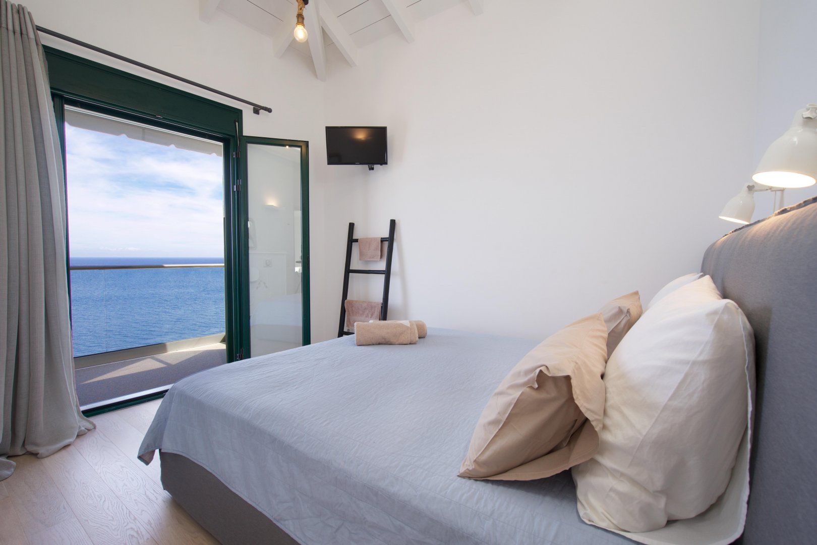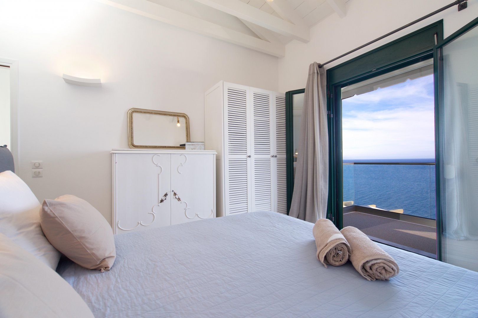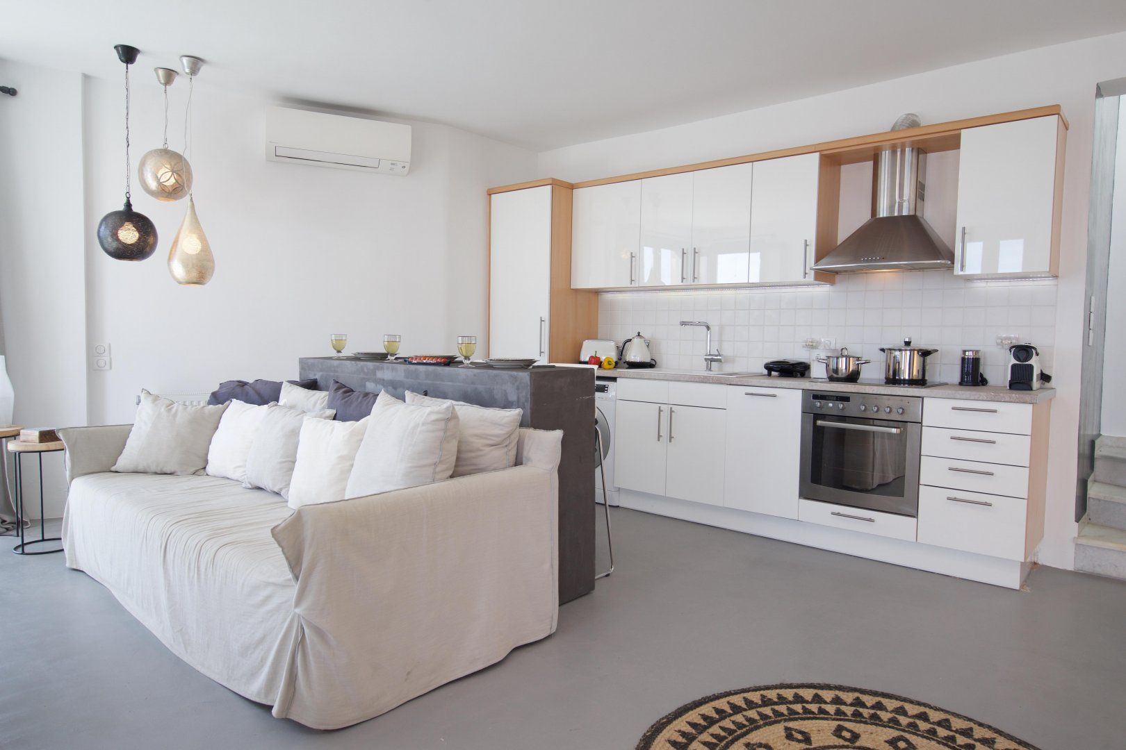 The view from this home in an elevated position just north of Skala is to die for. The glittering sea extends right across your field of vision from the enormous terrace, with a glass safety barrier so absolutely nothing interferes with your view. Out here, which is where we think you'll spend most of your time, you'll be able to relax on the sun loungers, sip drinks on the sofas and eat at the table under the stars. And just when you think this outside space couldn't get any better, there's a beautiful private pool too, with hydrotherapy and swim-against-the-stream settings.