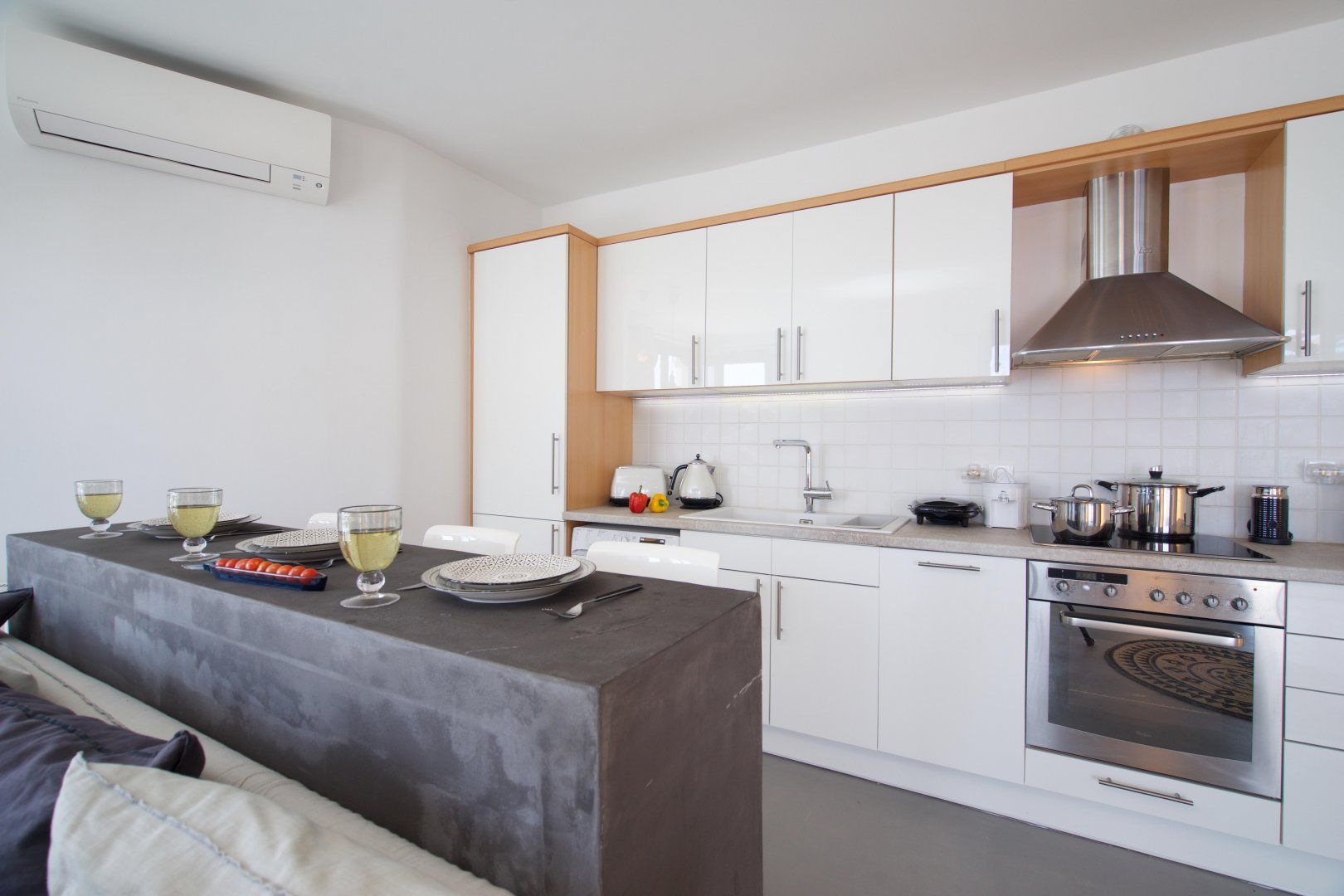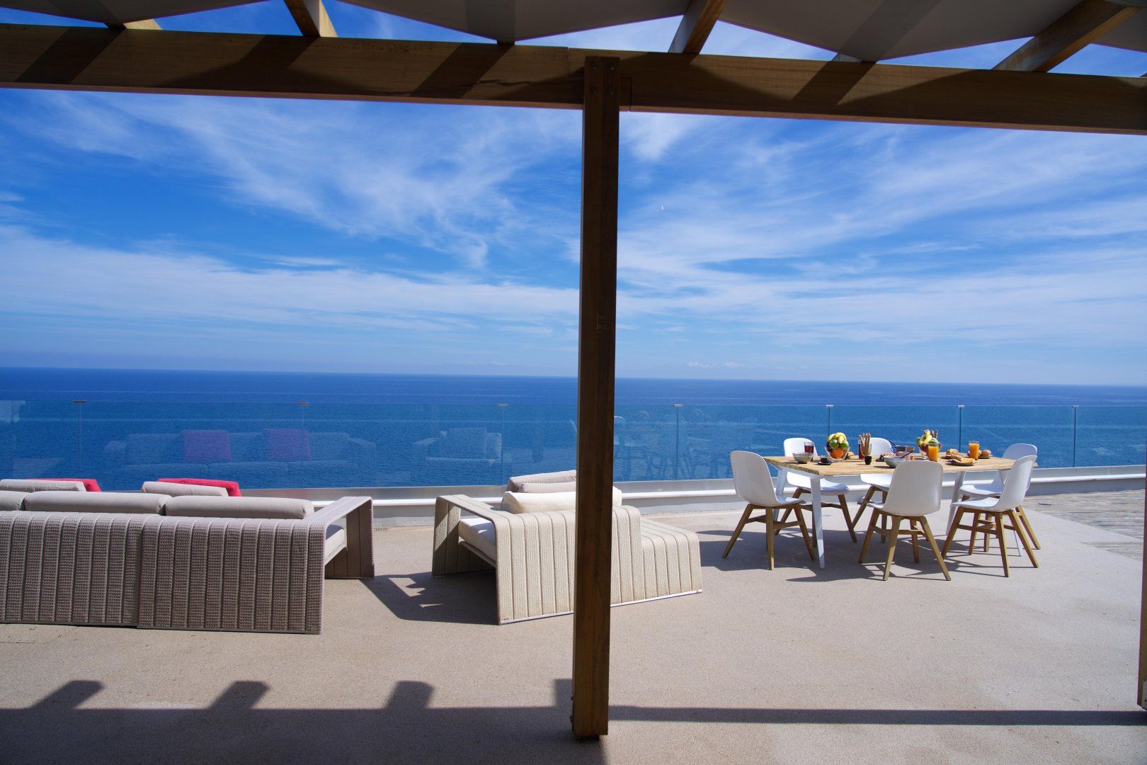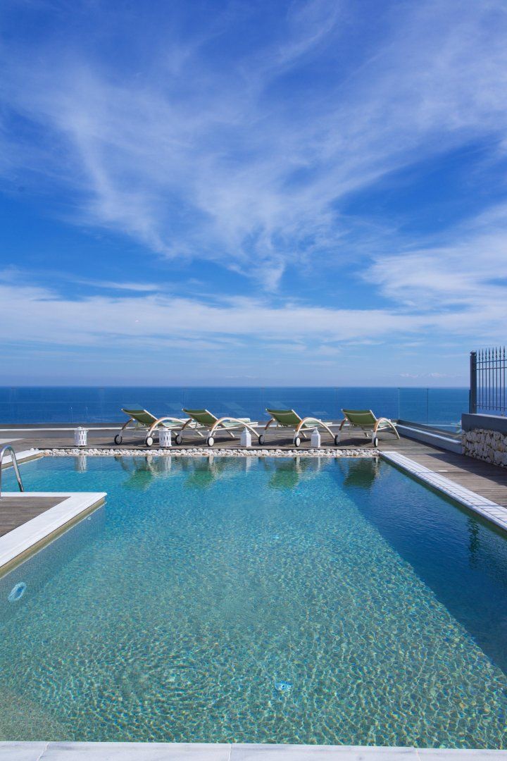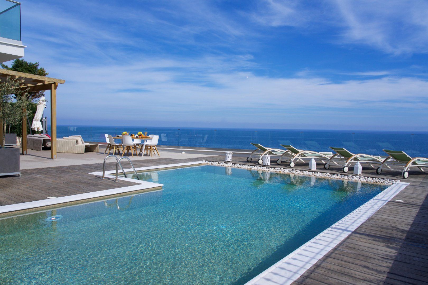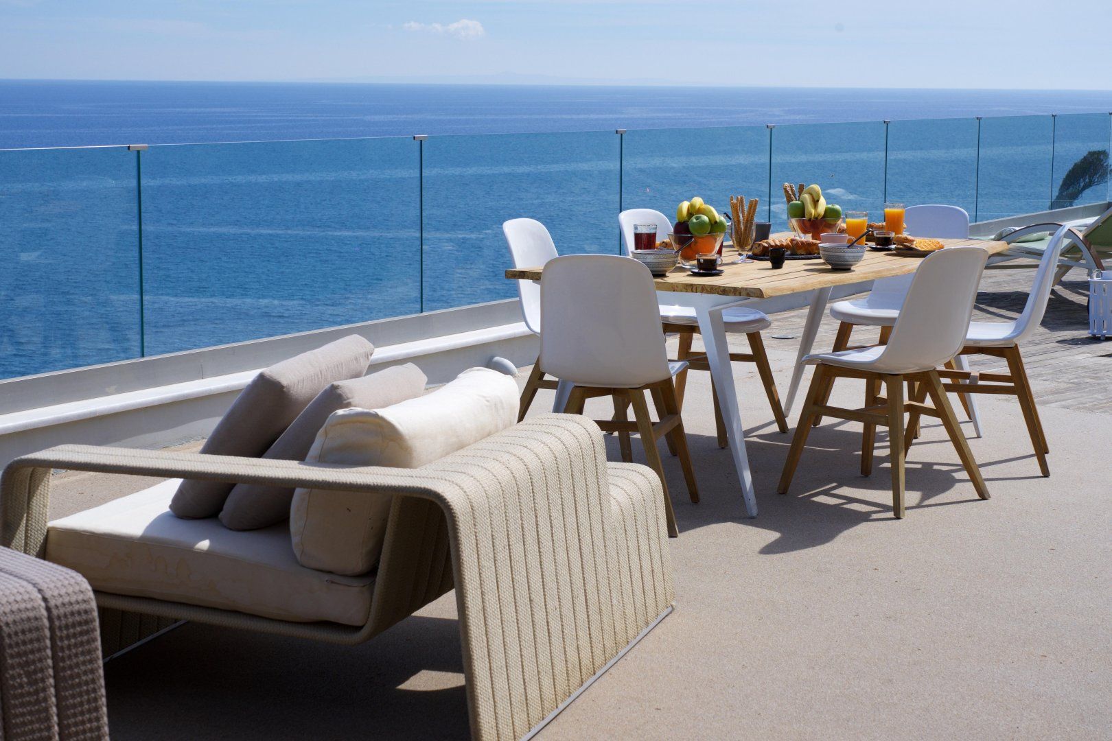 The view from this home in an elevated position just north of Skala is to die for. The glittering sea extends right across your field of vision from the enormous terrace, with a glass safety barrier so absolutely nothing interferes with your view. Out here, which is where we think you'll spend most of your time, you'll be able to relax on the sun loungers, sip drinks on the sofas and eat at the table under the stars. And just when you think this outside space couldn't get any better, there's a beautiful private pool too, with hydrotherapy and swim-against-the-stream settings.
