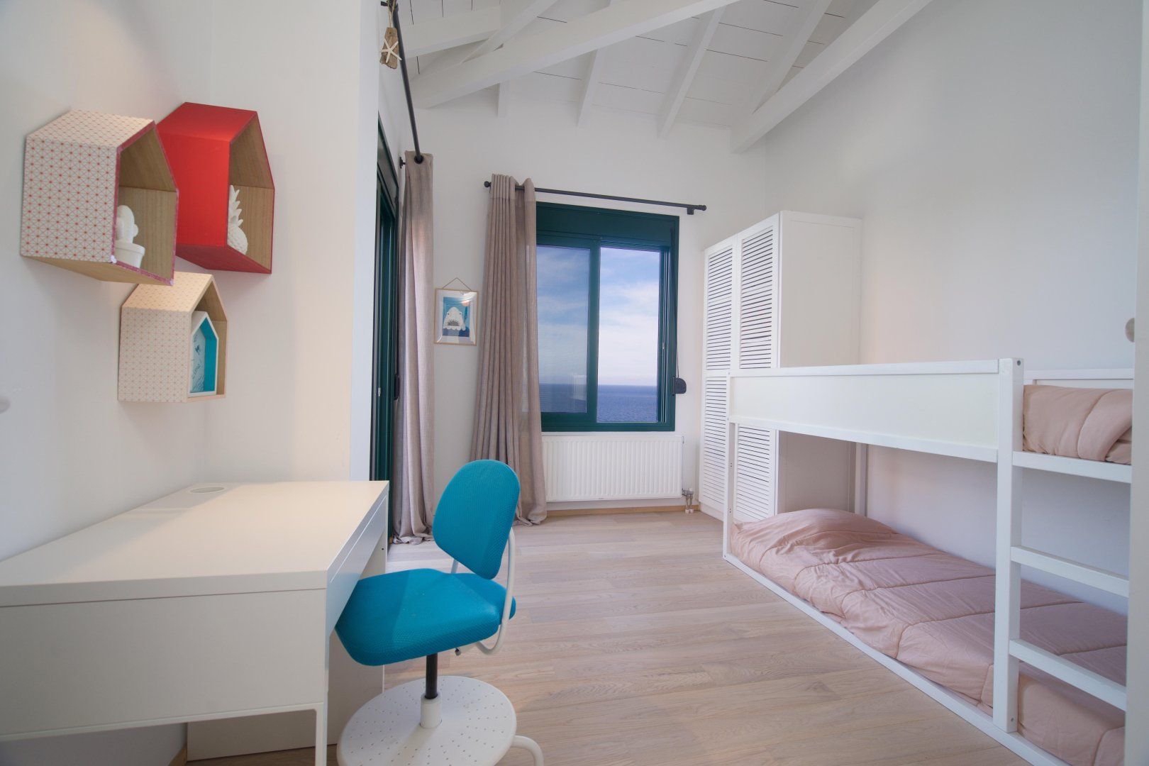Inside, it's a fully modernised villa that has maintained some of its character features – so expect a glossy new kitchen and fabulous new bathrooms, along with a pretty fireplace in the open-plan living space and vaulted ceilings in the bedrooms. There's a stunning private balcony off one of the bedrooms, perfect for getting some sea air first thing in the morning, and we just love the bunk beds in the third bedroom – perfect for kids.