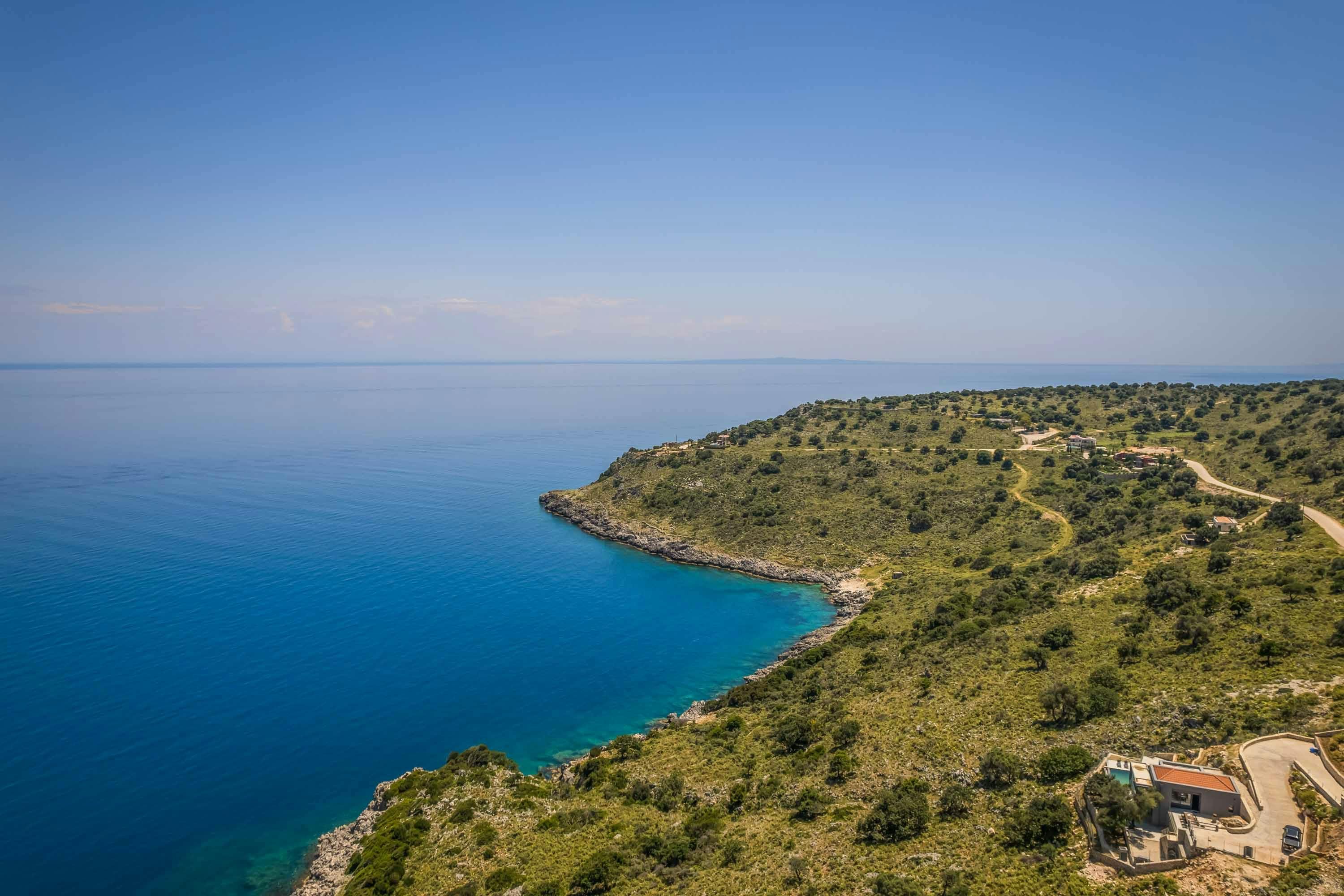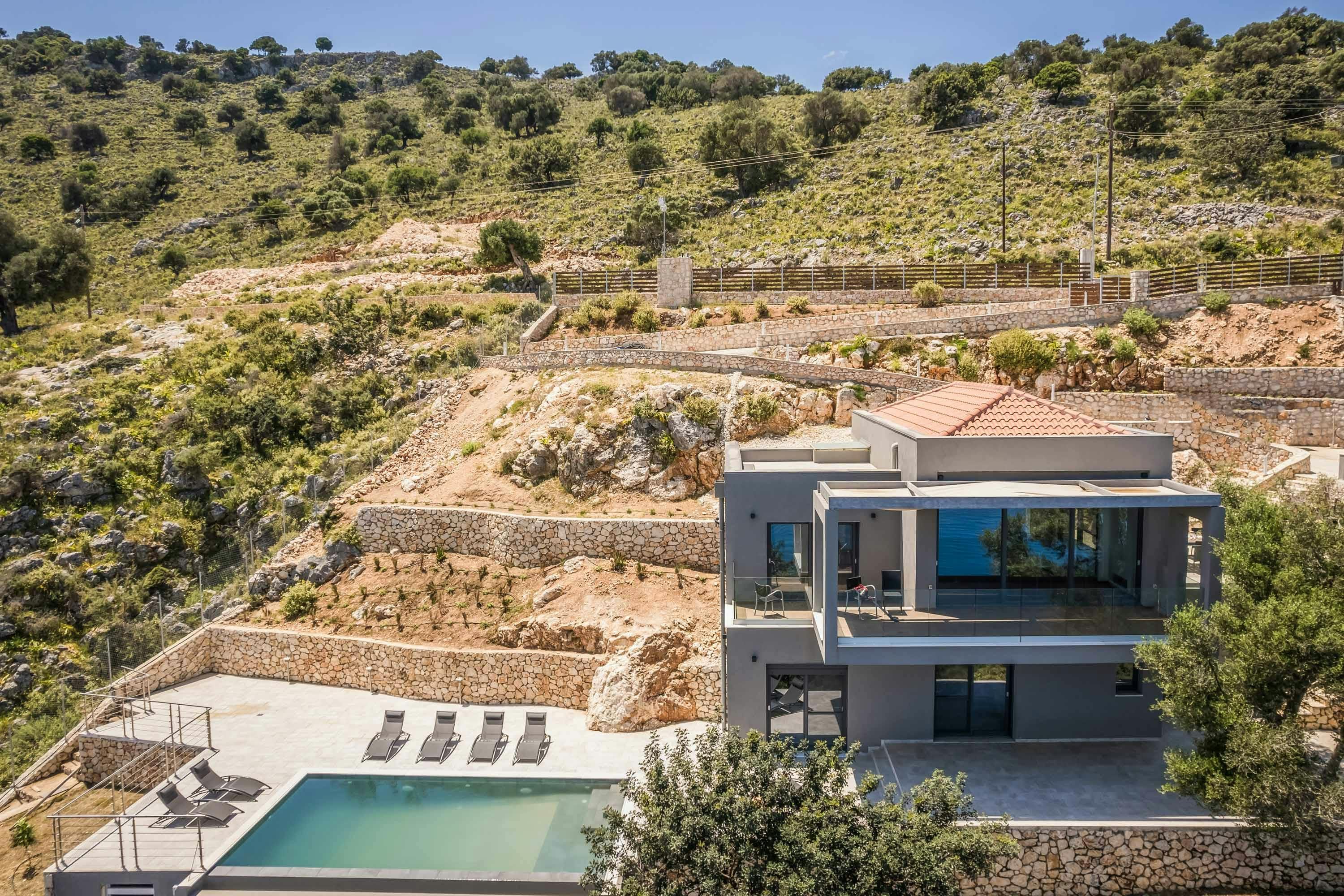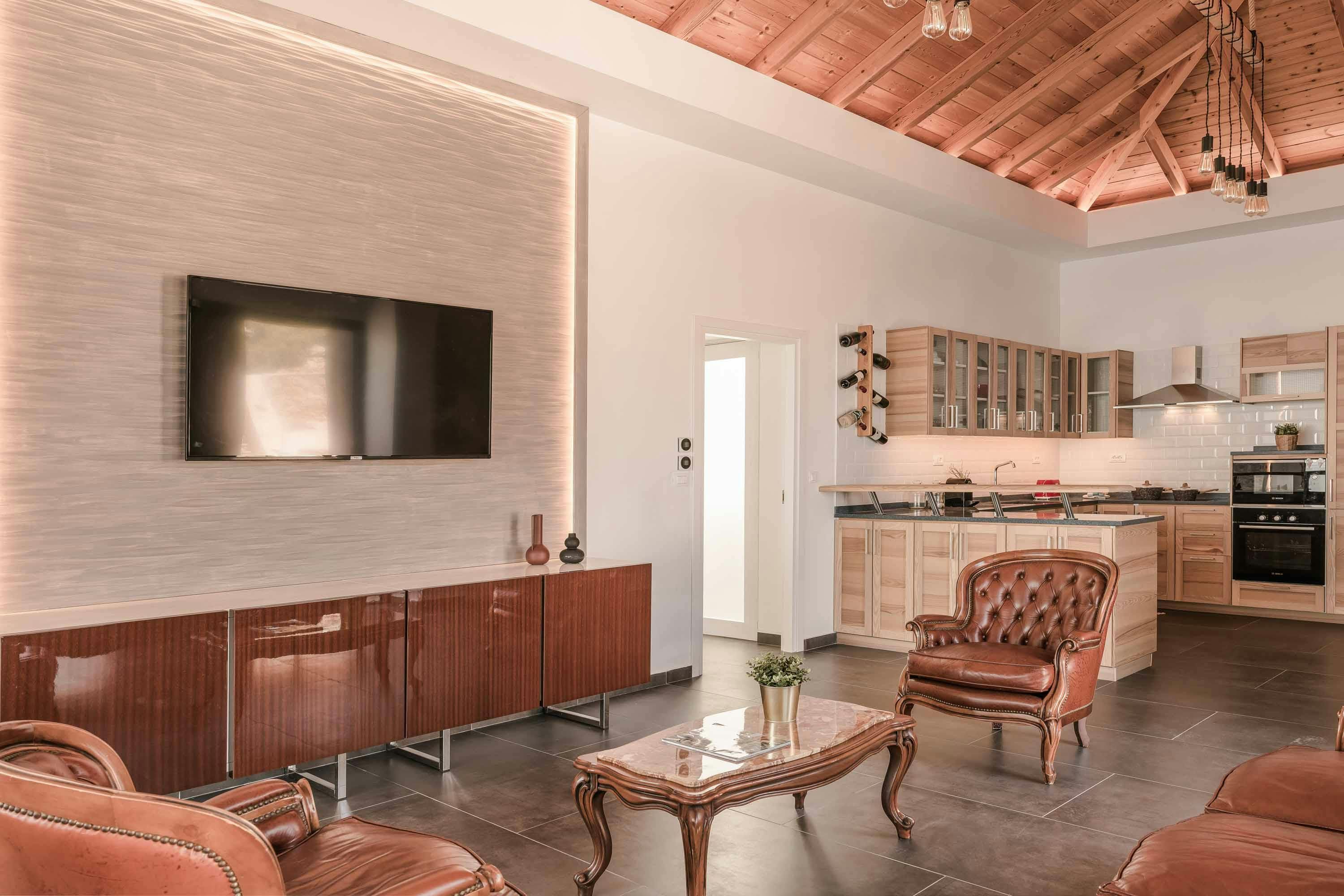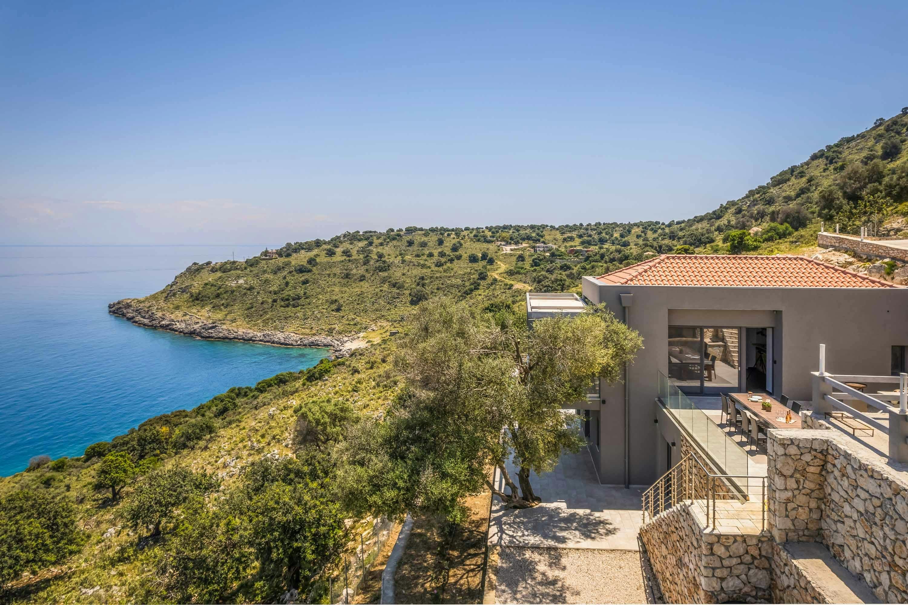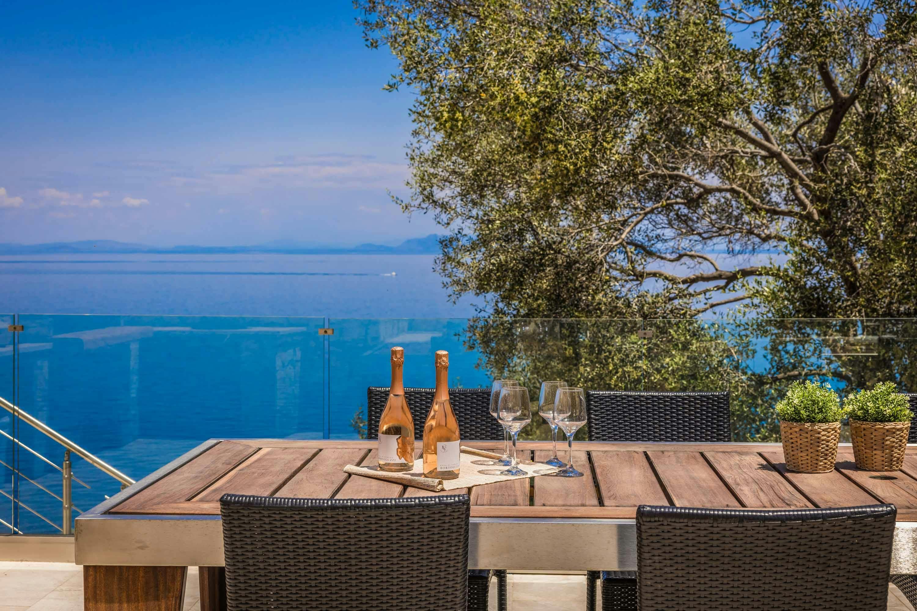 Set into the steep Skala cliffs, this villa has enviable Ionian Sea views from the multi-level terrace area and infinity pool. There’s a large brick-built barbecue for cooking alfresco lunches and dinners as well. Set over two floors, there are vistas from every room, too. And we love that every bedroom has its own terrace or balcony. Location-wise, well, you are just a short drive along the cliff tops from the main resort town of Skala, with its range of restaurants, shops, and one of the sandiest beaches on the island.