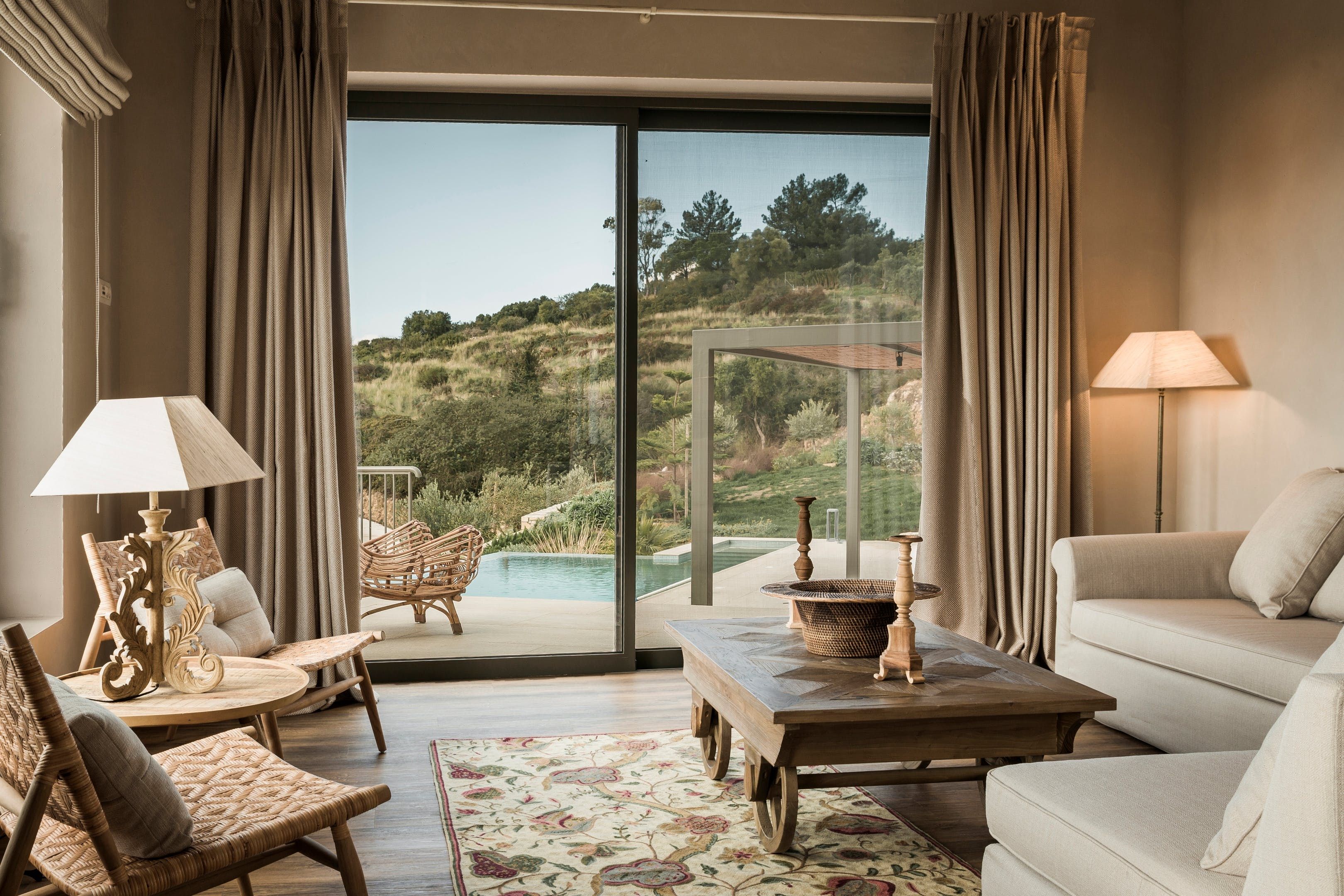 The villa has a traditional stone exterior, with stylish touches like floor-to-ceiling windows. Light streams into the home, adding to the subtly tranquil style of the home. Each bedroom has its own special features, be it a private balcony for you to take your morning coffee on, or a rainfall shower that washes away any lingering stresses.