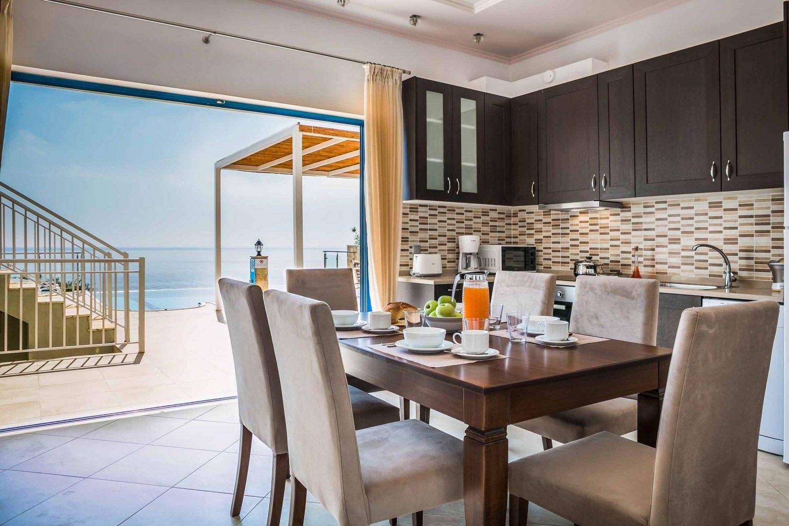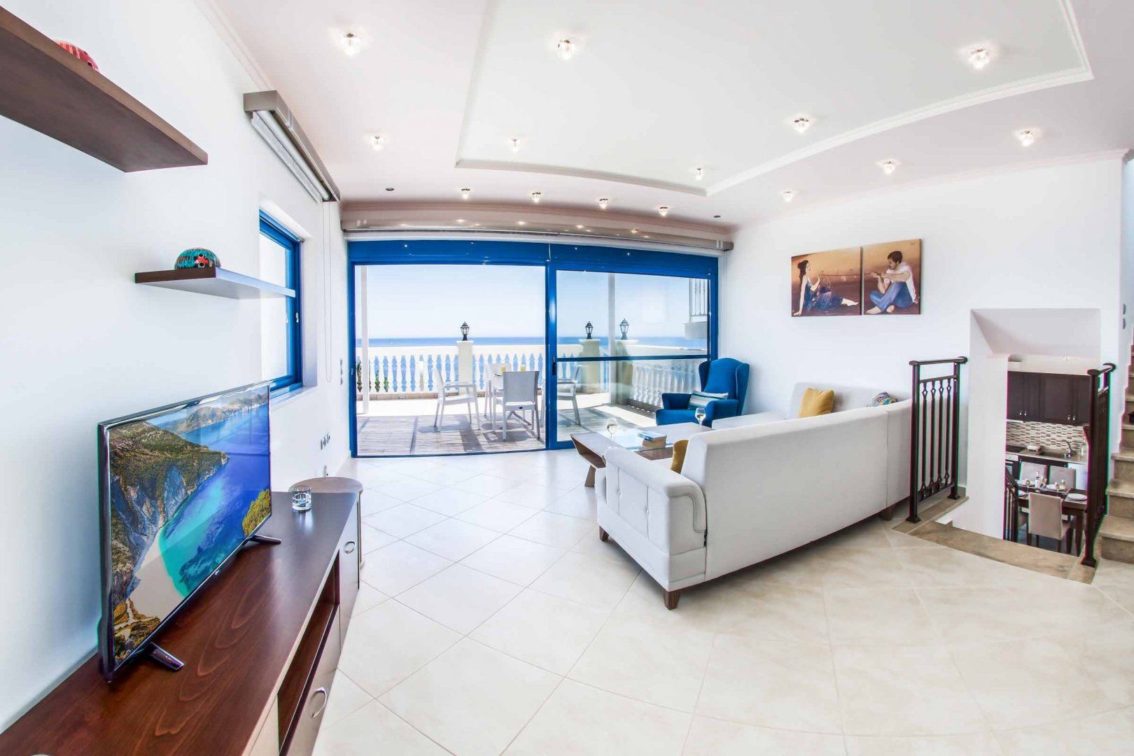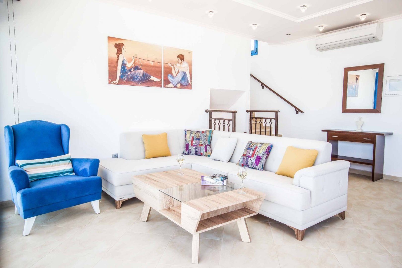 *There are eight steps down to the front door from the parking area, but the owner has provided a ramp with a handrail for those who can’t manage the steps and for easy luggage access. There are also stairs from the lounge entrance down to the kitchen area and the outside terrace. Please request more details if one of your guests has limited mobility.