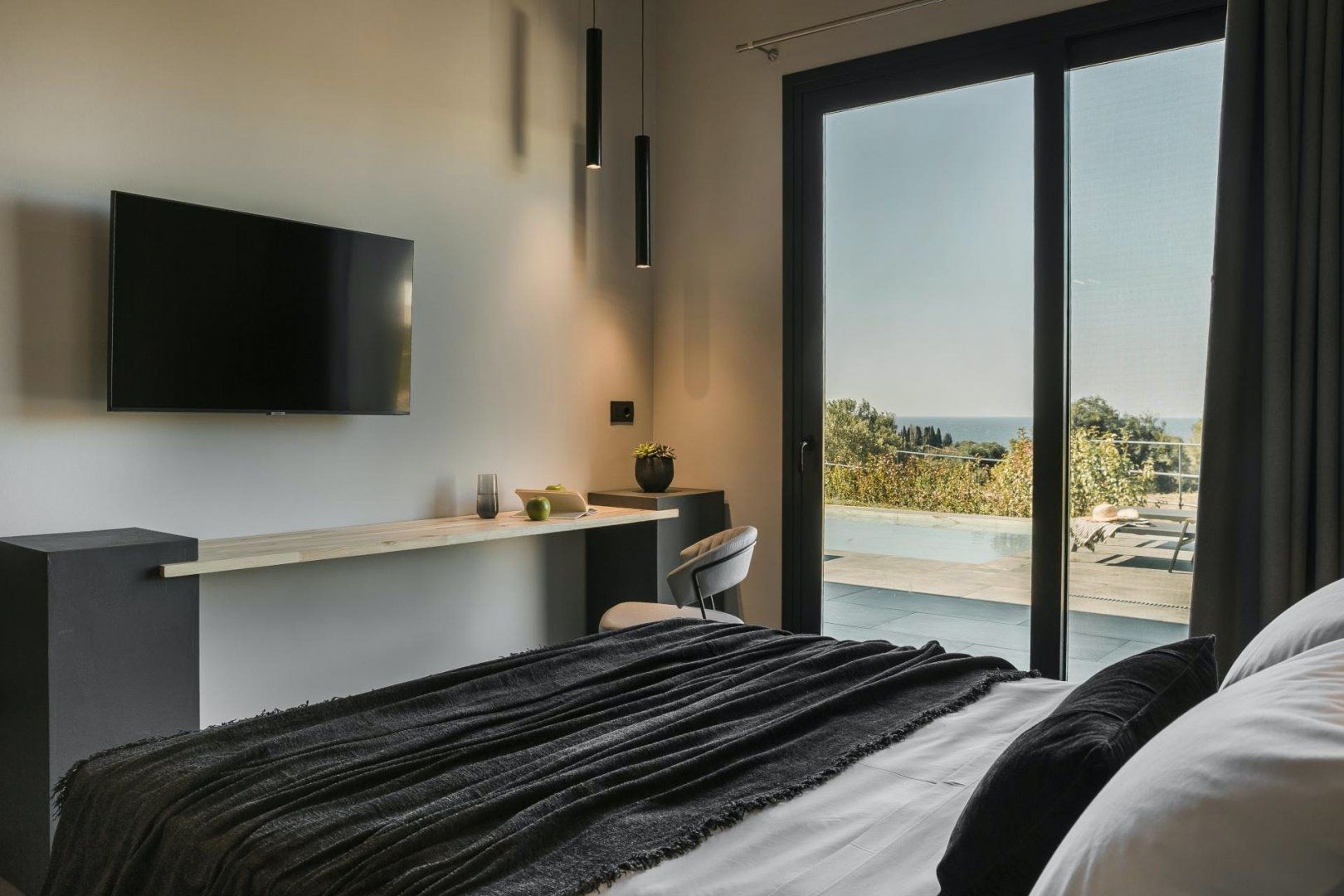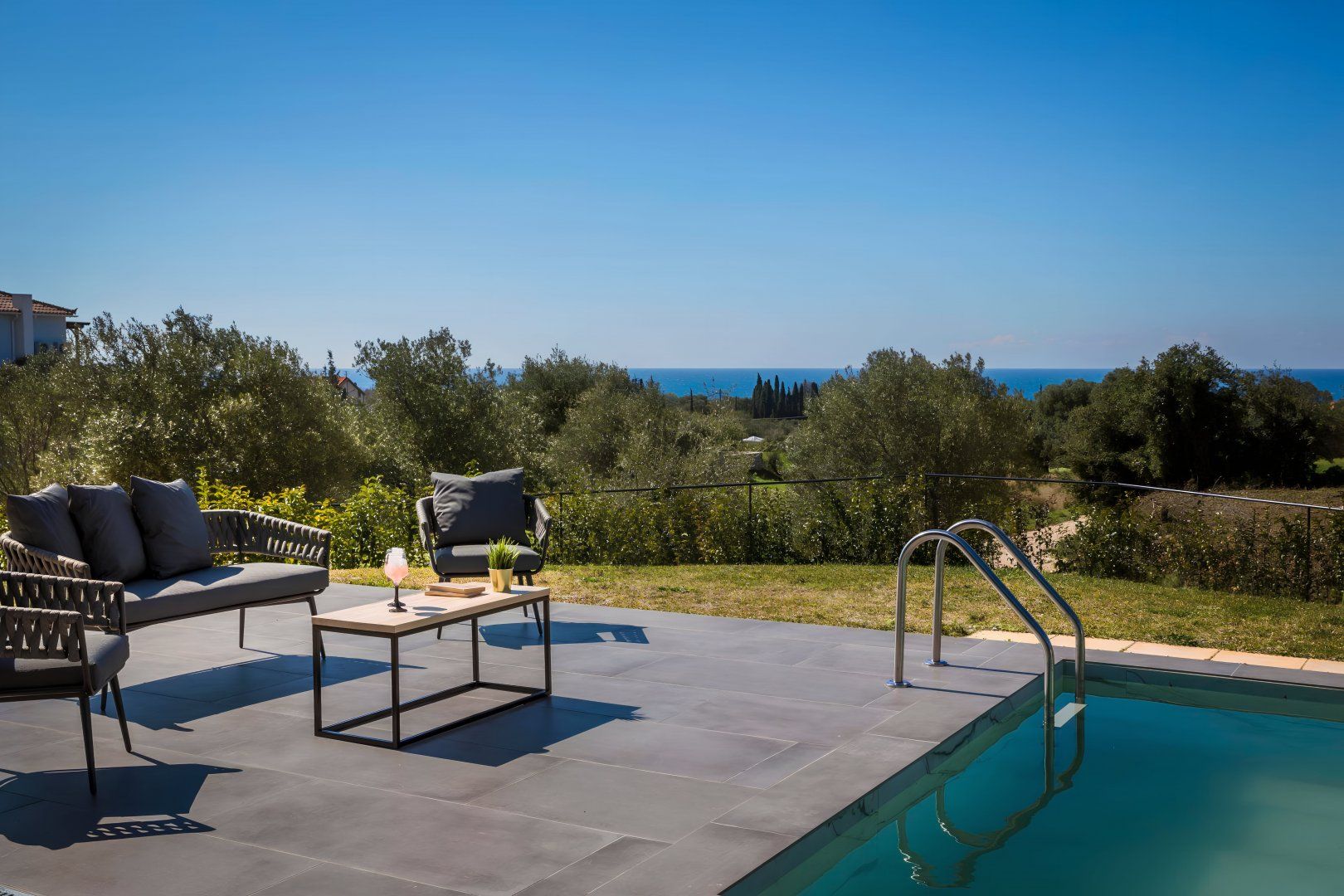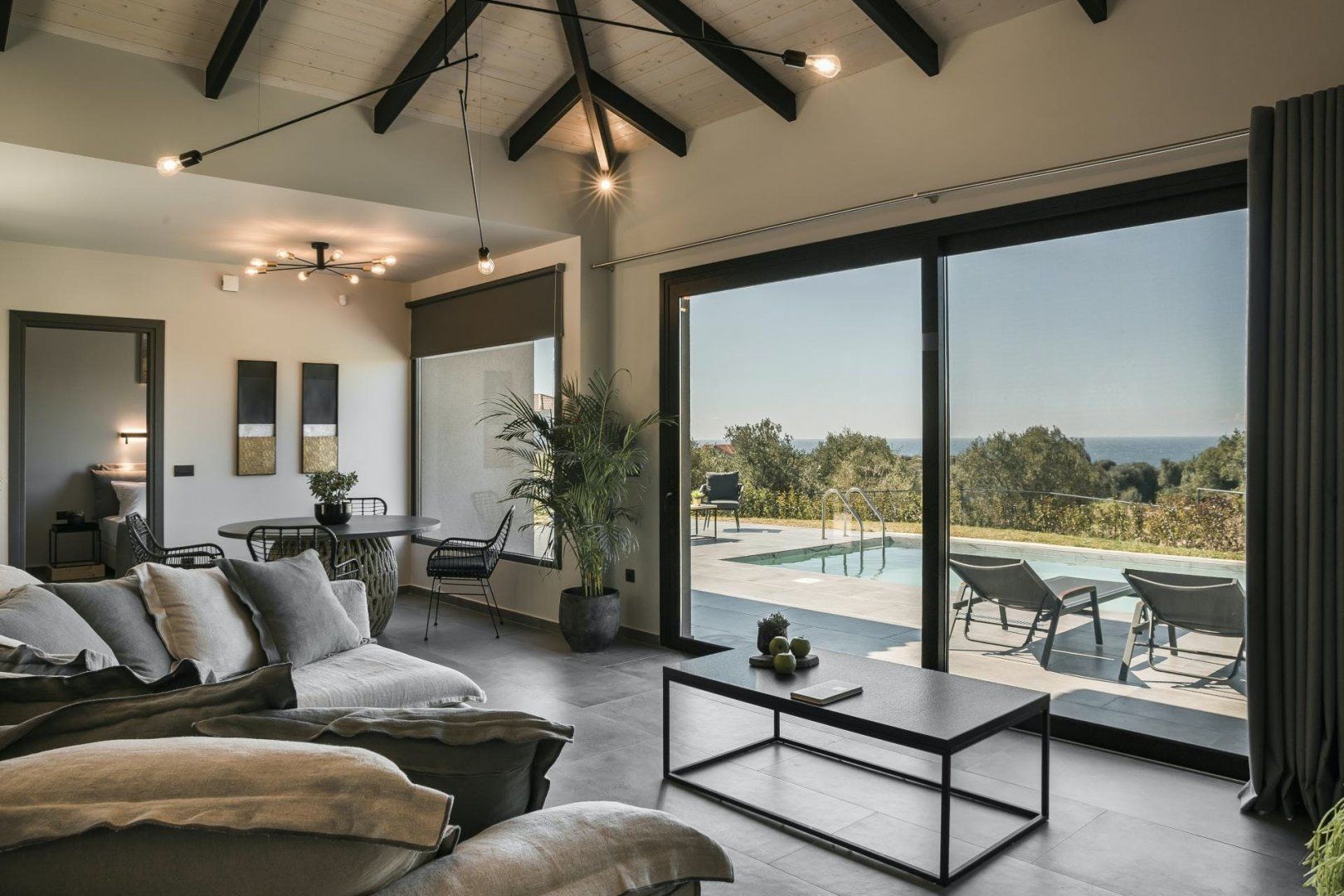This villa might not be beachfront but you still get views of the Ionian Sea through the panoramic windows and from the poolside. Thoughtfully designed with a bedroom either side of the living area for extra privacy, the house would suit a family or small group of friends. You’ll find a number of tavernas in the area as well as a couple of vineyards, where you can sample a glass of Robola – a white wine unique to Kefalonia. And for a slice of history, head to the island’s capital, Argostoli, just a 13km drive away.