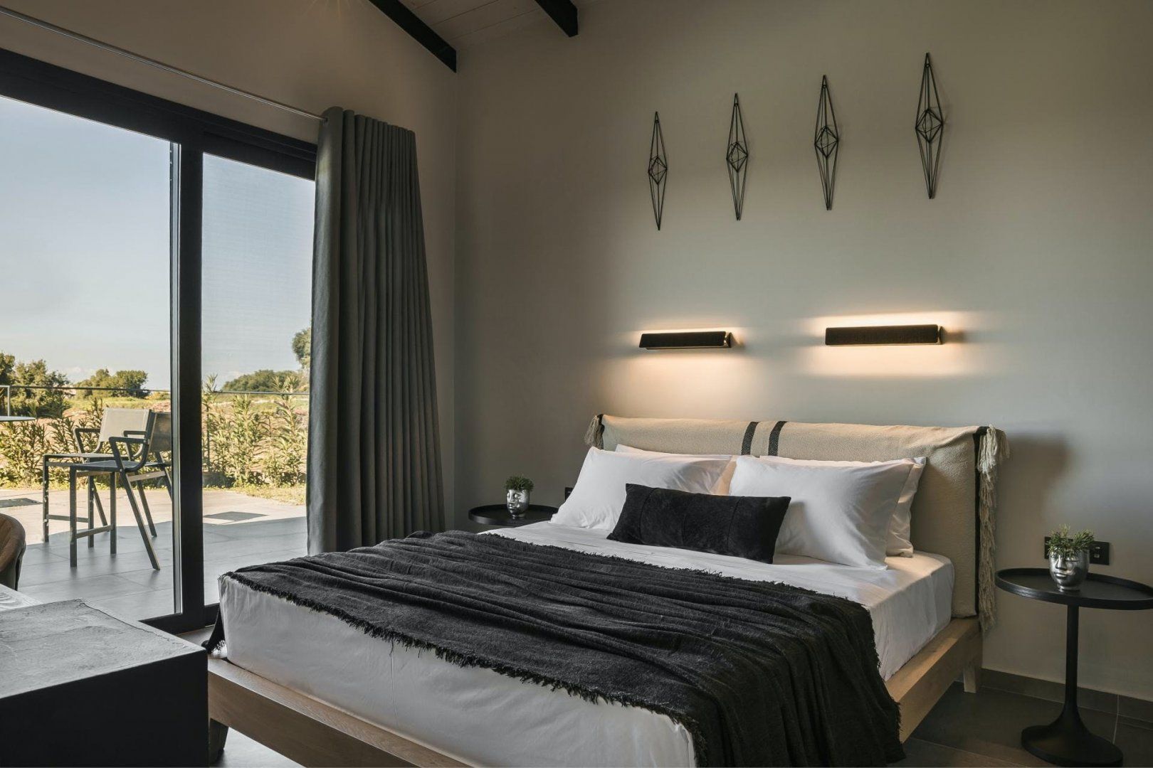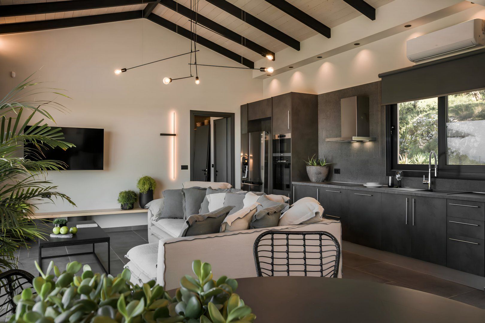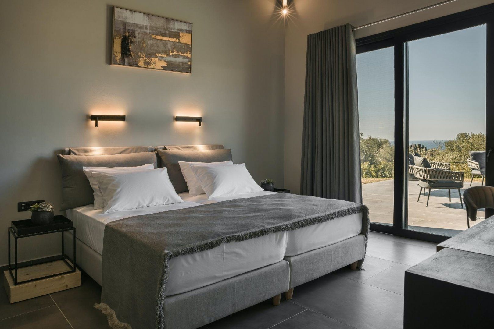 This villa might not be beachfront but you still get views of the Ionian Sea through the panoramic windows and from the poolside. Thoughtfully designed with a bedroom either side of the living area for extra privacy, the house would suit a family or small group of friends. You’ll find a number of tavernas in the area as well as a couple of vineyards, where you can sample a glass of Robola – a white wine unique to Kefalonia. And for a slice of history, head to the island’s capital, Argostoli, just a 13km drive away.