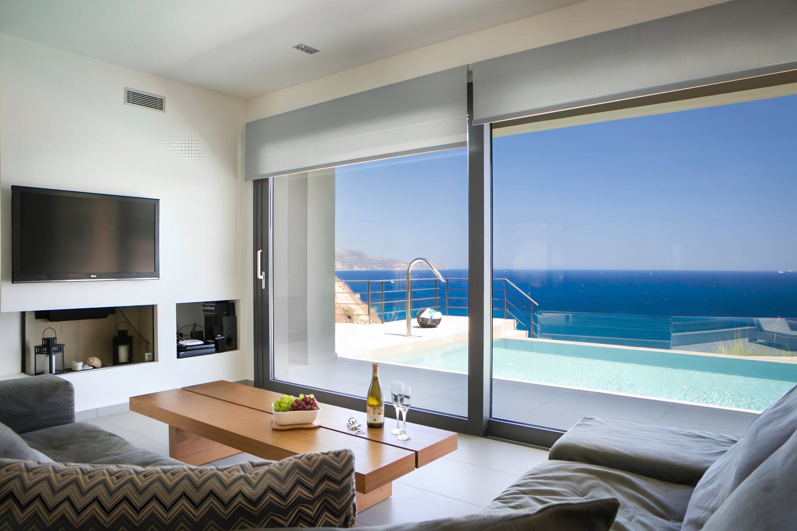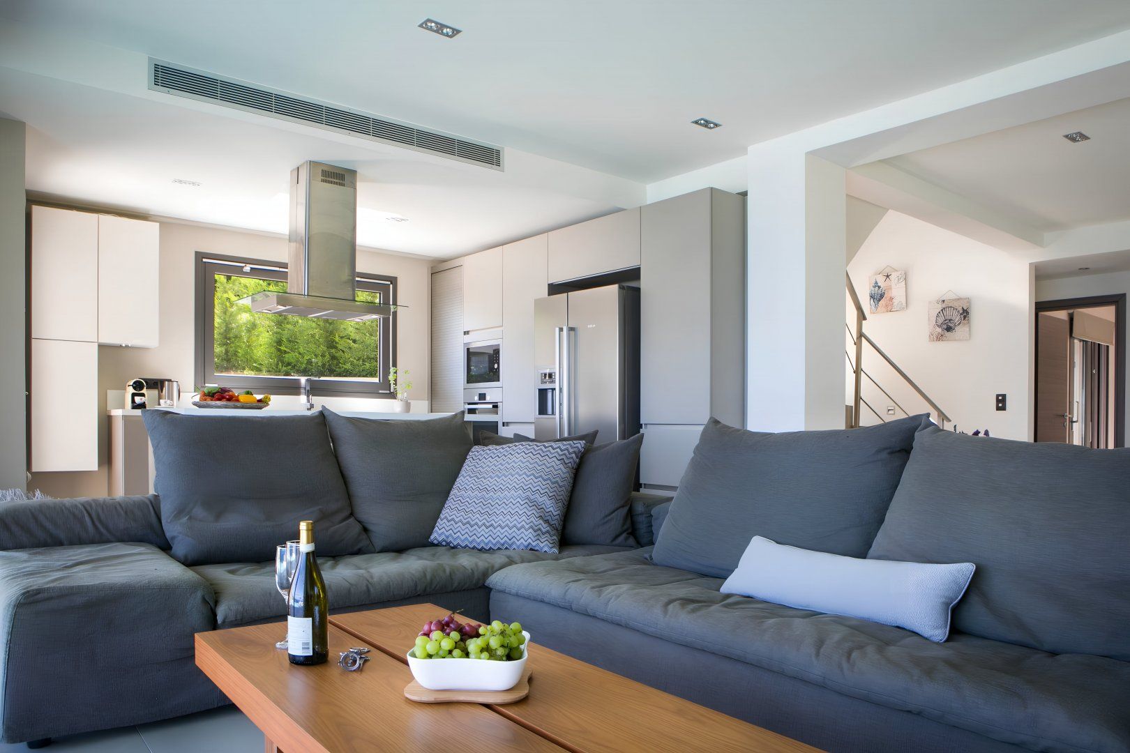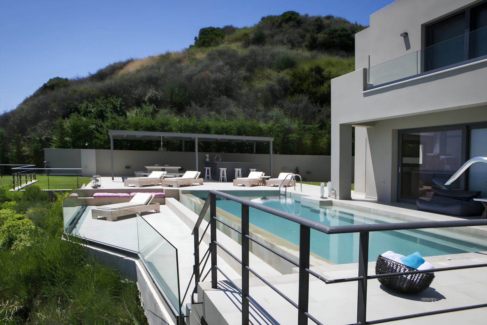 You could never tire of the panoramic views of the Ionian Sea from this villa fringing the laid-back village of Spartia. The contemporary interiors will appeal to all you minimalists, and the private sauna, steam room and gym are a bonus. There's also a playroom and table tennis to keep kids busy. While the infinity-edged pool is impressive, it's worth noting there is open-barred poolside fencing surrounding it, so you'll need to keep a watchful eye on little ones. Location-wise, you're just a few minutes' drive from Spartia's sandy cove beach (2.2km), minimarket, bakery and local tavernas. Or, for a change of scene, the golden sands of Avithos and Agios Thomas are just a fifteen-minute drive.