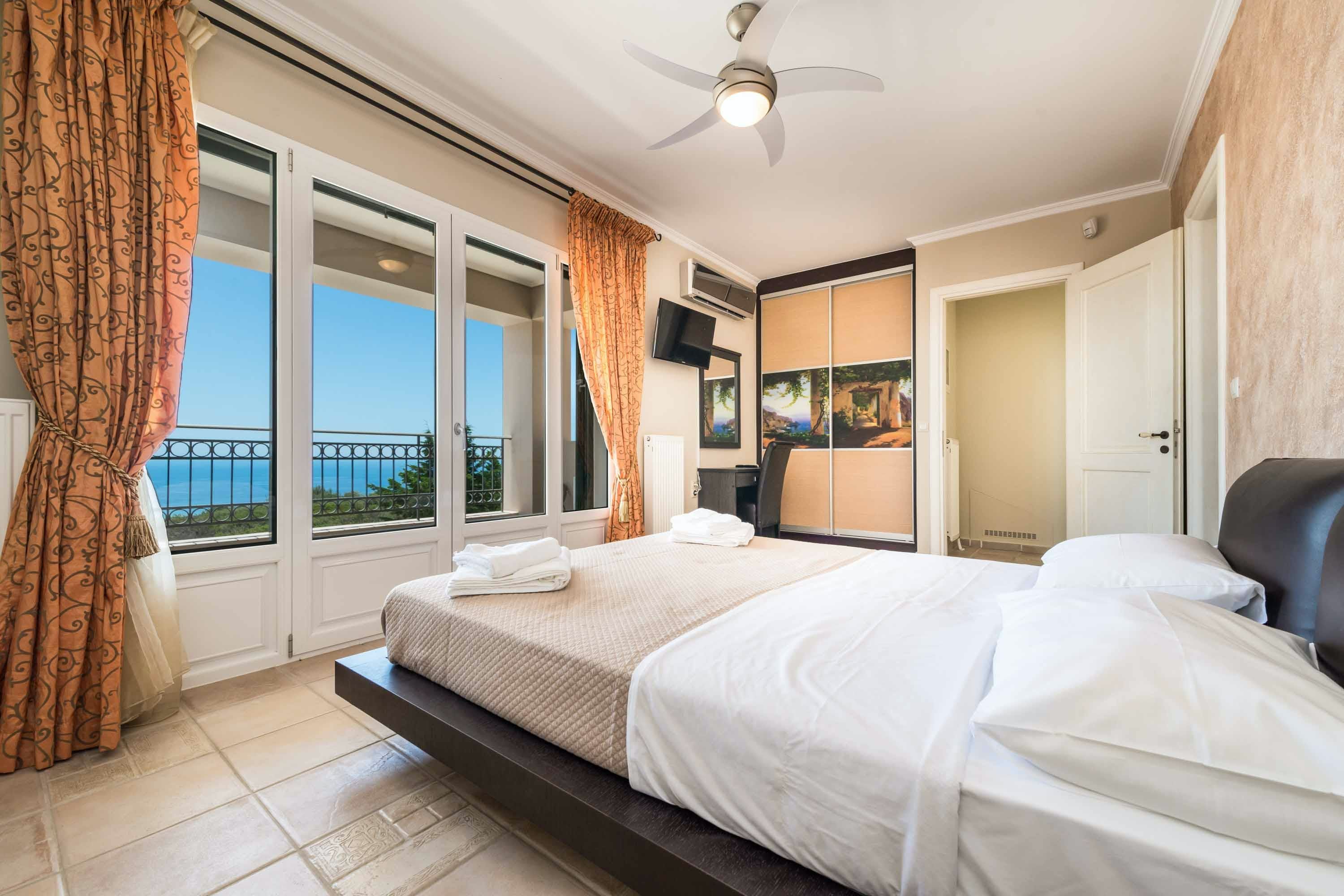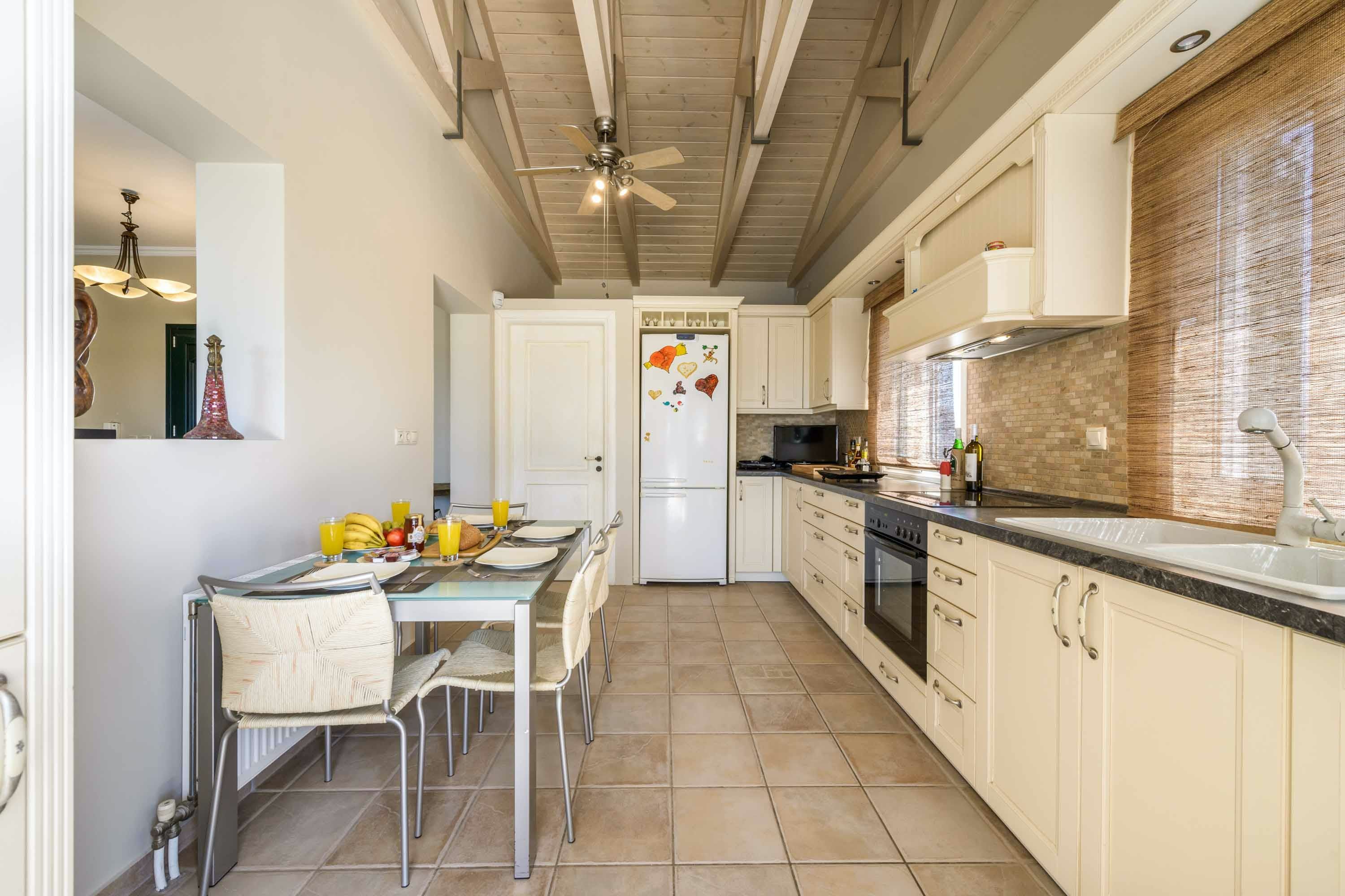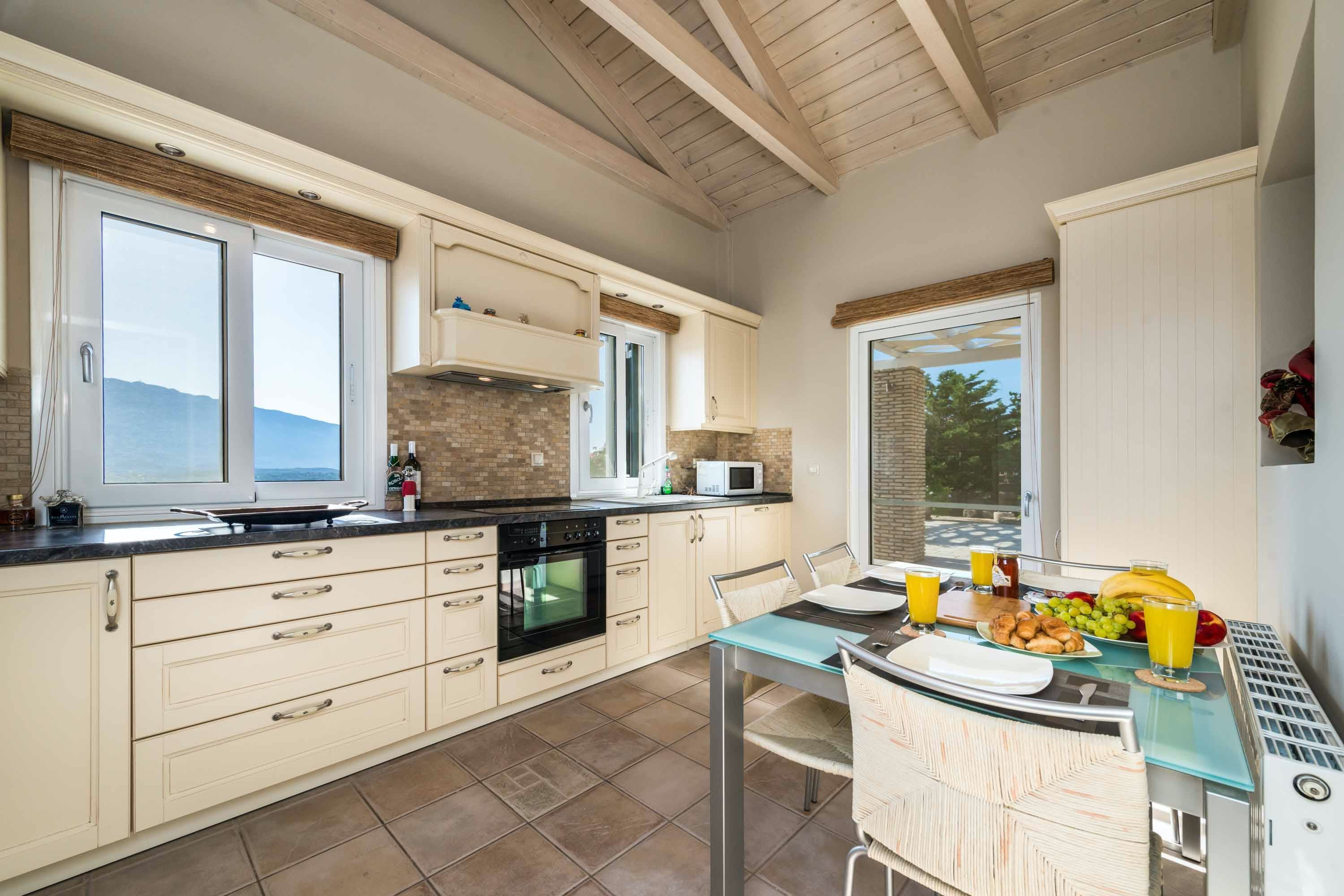 Situated above verdant olive groves, this home has wonderful views over the Ionian Sea. You can soak up the sun on the large terrace next to the private pool or cook an alfresco lunch on the built-in barbecue. Inside, there’s plenty of room to relax, and the place has everything you need for a comfortable stay. When you want to explore, Helis and Avithos beaches are just a short drive away. And you’ll be a short stroll away from restaurants and shops.