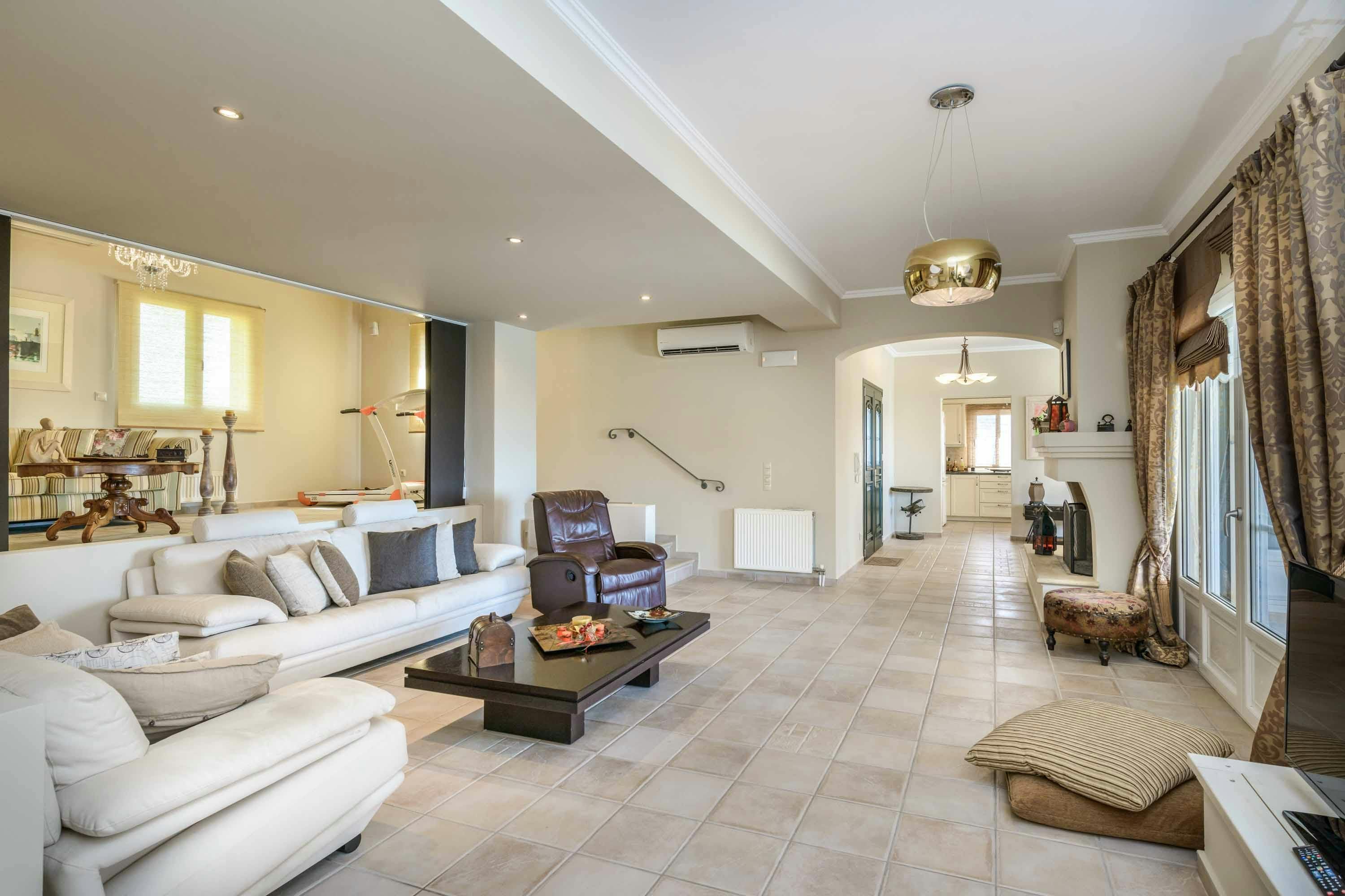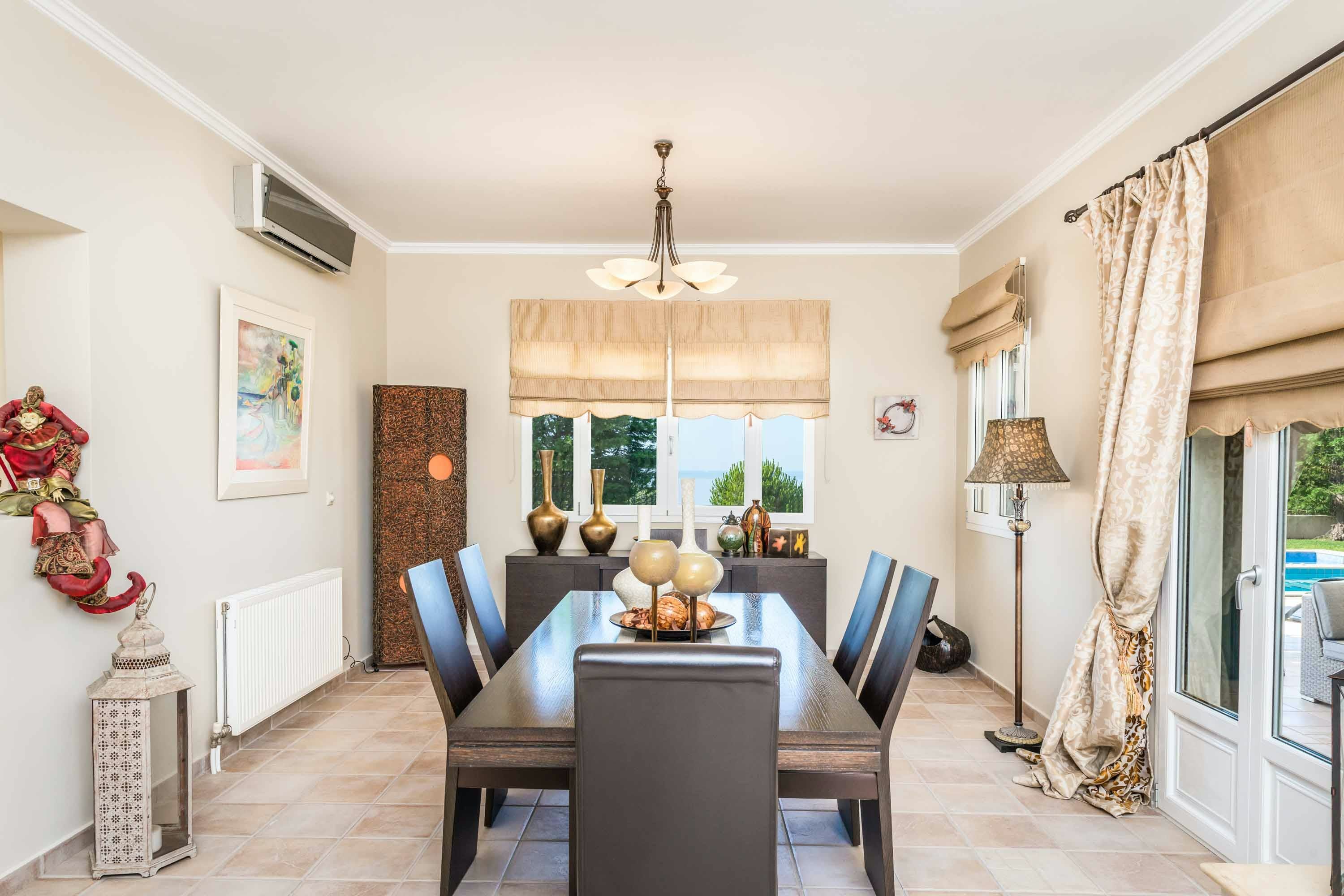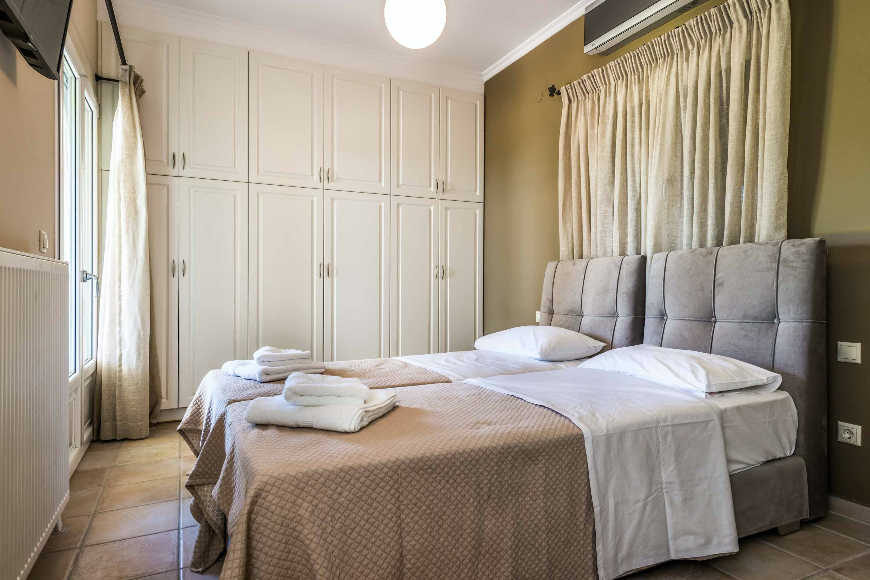 Situated above verdant olive groves, this home has wonderful views over the Ionian Sea. You can soak up the sun on the large terrace next to the private pool or cook an alfresco lunch on the built-in barbecue. Inside, there’s plenty of room to relax, and the place has everything you need for a comfortable stay. When you want to explore, Helis and Avithos beaches are just a short drive away. And you’ll be a short stroll away from restaurants and shops.