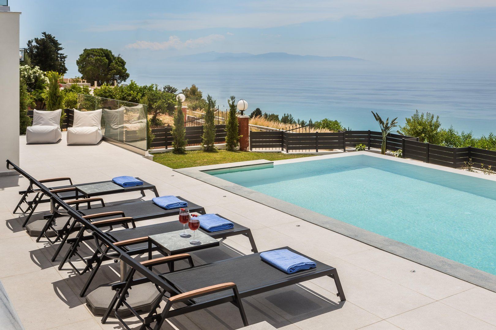 Magnificently modern, it's reminiscent of a Hollywood mansion rather than a Greek island retreat. Pour yourself a local wine, such as a crisp glass of robola, or make the most of your host’s complimentary bottle. Starting outdoors, pass by the infinity pool and stylish black loungers and parasols. Heading up to the first of two glass-fronted balconies, you’ve got a shady pagoda for alfresco dining, then another with beanbags for lazy days in the sun.