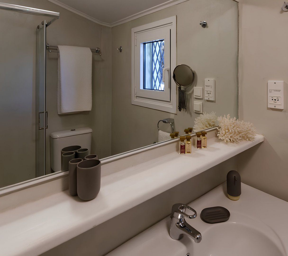 Nestled in a tranquil corner of Kefalonia, this charming villa offers guests the perfect retreat for a relaxing getaway. The villa boasts two elegant bedrooms with private bathrooms, as well as a separate bedroom with independent garden access and its own bathroom – perfect for guests seeking extra privacy. The designs are a little dated, but the traditional charm makes this place inviting. Guests can unwind and soak up the stunning sunset views from the terrace, which overlooks the White Cliffs of Kefalonia, while the living area is a comfortable spot for family movie nights once the sun goes down. When you’re ready for a beach day, pack your towels and walk down to the undiscovered Spasmata Beach, where you’ll find beautiful white sands.