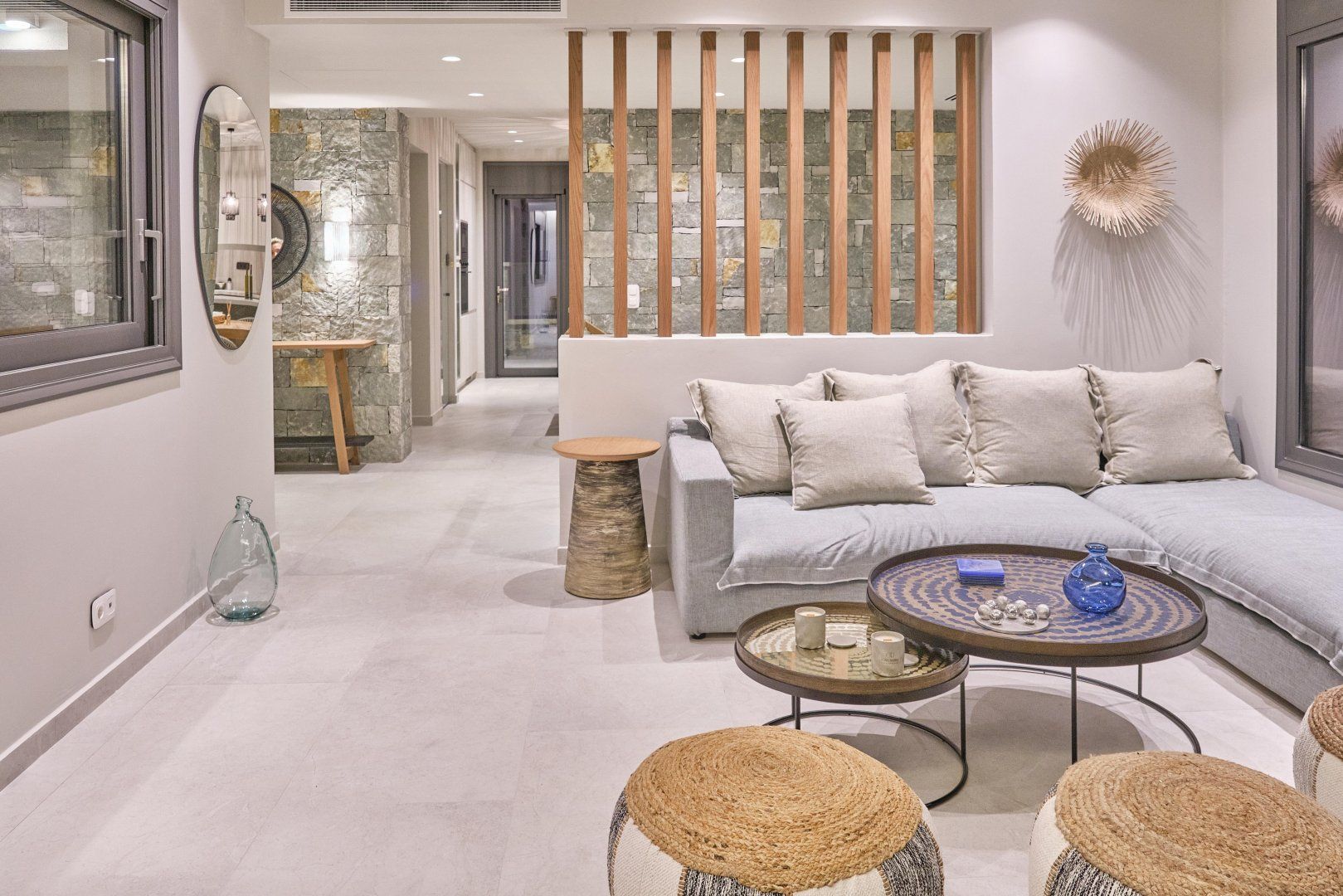 Although you'll want to spend as much time out in the open air as possible here, you won't be disappointed when you finally have to head inside. There are two wings to the property, plus a self-contained studio apartment, which means that there's an abundance of private space, even for larger groups. The design throughout is gloriously contemporary, with sleek surfaces, a minimalist approach to adornment and oodles of natural light from the large windows. If you ever have a hankering for the more rustic side of Greek accommodation, the pair of wood-burning fireplaces might just scratch that itch.