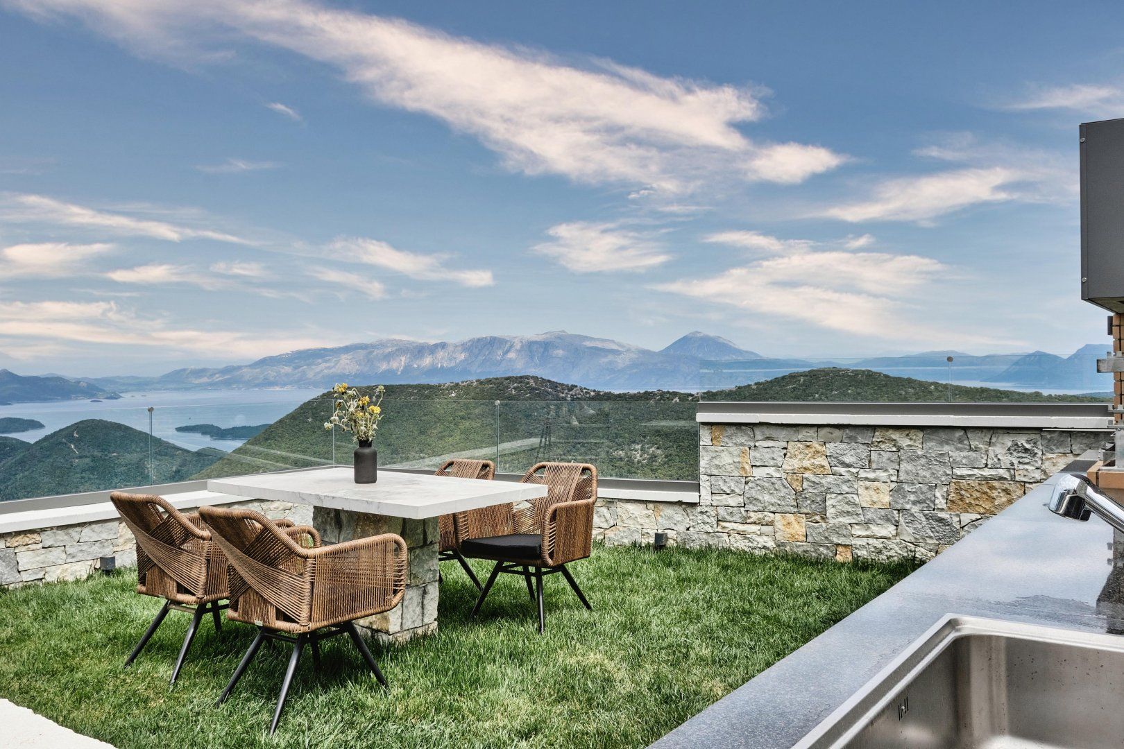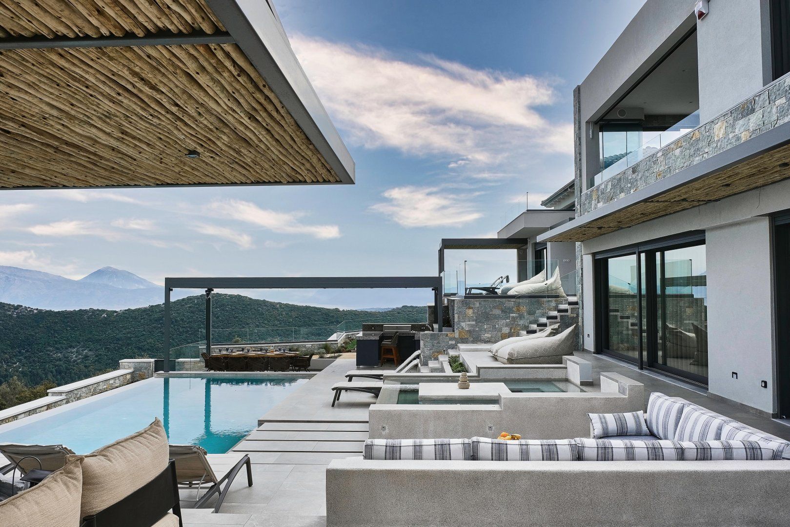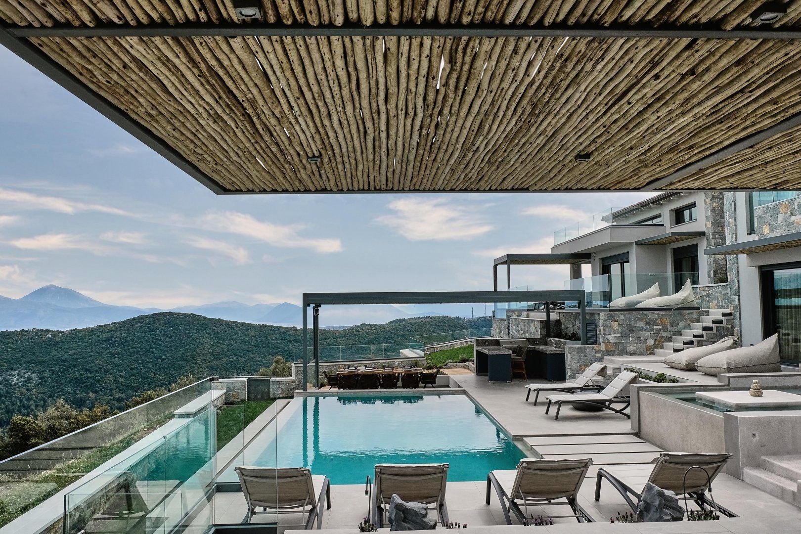 Built into a Lefkada hillside – in a rather harmonious fashion we might add – this sensational villa is blessed with the sort of incredible views at which you'll never tire of gawping. From the address, there's an uninterrupted panorama of the Ionian Sea, Nydri Gulf and the neighbouring island of Skorpios.