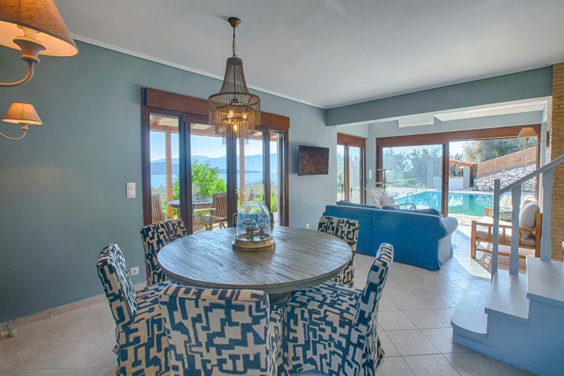 Mina is a private villa located on a hillside in Lefkada, Greece. Inspired by the serene Ionian countryside, this traditional villa invites up to 6 guests to relax in a peaceful ambiance. Enjoy breathtaking sea views while lounging by your private pool or dining alfresco on the patio equipped with a BBQ. Inside, vibrant and colorful tones dominate the airy spaces, creating an atmosphere of joyous hospitality. Two bedrooms on the upper level offer stunning sea views, one with access to a private balcony. A separate guesthouse accommodates two more guests. Located near Nikiana village and Nydri town, you can also explore nearby islands with daily cruises from Nydri's port. With amenities such as AC, fully equipped kitchen, private parking, and WiFi, Mina offers the perfect blend of luxury and tranquility for your Lefkada getaway.