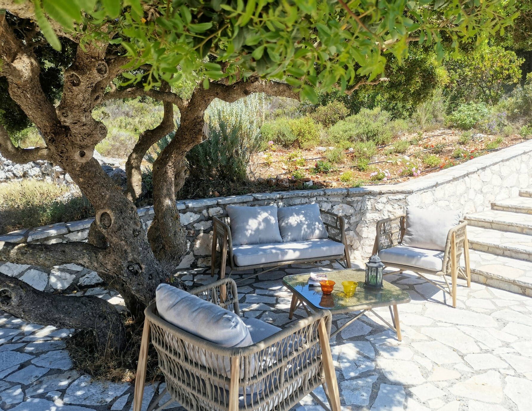 For the more adventurous, a steep hike leads down to a little private cove, where clear waters and a white pebble beach are yours to enjoy. Not the easiest walk and likely to take you around twenty-five minutes, it's well worth it to dive into those turquoise waters. The owner even runs yoga and wellness retreats where you're encouraged to get closer to nature.