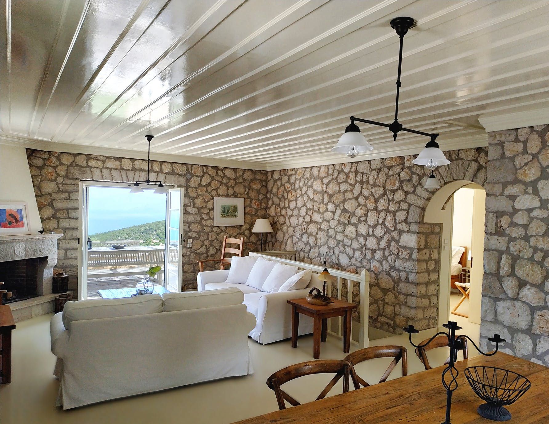 Part of a small cluster of similar homes, this one stands apart from the others so it's perfect if privacy is high on your agenda. Handbuilt by the owner in a traditional style, there are two floors – each with its own kitchen and independent entrance but linked internally by stairs – so it offers some flexibility. And best of all, there's plenty of outside space to enjoy that view from. Walk across to your private pool and comfy sun loungers await on the stone terrace, surrounded by fragrant wild herbs and olive trees, all with staggering views – especially at sunset.