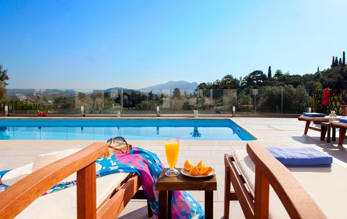 It's likely that one of the first things you'll want to do when arriving here is to jump in the pool. And since the entire villa is set up to enjoy the private terrace – you don't have to be a big swimmer to make the most of this home. Instead, find some peace and quiet on one of the sun loungers around the pool – as the views from here overlook the blissful mountainous landscape and olive groves all around. Also found just next to the pool area is a convenient outdoor dining area – lovely for homemade Greek meals and barbecues in the sun.