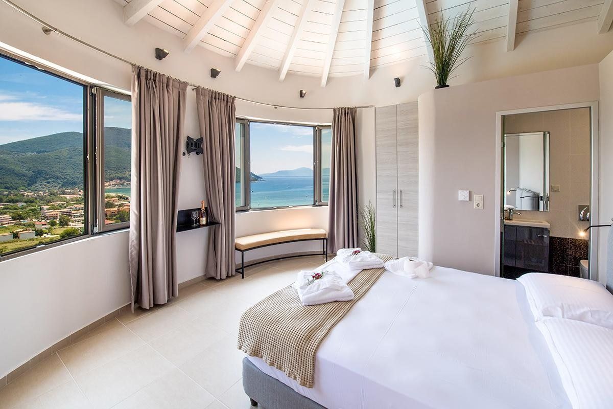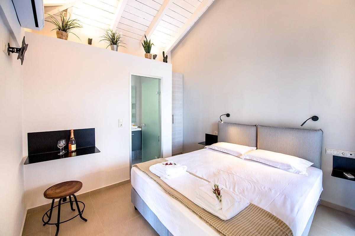 When the sun reaches its highest point, slink into the private pool and cool off with a couple of unhurried laps. Loll about on the loungers or take a break from the heat and relax in the breezy living space – we loved the juxtaposition of the curved wall and sharp lines of the contemporary furnishings. If exploring is on the agenda, take the short five-minute drive into Vasiliki village. Watch the boats to and fro from the picturesque port and feast on delicious Greek cuisine in waterside tavernas.