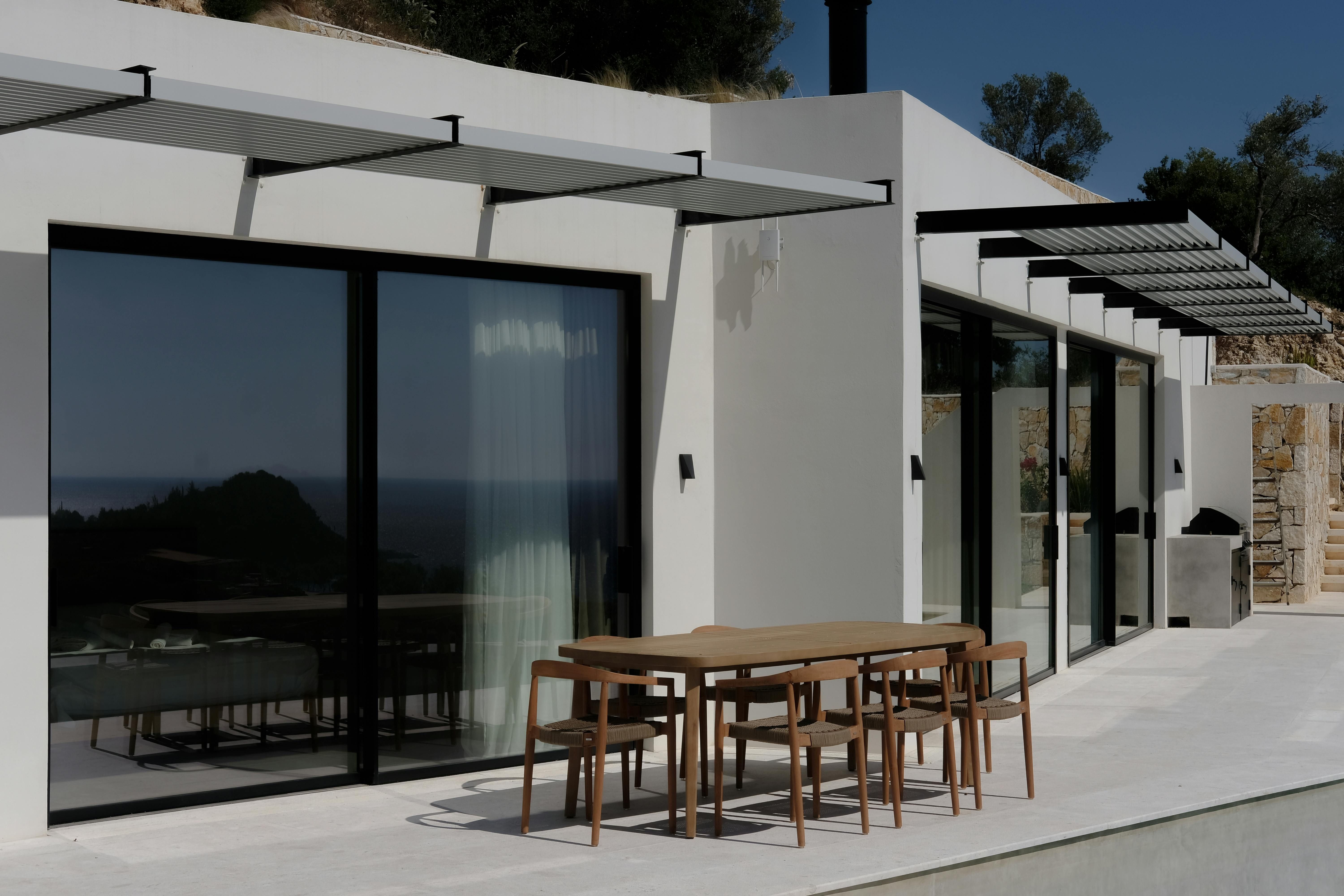 Beautiful Ionian Sea views await at this Lefkada villa. You can enjoy them from the private pool and terrace – though the bright living area, with its floor-to-ceiling doors, brings the scenery indoors, too. Inside, the open-plan space is ideal for relaxing, with a well-equipped kitchen and two comfortable en-suite bedrooms, both with direct outdoor access. We think this home is best suited for those searching for peace and relaxation. And with the nearest beach around a fifteen-minute walk away, it’s easy to dip in and out of the island’s crystal-clear waters whenever the mood strikes.