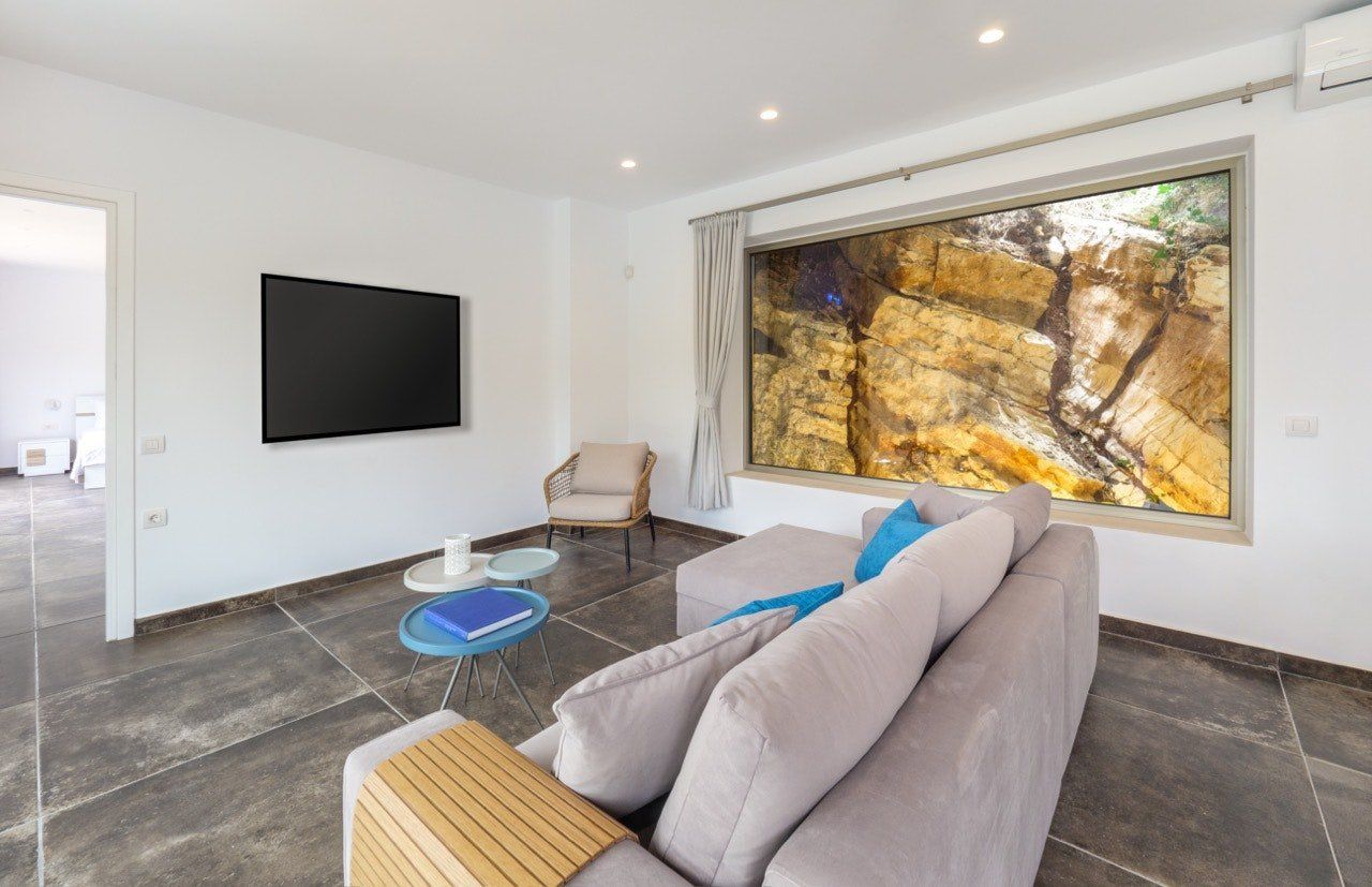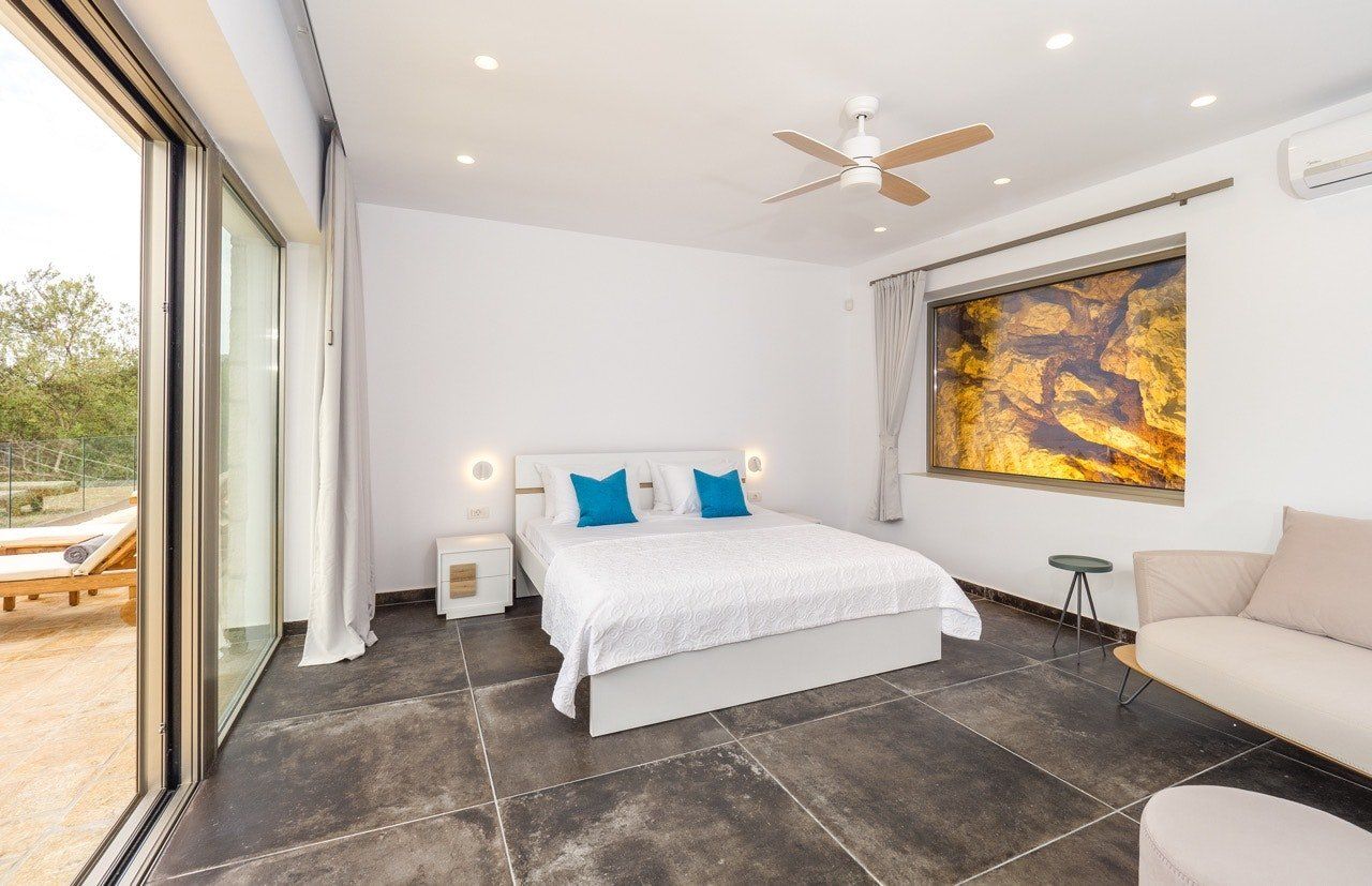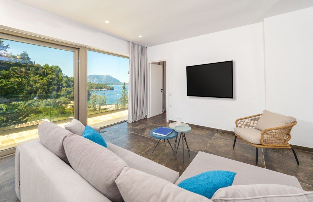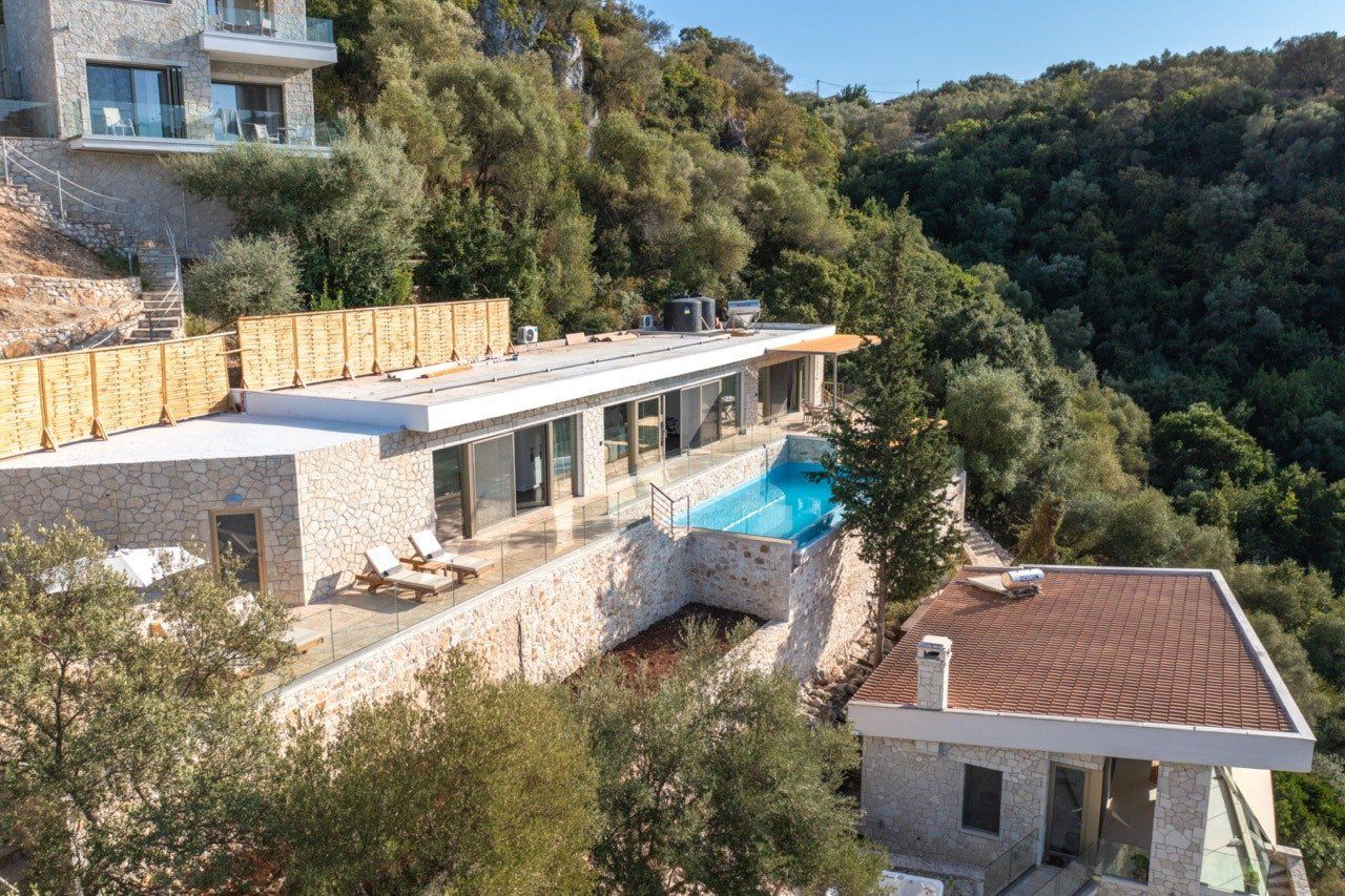 While you'll need to tackle 116 steps from the villa to reach Spilia Beach below, this beautiful villa offers knockout vistas over Skorpios Island and the Lefkada mountains from its heightened position. Spread out across one level, the free-flowing living area leads out onto a panoramic veranda and saltwater infinity pool. And wait until you see the stunning Ionian views from the rooftop terrace. Keen to explore the island? Let your host organise a boat charter to discover Lefkada's hidden coves. Keep things low-key at Spilia Beach with its seafront tavernas for lunch – just a four-minute stroll away. Or mosey into the sleepy hillside village of Spartochori (twenty minutes on foot) – its cobbled streets and authentic tavernas are an evening well spent.