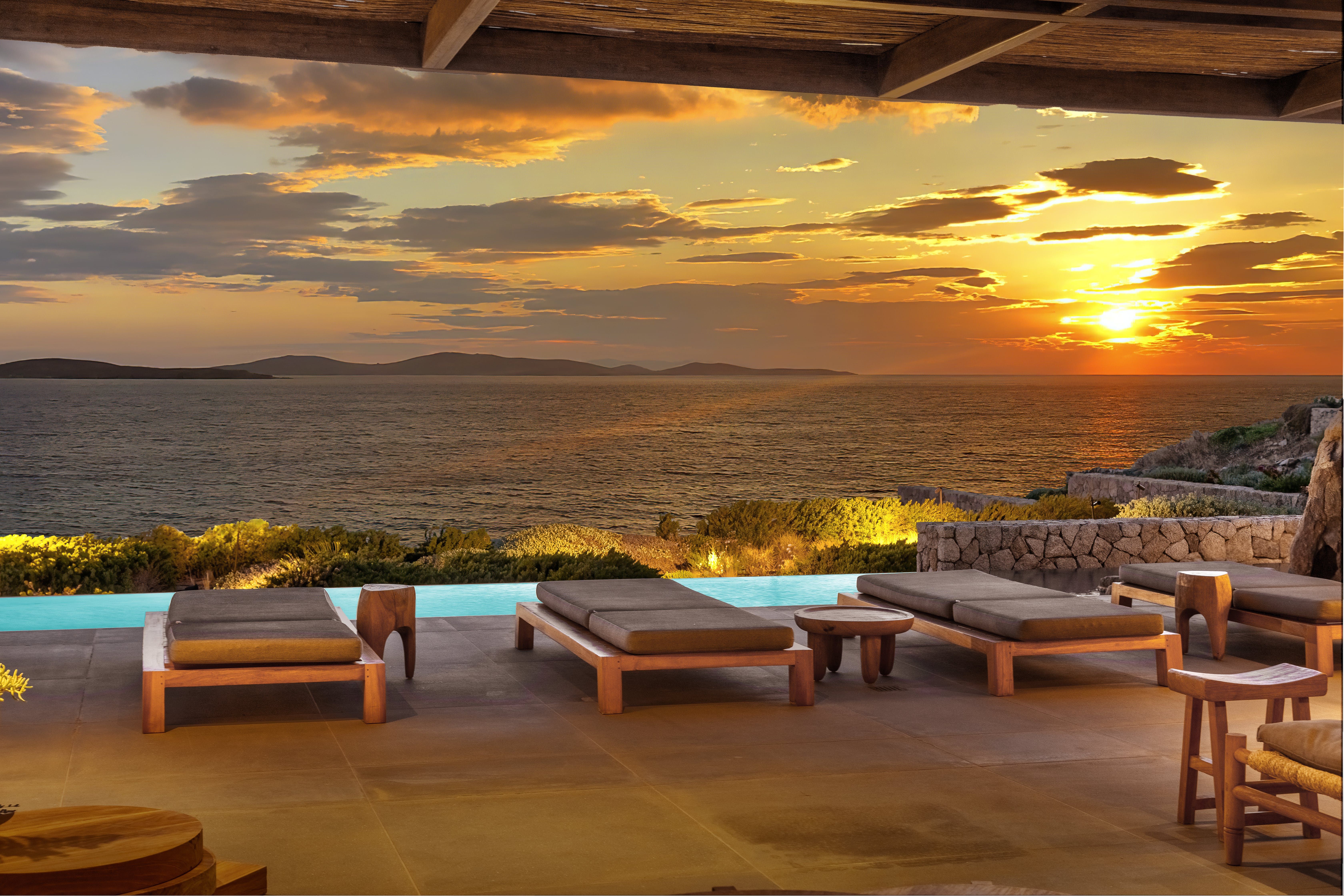 It really is no wonder that this thoughtfully designed home has a clutch of architecture awards and has been featured in a host of international magazines, including Dezeen – we can see why. Situated on the ridge of Aleomandra and facing the stunning Aegean, the views over the neighbouring island of Delos are gorgeous, and the sunsets here are legendary.