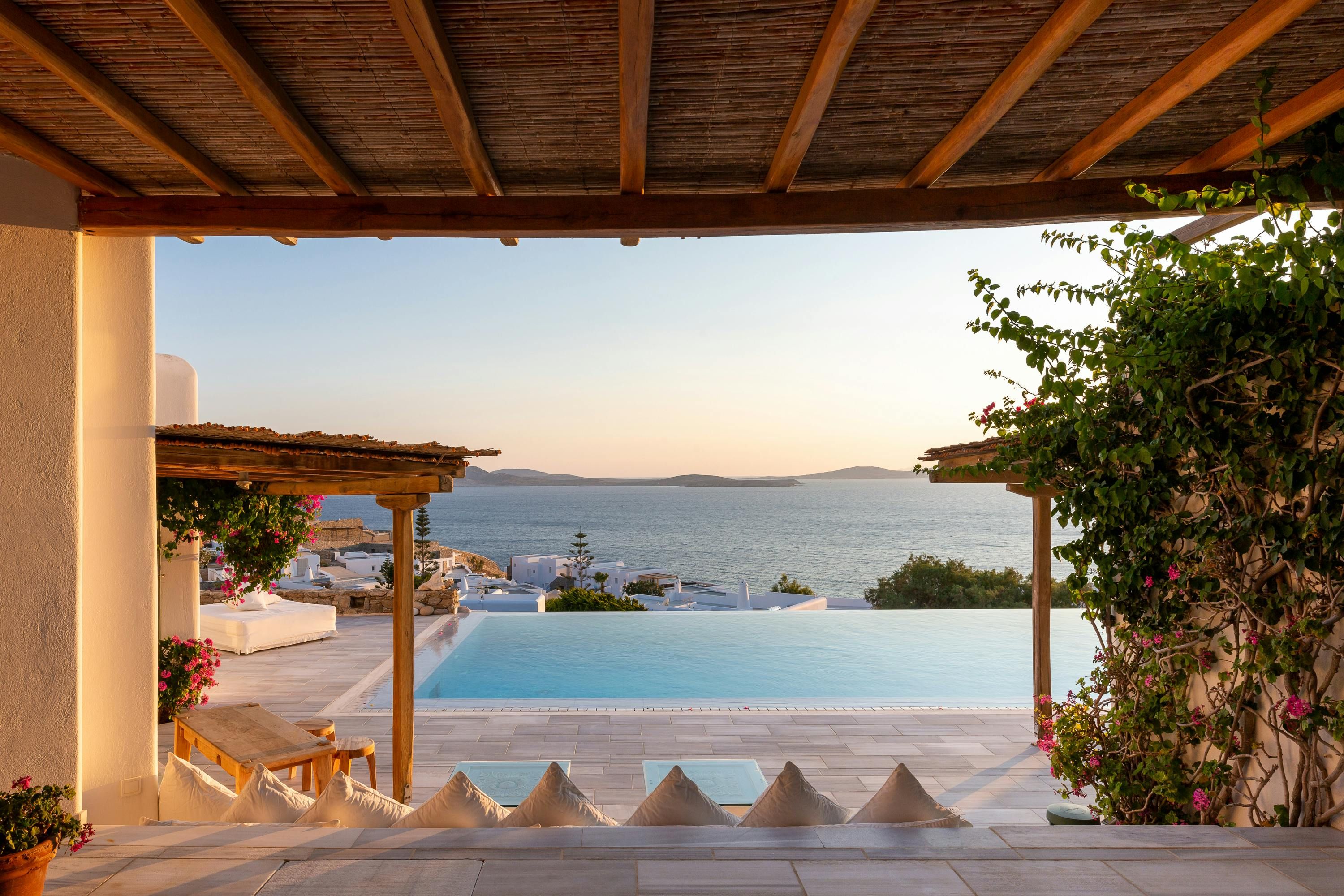 Peaceful and yet just a short walk from the beach in Agios Ioannis, this home offers the perfect blend of privacy and accessibility. You can soak up the beautiful views while lounging by the pool. There’s a wood-fired barbecue for alfresco dining and a hammock for lazy sunset drinks. You’ll be welcomed by a wonderful team of live-in staff and there are a range of extra services available – including private chefs and massages. You don’t need a car here, but it’s a great option of you’d like to explore Mykonos old town – less than 5 kilometres away.