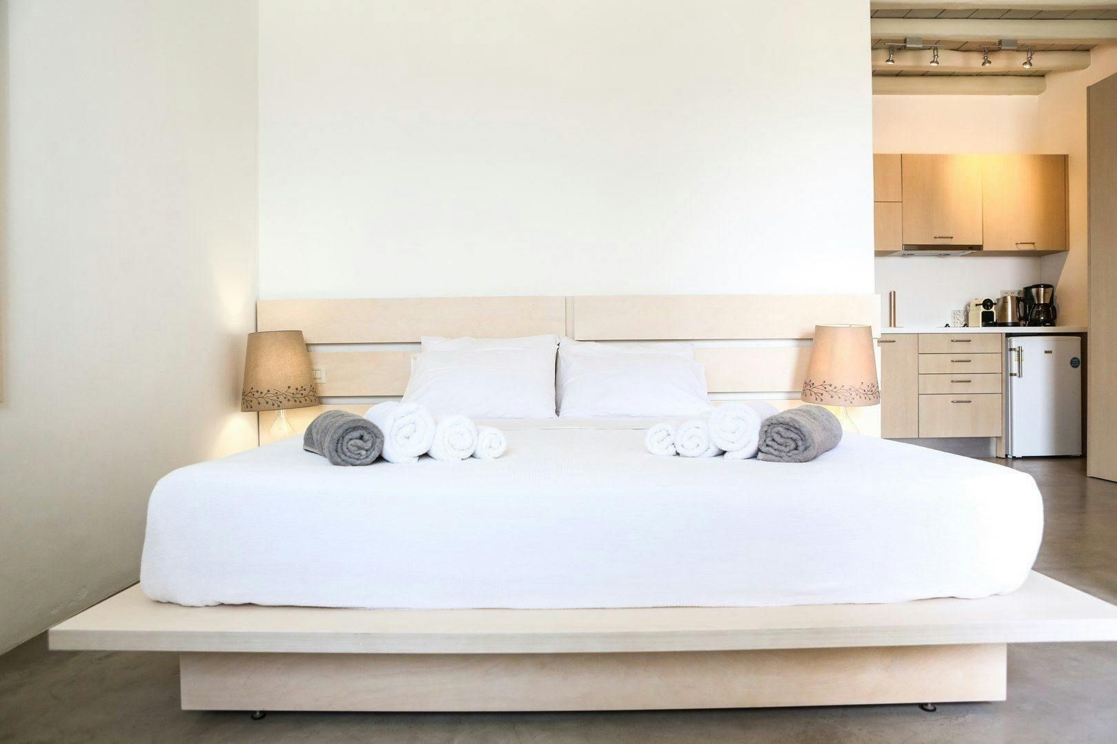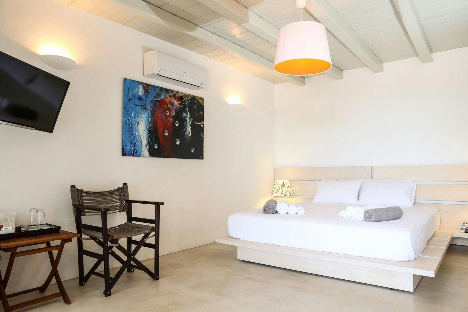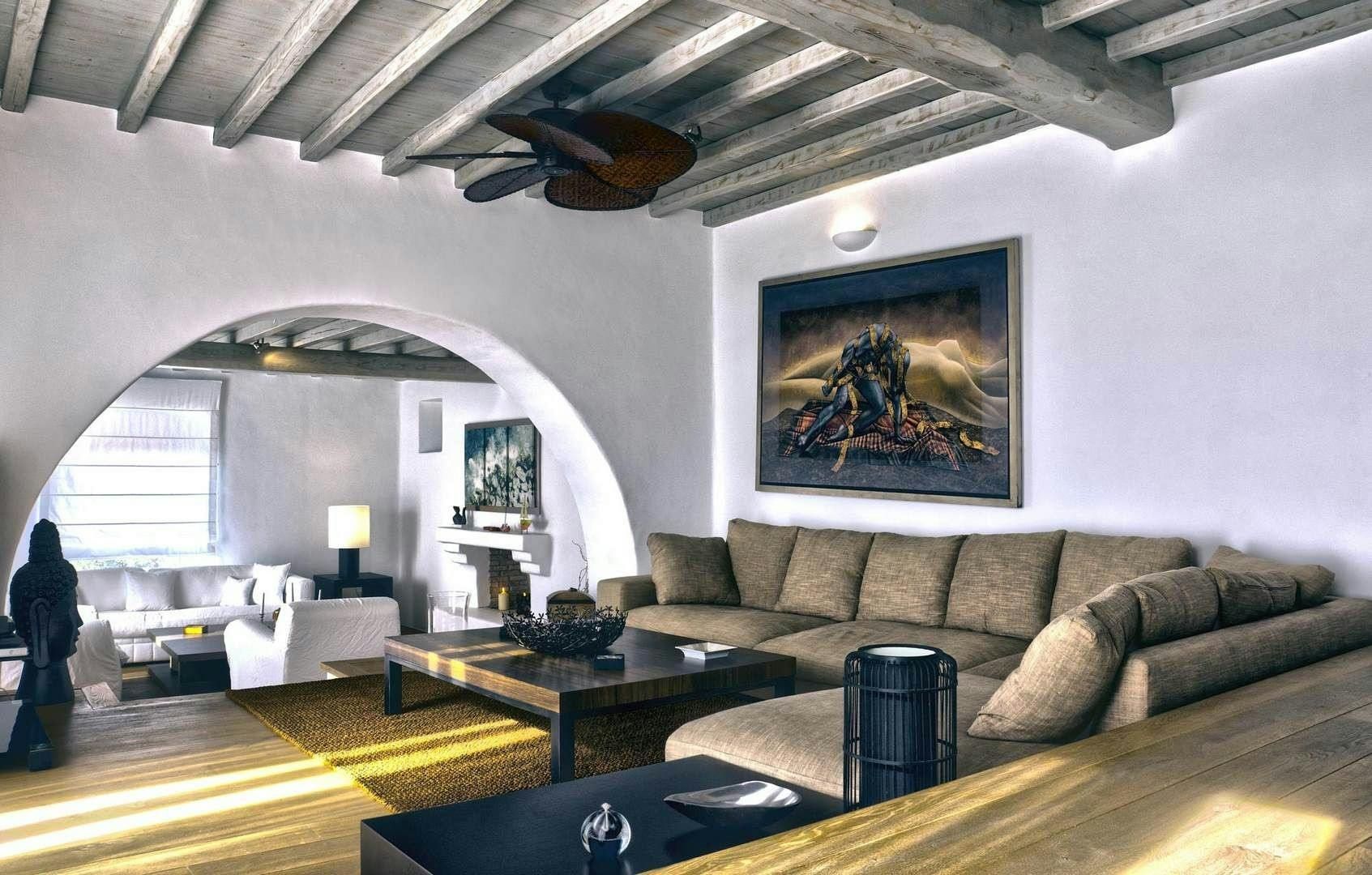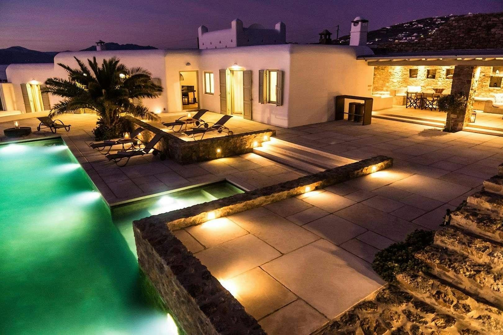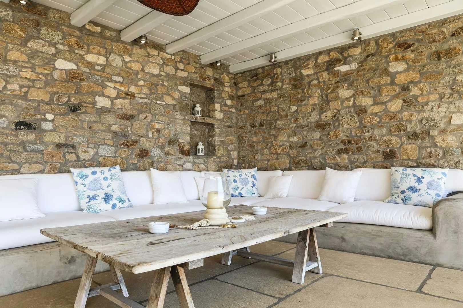 Only 600 metres from Agios Stefanos Beach, this sea-facing home consists of a main house and four separate guesthouses – prioritising privacy for your group. How about a barbecue after playing on the private football field? You can even hire a chef to take over the kitchen. While the pool terrace offers easy appeal, the low platform beds won't suit everyone. This villa is a fifteen-minute drive from the bustling Mykonos Town, and the concierge can point you towards the best bars.