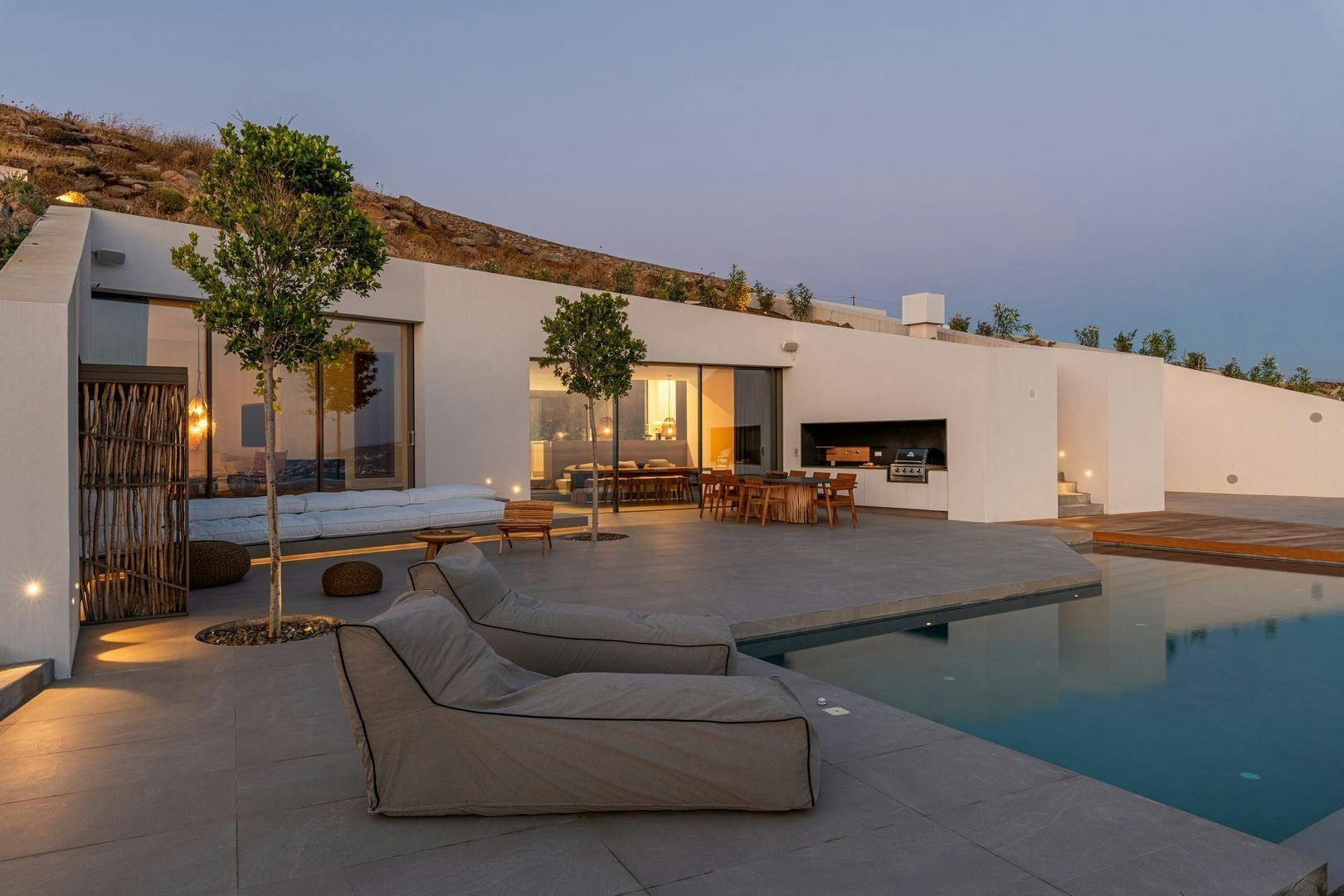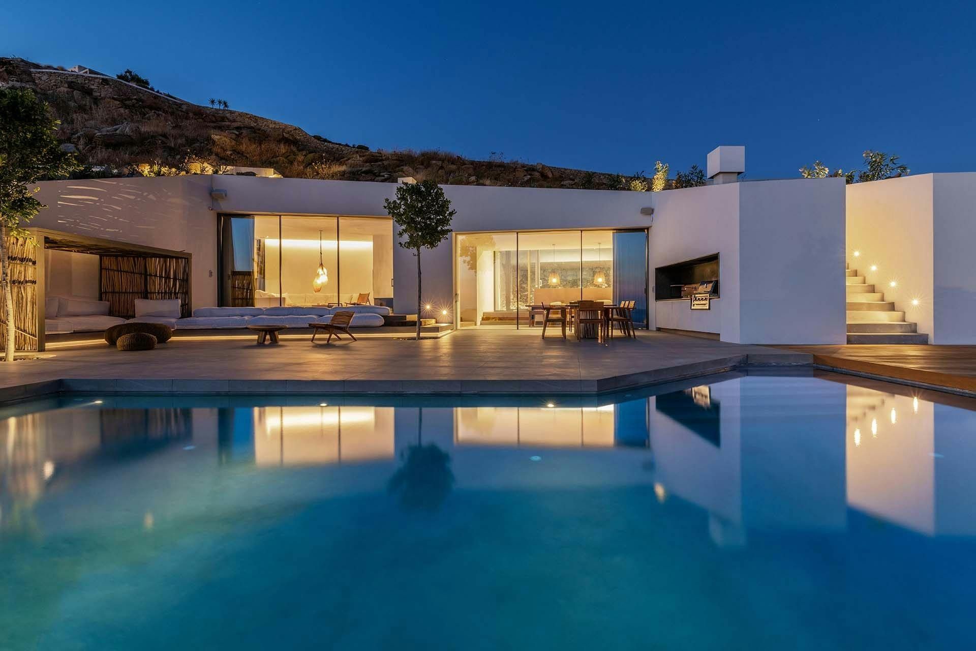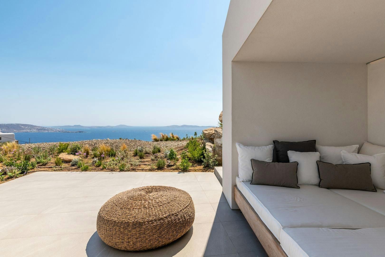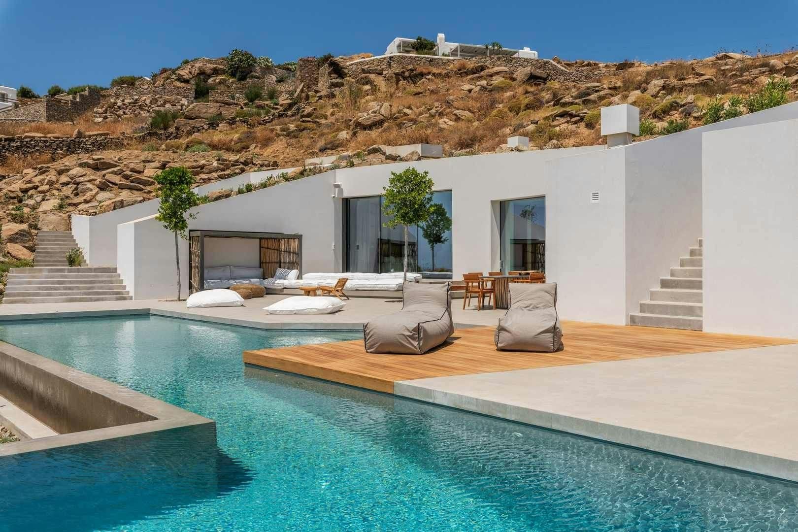 Nestled into the hills of Agios Stefanos, this home sits in perfect harmony with its surroundings. From the heated pool and home gym to the calm rooms, every detail has been considered to inspire pure relaxation. You’ll find one of the bedrooms is located in an independent annexe (a nice option for those in search of extra privacy), plus there is a wine room and an outdoor home theatre – perfect for magical evenings under the stars. From here, take the short drive to Mykonos Town (just ten minutes away) or treat your group to a private boat trip – just one of the extra services available on request.