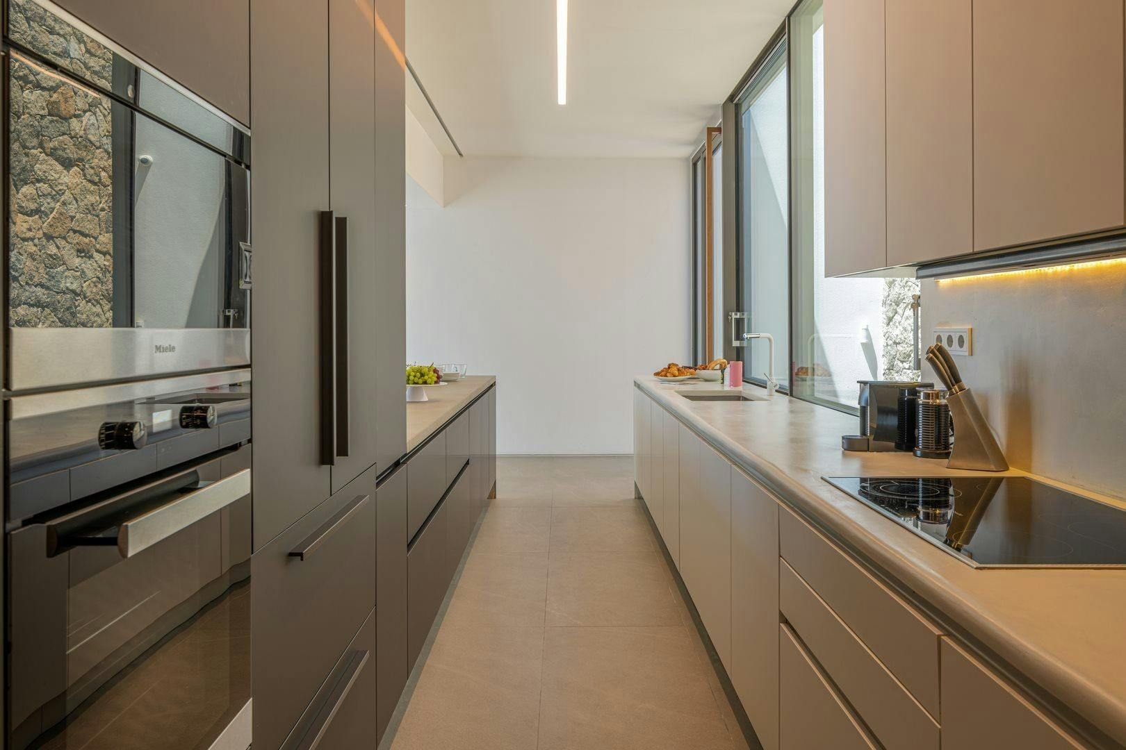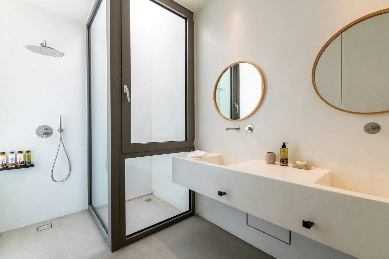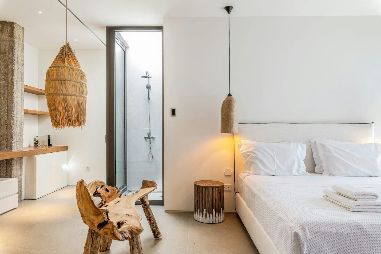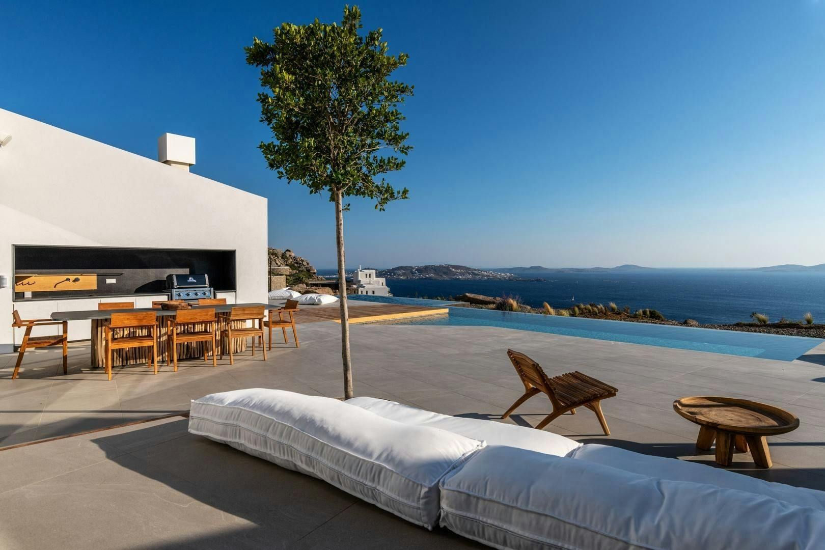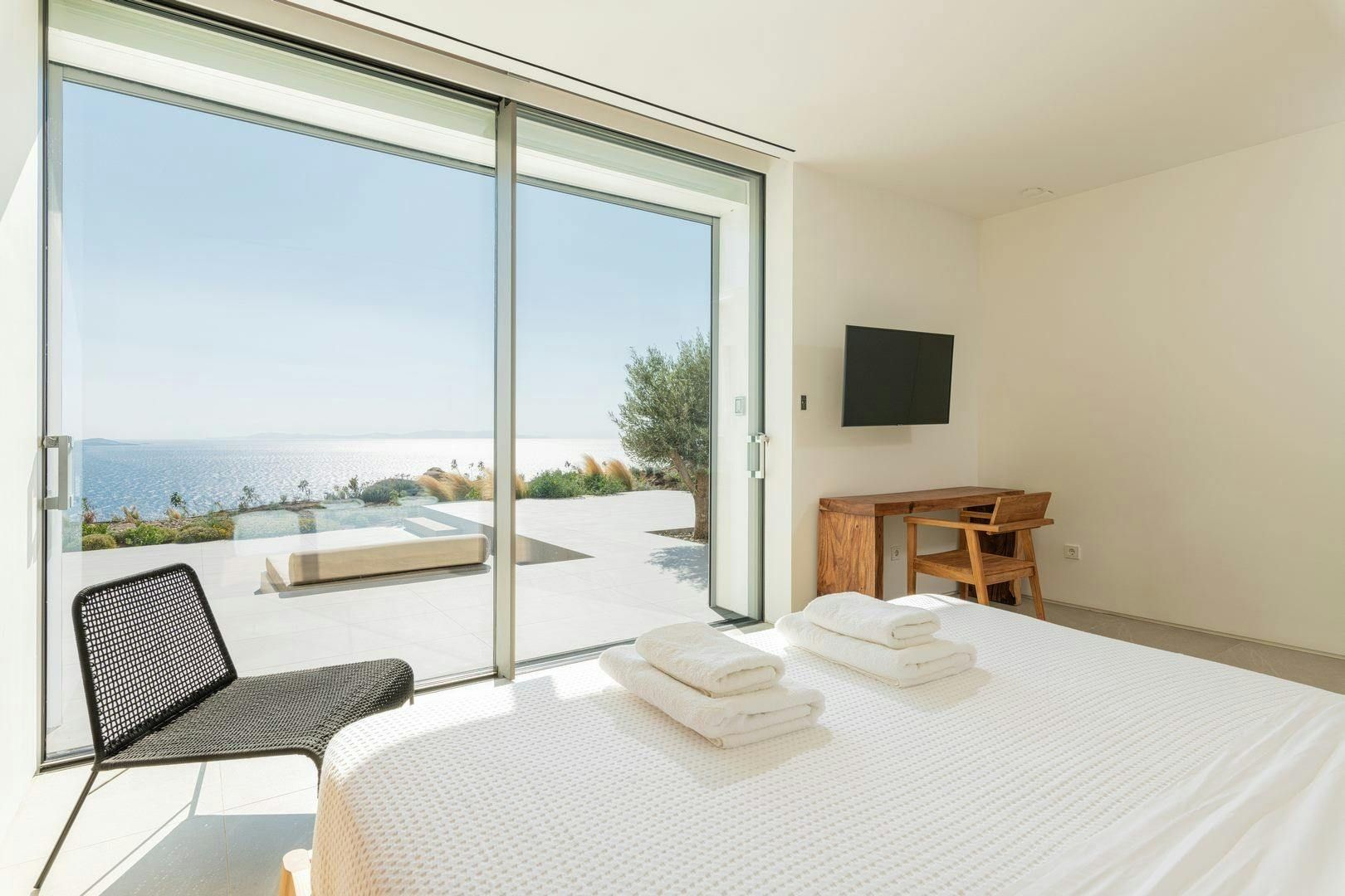 Nestled into the hills of Agios Stefanos, this home sits in perfect harmony with its surroundings. From the heated pool and home gym to the calm rooms, every detail has been considered to inspire pure relaxation. You’ll find one of the bedrooms is located in an independent annexe (a nice option for those in search of extra privacy), plus there is a wine room and an outdoor home theatre – perfect for magical evenings under the stars. From here, take the short drive to Mykonos Town (just ten minutes away) or treat your group to a private boat trip – just one of the extra services available on request.