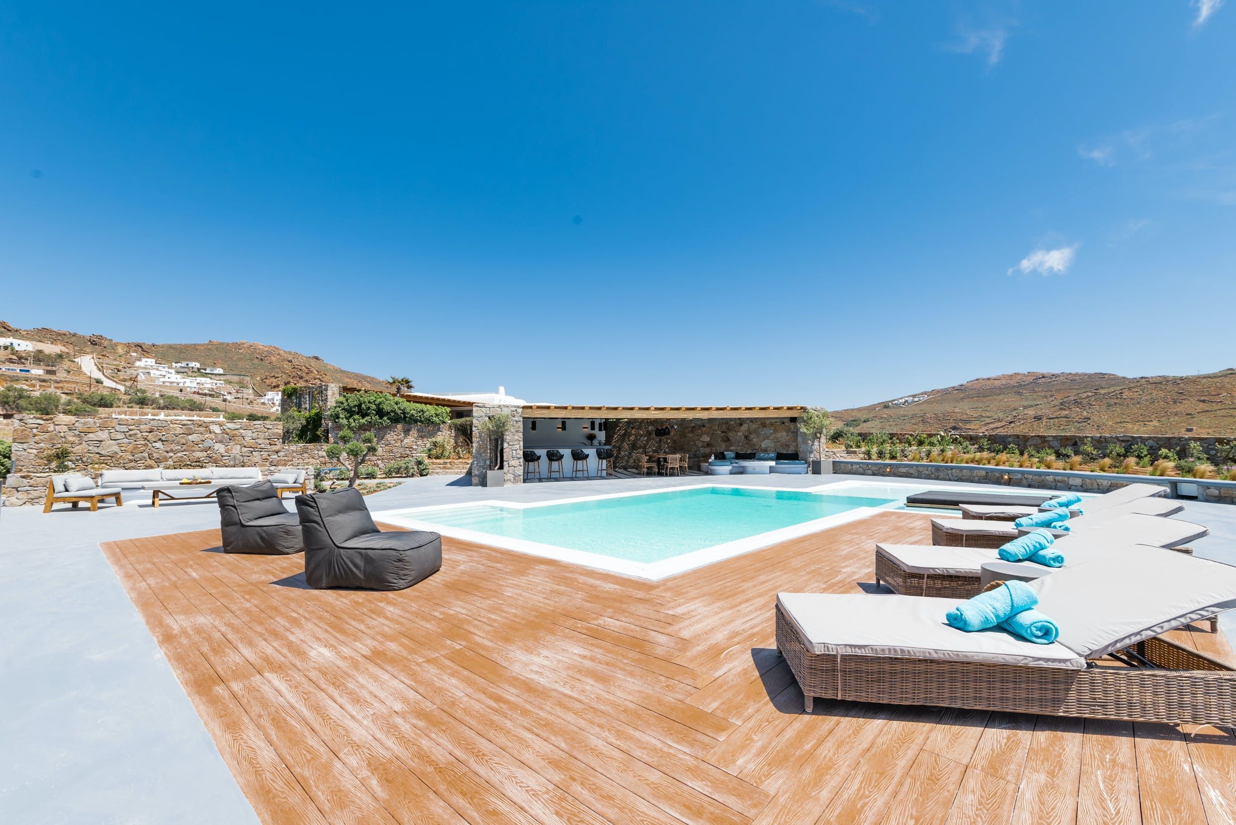 This luxury villa is the perfect place to relax and enjoy your holiday in Mykonos. The villa is located just above the prestigious Elia beach, offering stunning views of the Aegean Sea. The villa has a private swimming pool, a private parking area and is just a short drive from the cosmopolitan center of Mykonos.