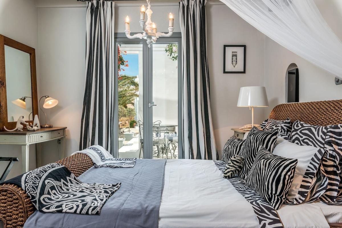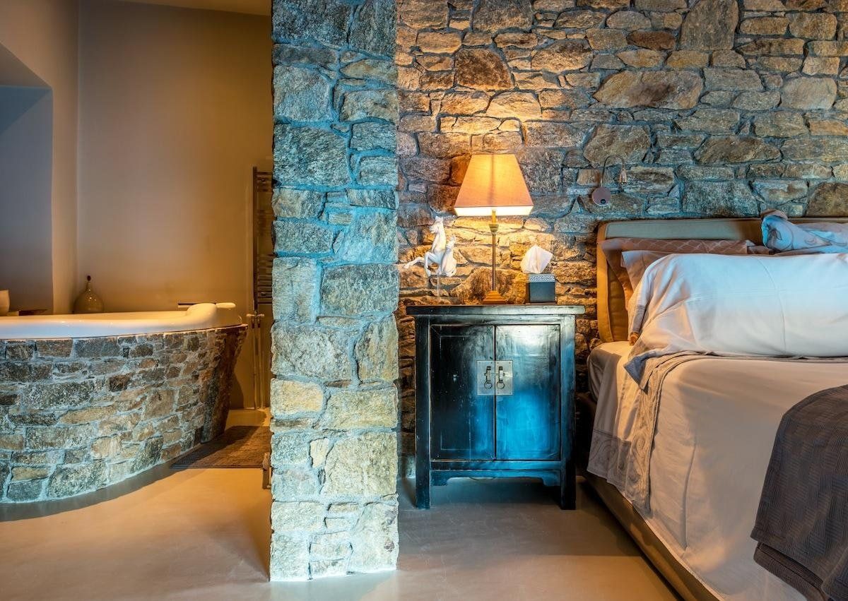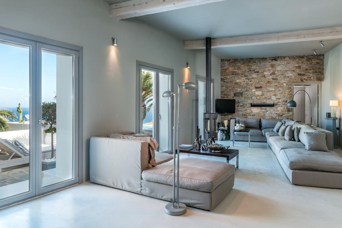 We like the interior here too, which mixes old-world Grecian charm with contemporary comforts. Each bedroom has its own personality – one is decorated in zebra prints, another features exposed stone – and local artwork adorns the walls in every room. On chilly evenings, snuggle up on the squishy sofa and play a film on the Apple TV in the living room – you can even turn on the fire for extra cosiness – while the grey kitchen has everything you'll need to rustle up dinner.