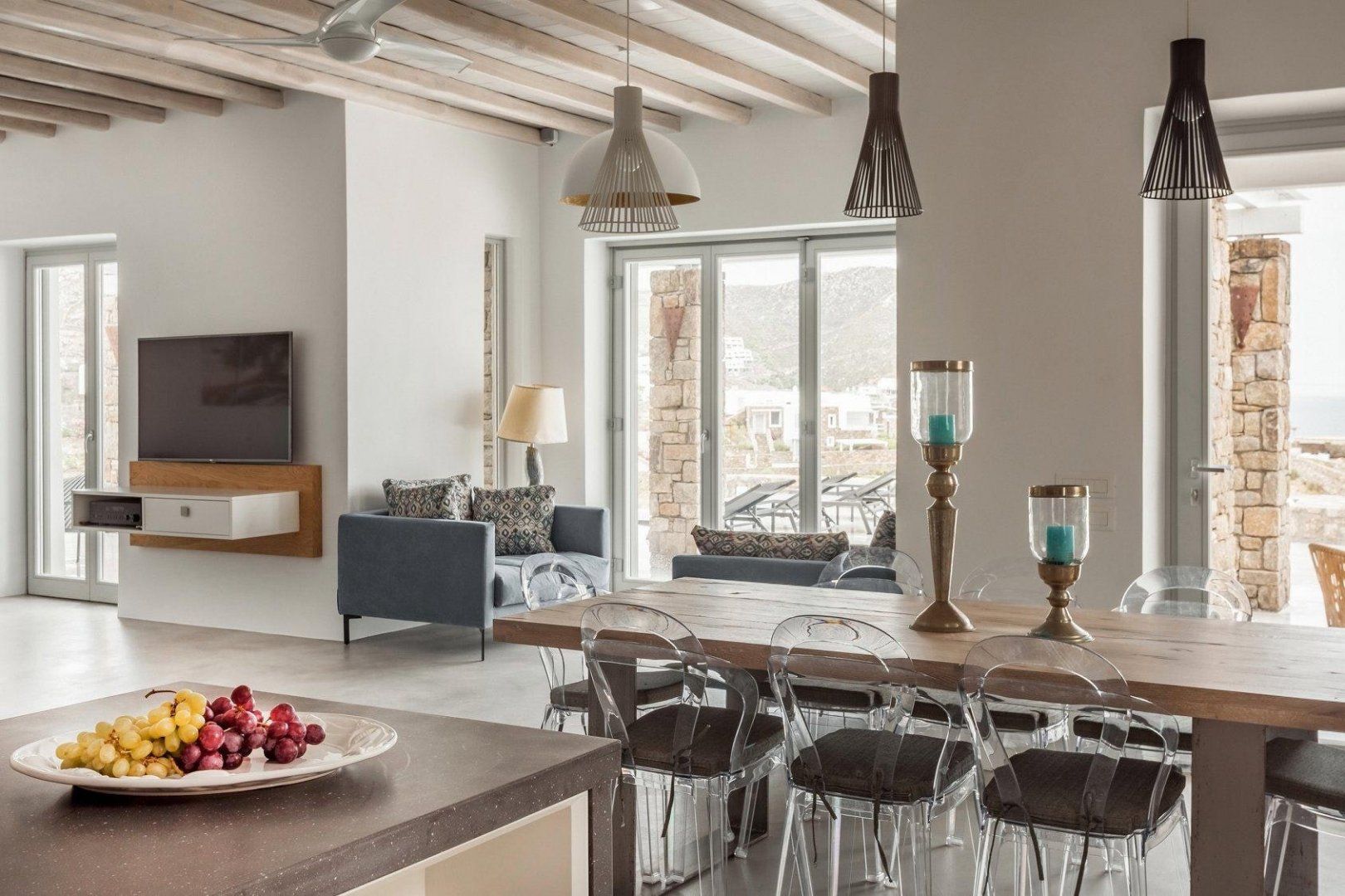 One of a pair of newly-built high-end villas, it's been thoughtfully designed to make the most of outdoor living and indoor comfort. And while you can easily cook in the fully equipped main kitchen, there's an excellent summer kitchen too – complete with a built-in barbecue, bar area and gorgeous outdoor lounge. By day, swim in your private infinity pool with views across the Aegean or just settle into the five-person Jacuzzi for some well-earned relaxation. There's a fitness room with all sorts of equipment if you feel the need to work out and there's always the option to arrange for an in-house massage.