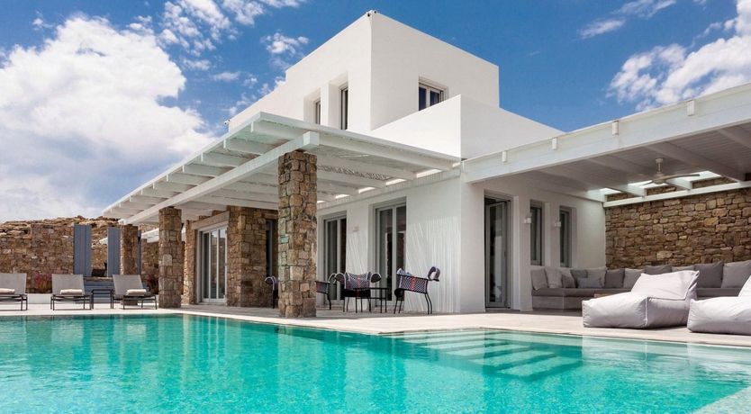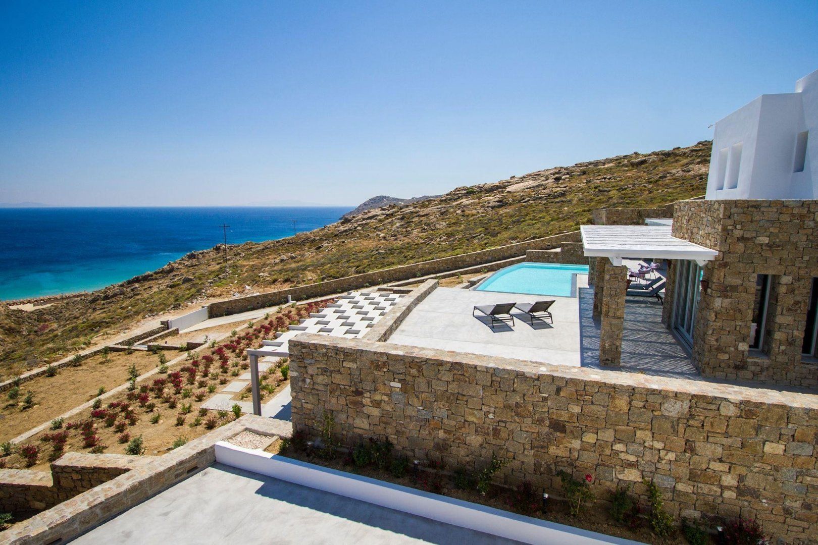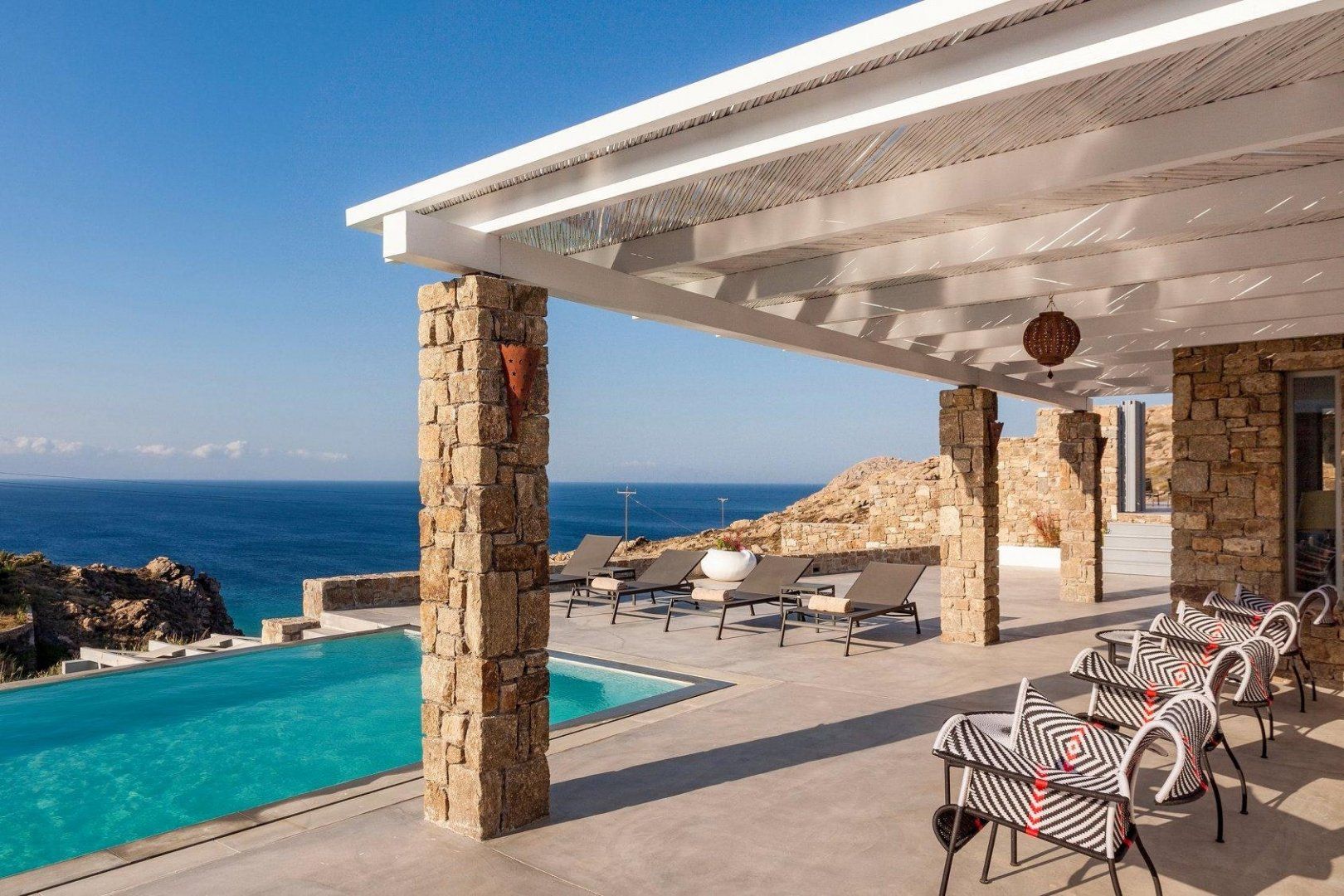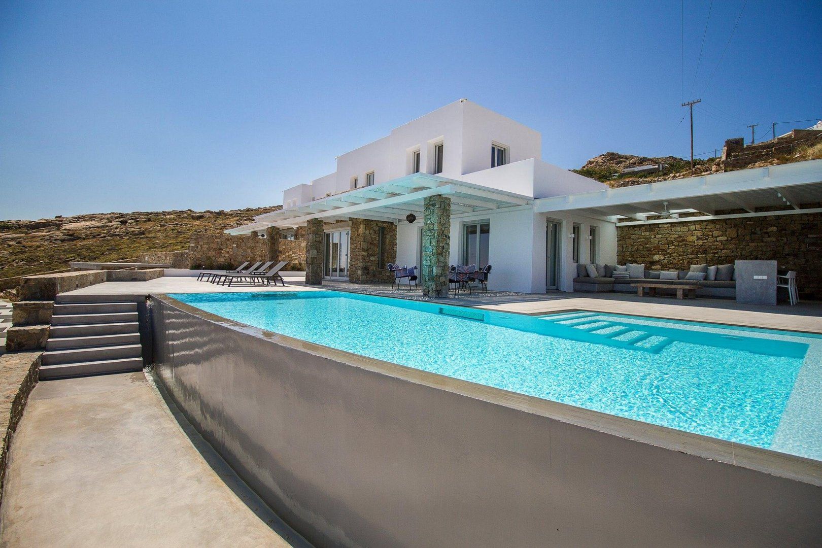 With all the epic sea views you've been craving and some rather impressive luxury details, this beautiful home is poised on a hillside a short walk from Elia Beach. Modern, elegant and extremely spacious – both indoors and out – it's perfect for a large group looking to unwind and enjoy the sun together.