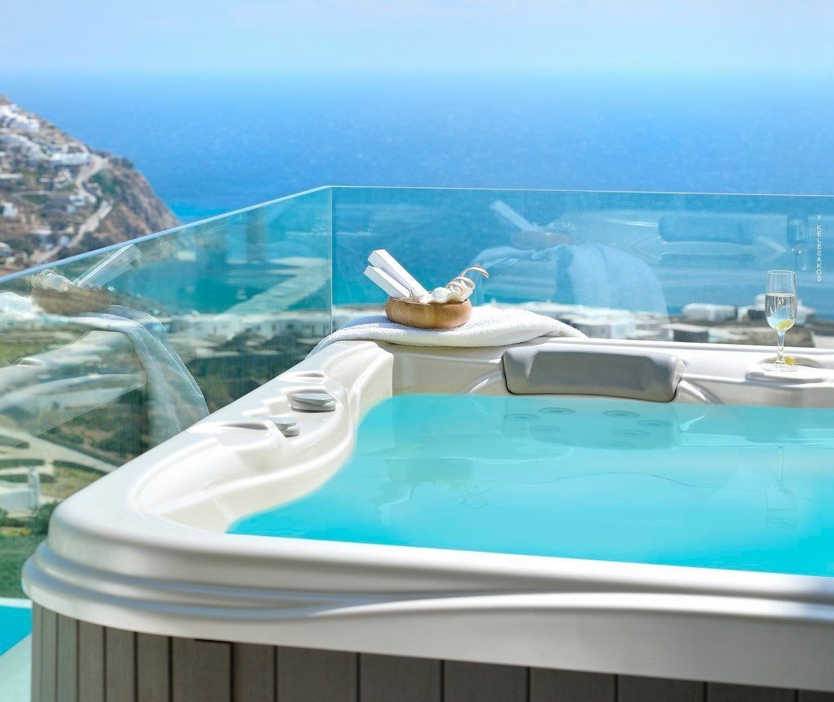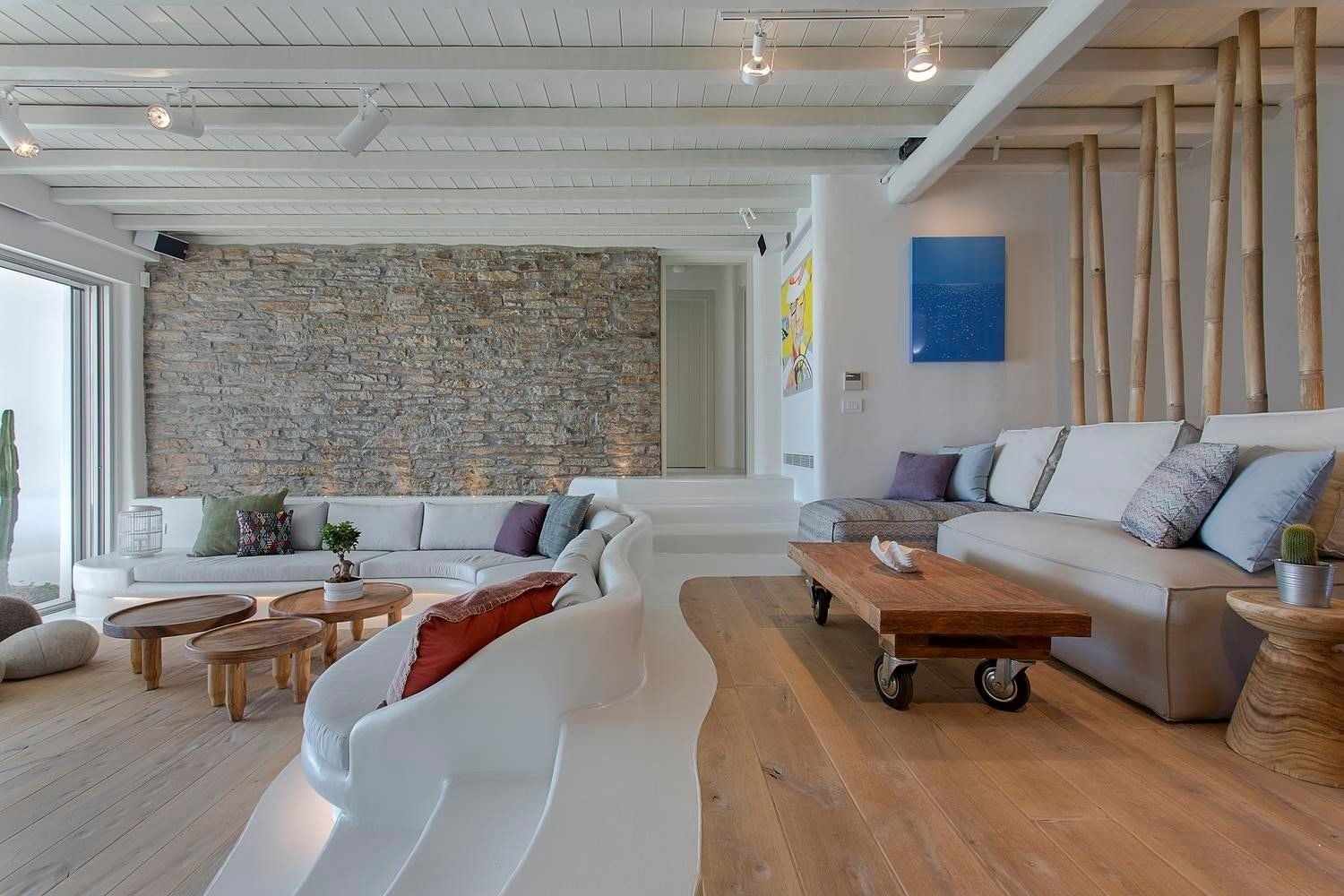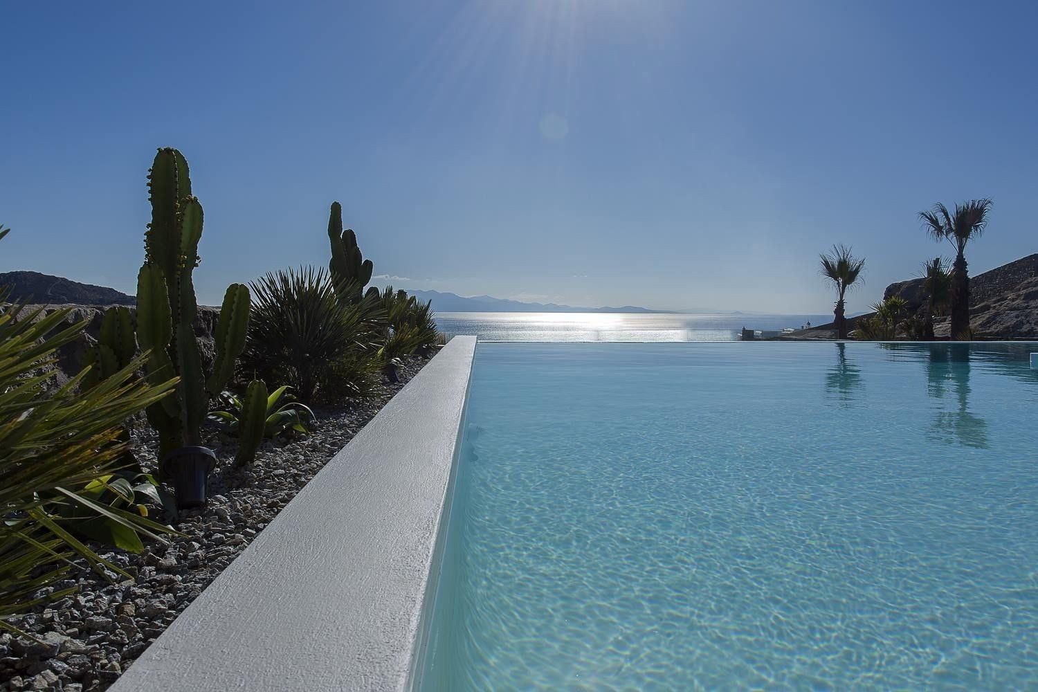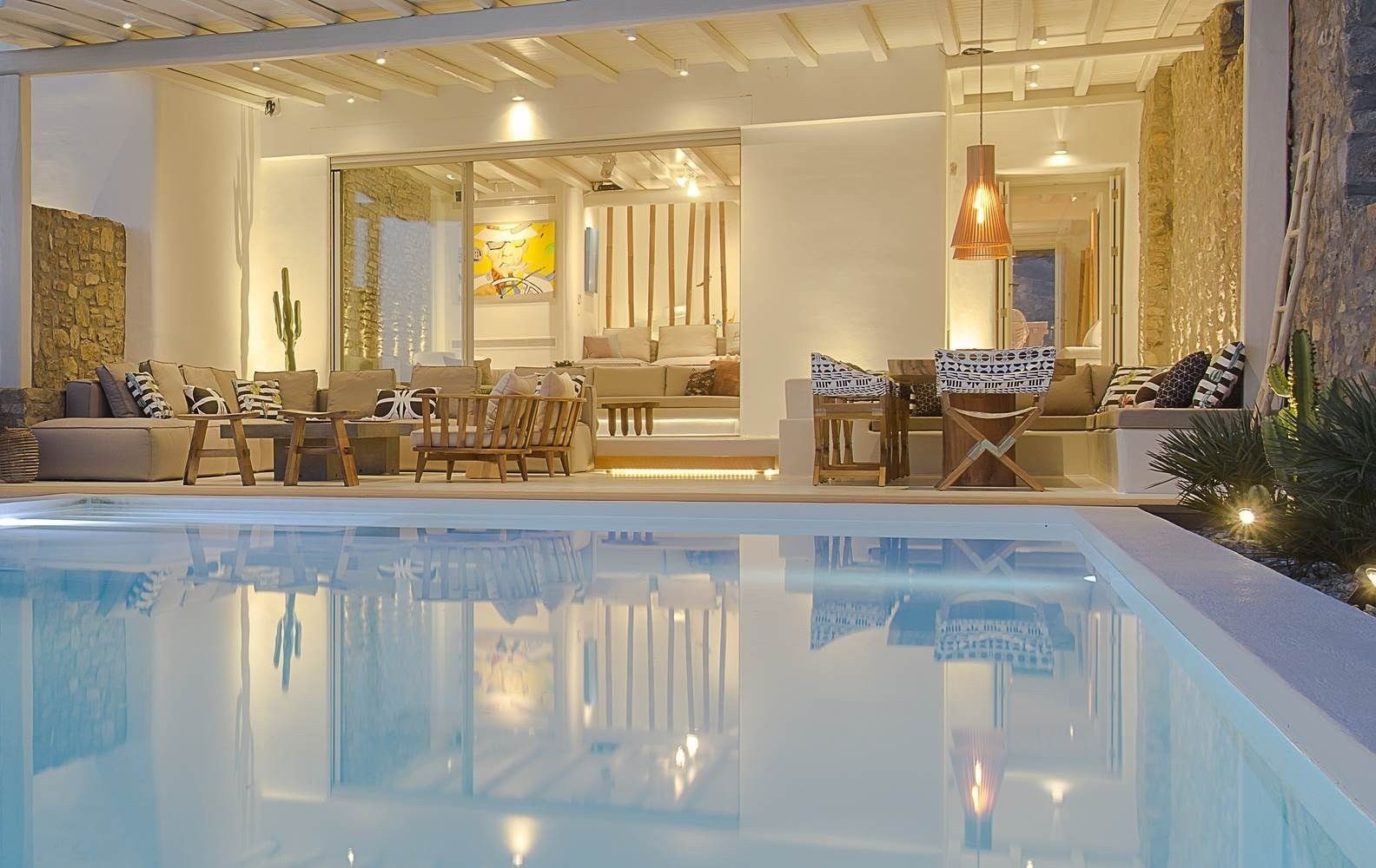 Inside, opulent interiors use natural materials and neutral tones to create a relaxing home away from home. The wellness centre offers guests the chance to work up a sweat at both the on-site gym, and the sauna. Outside, you'll find the glittering pool and an array of loungers for you to stretch out on under the cloudless Grecian sky. And, when evening rolls around, head for the pergola to enjoy alfresco feasts fit for the gods and delicious cocktails from the private bar.