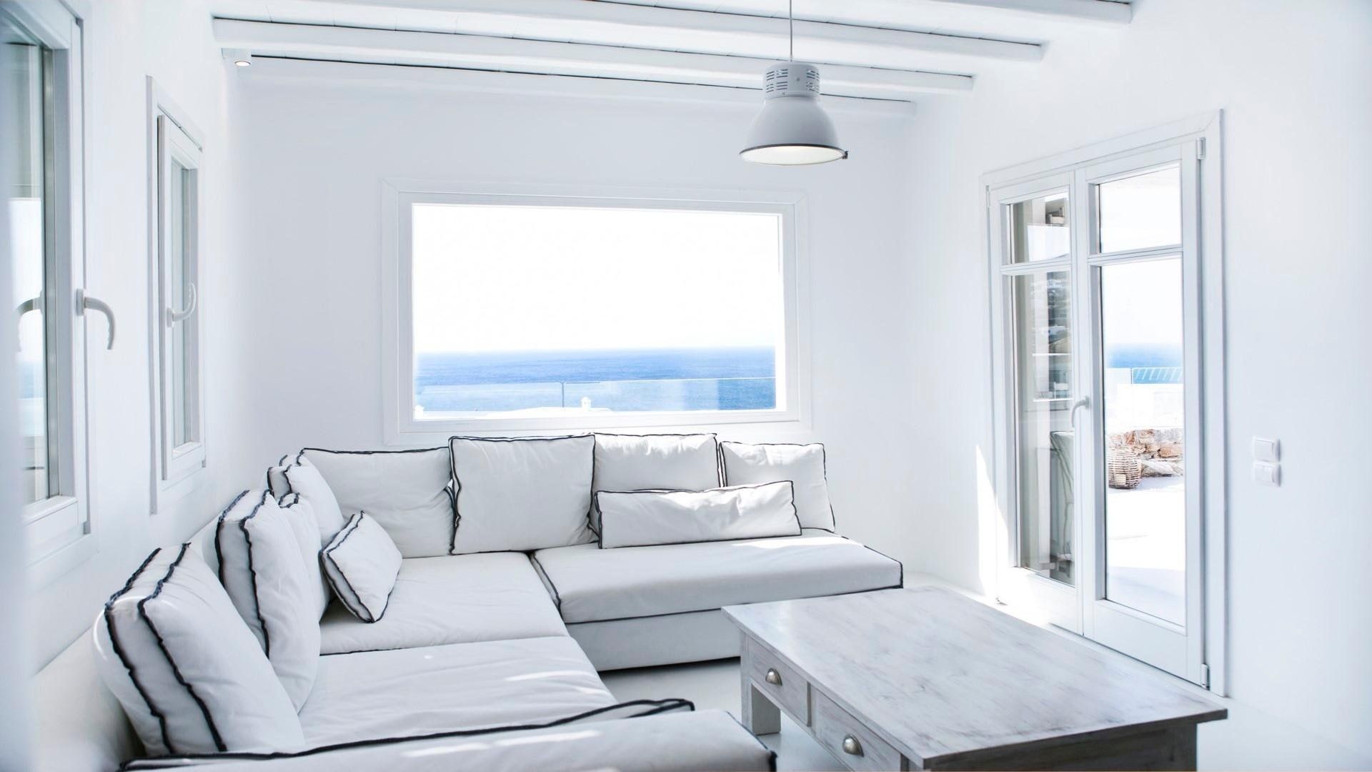 Over the hillside and just 900 metres away from Elia beach, this Mykonos villa boasts breathtaking views of the Aegean Sea. So whether you're outside by the pool, relaxing at the terrace lounge area or curled up on the sofa in the living room – you'll get to take in the panoramic blue vistas all day long.