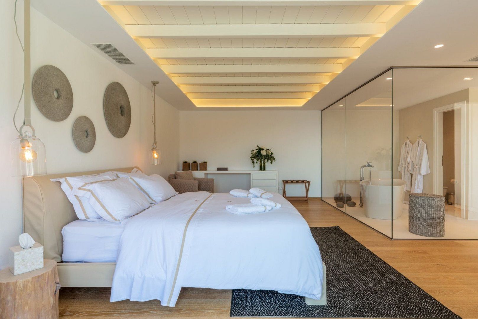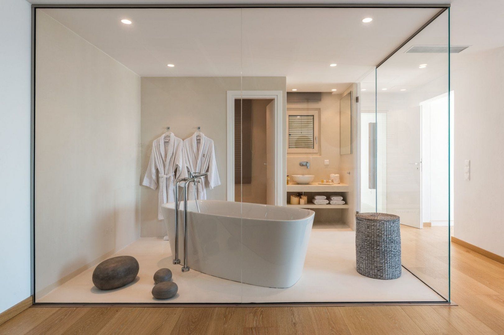 Wander into the main bedroom and marvel at your sensual surroundings. The chamber contains a bathroom surrounded by large glass walls – it's about as intimate as you can get.