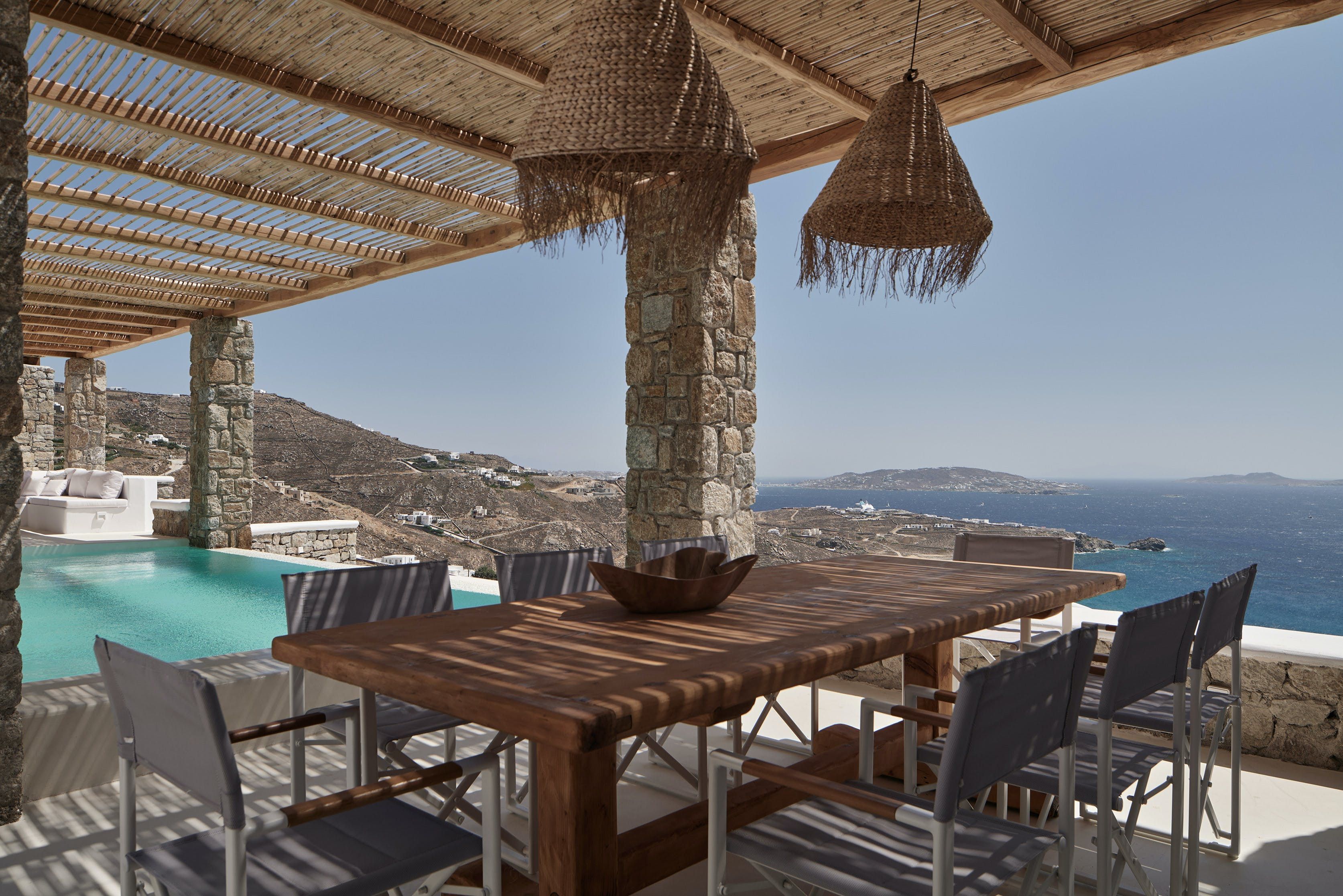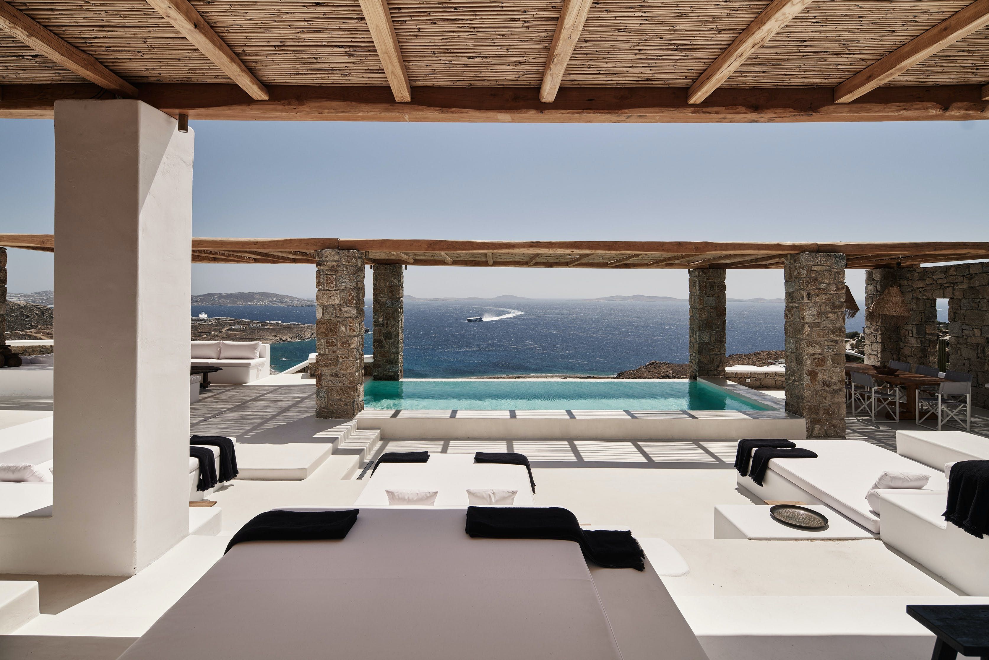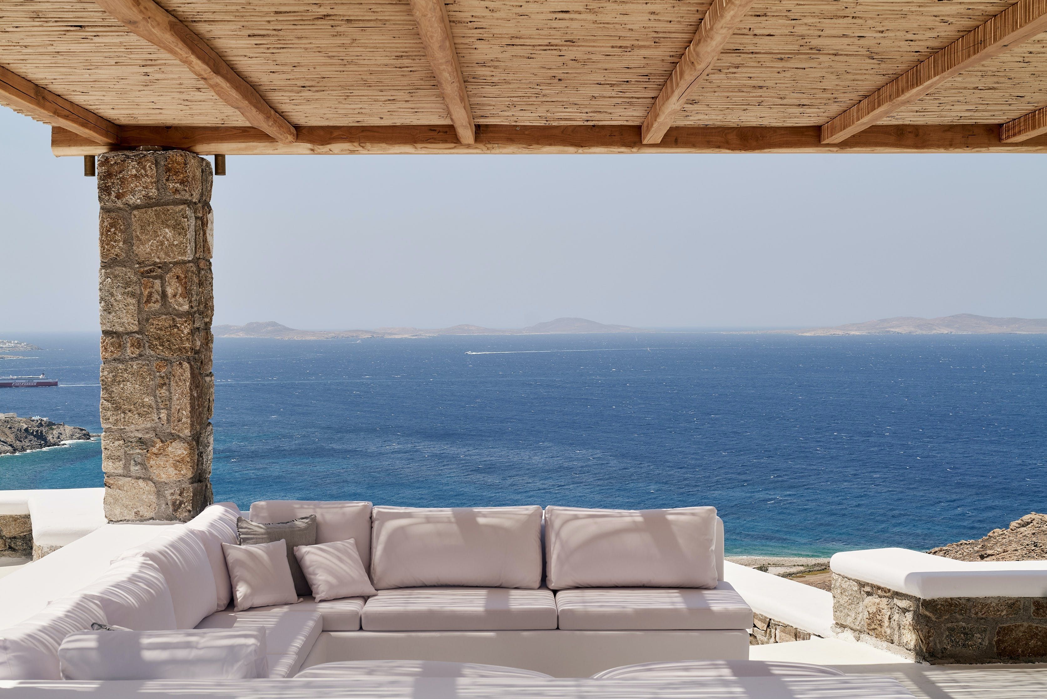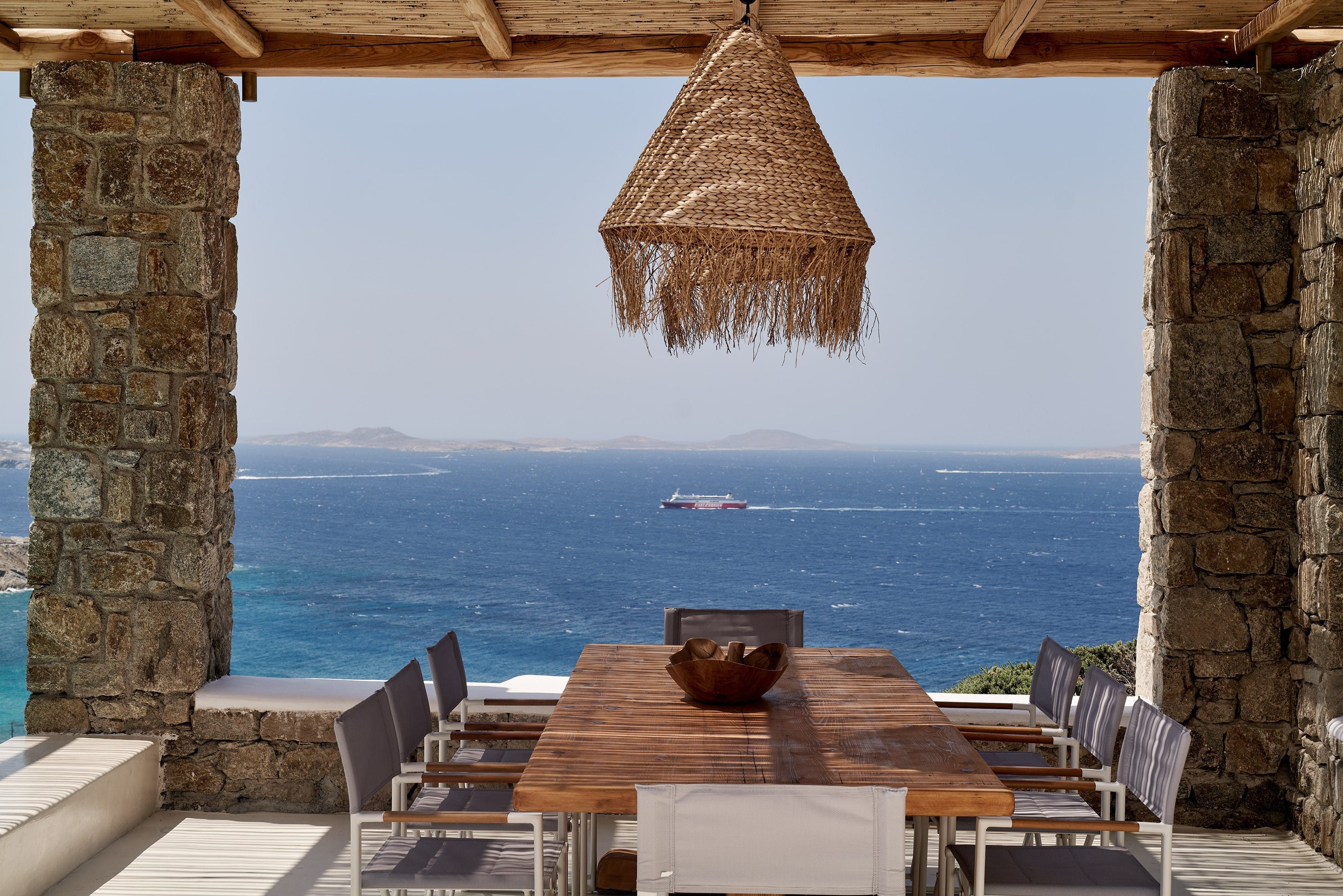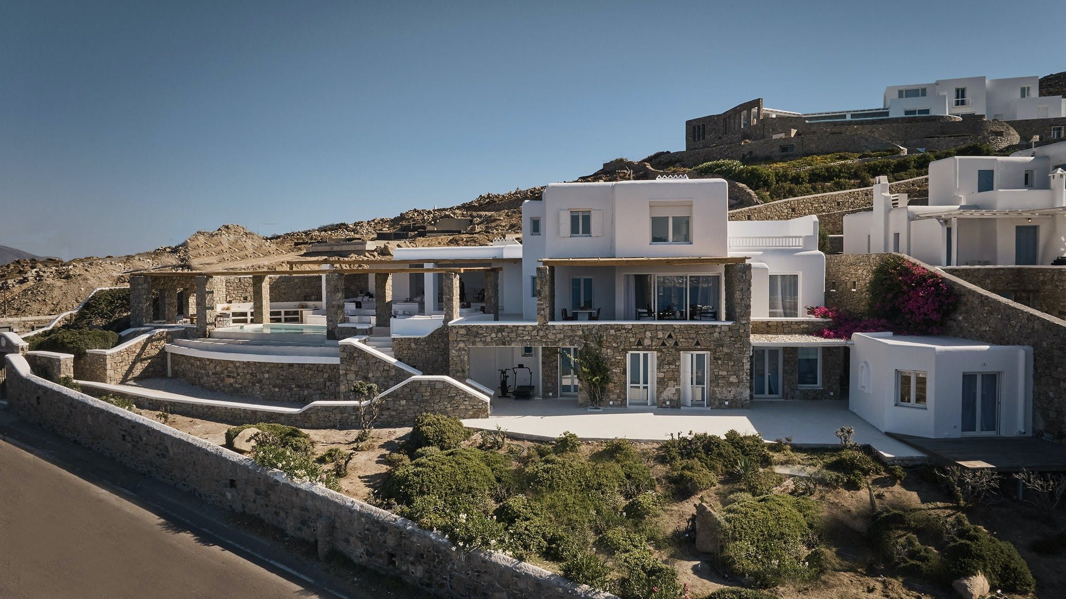 A fully renovated Μykonian luxury property situated in the serene area of Houlakia, located just 5.5 km from the picturesque Mykonos Town. The villa, now renamed 'Les Cyclades', enjoys a magnificent view of the ancient Delos & Rhenia islands, as well as the neighboring Tinos Island. This bohemian-style retreat blends modern amenities with minimalist Cycladic architecture, providing guests with an exclusive and private accommodation experience. The property's advantageous location on the western part of Mykonos offers stunning sunset views over the Aegean Sea and an unforgettable panorama. 'Les Cyclades' features a large infinity pool, perfect for a refreshing dip while enjoying the breathtaking view. With spacious outdoor areas, built-in sunbeds and lounges, guests can relax and soak up the Mediterranean sun. The villa unfolds over three levels, offering luxurious bedrooms with ensuite bathrooms and terraces that capture the island's captivating beauty.