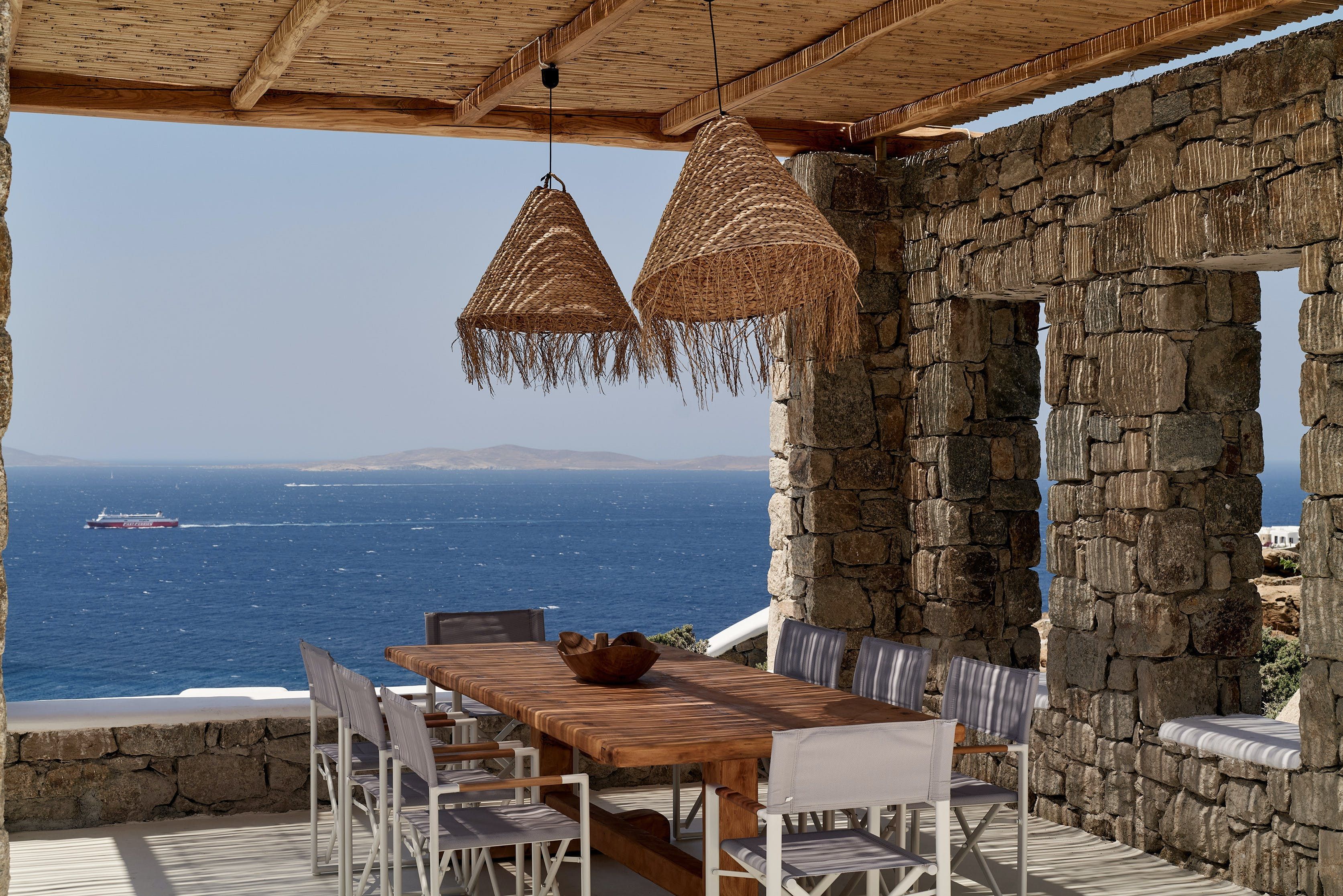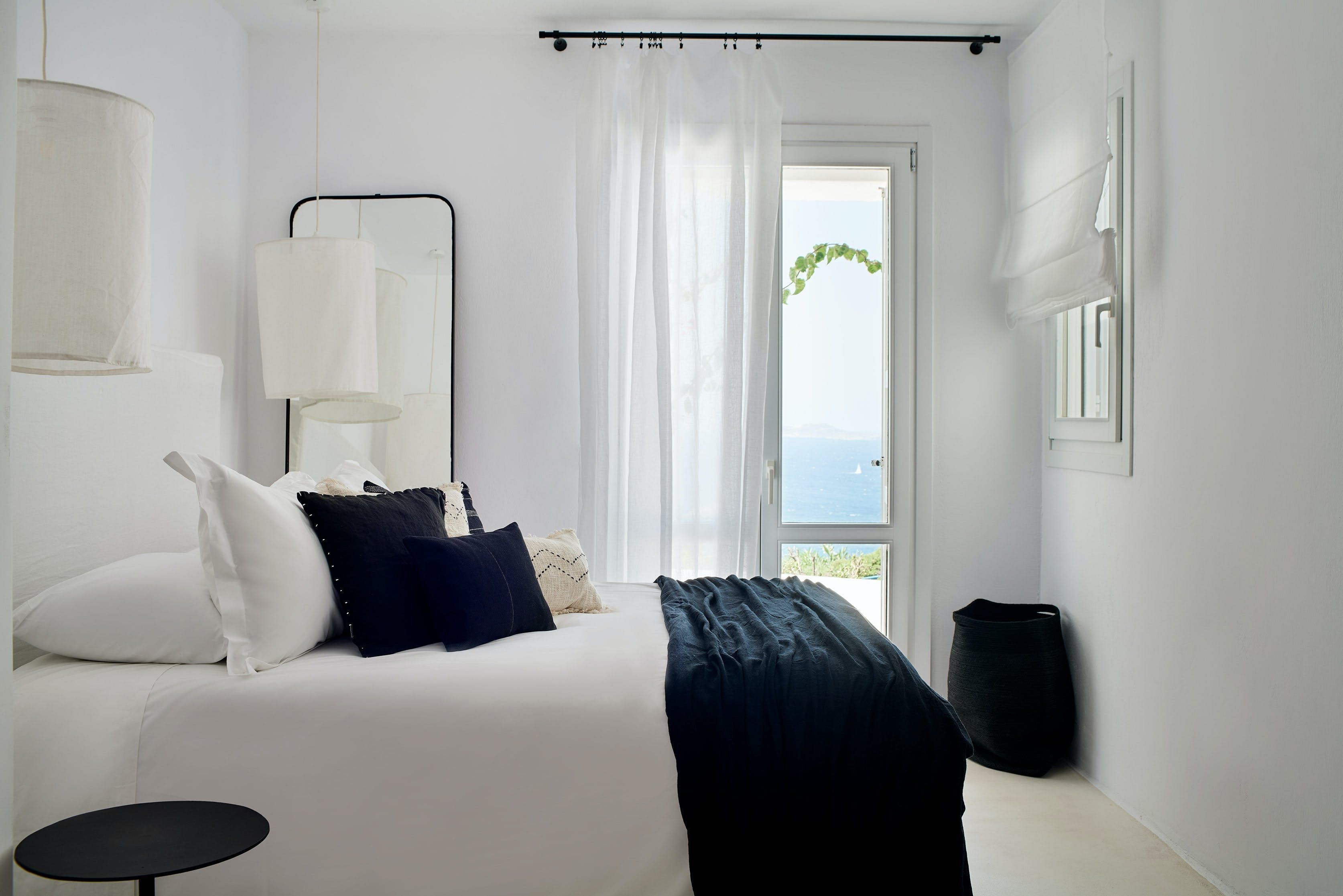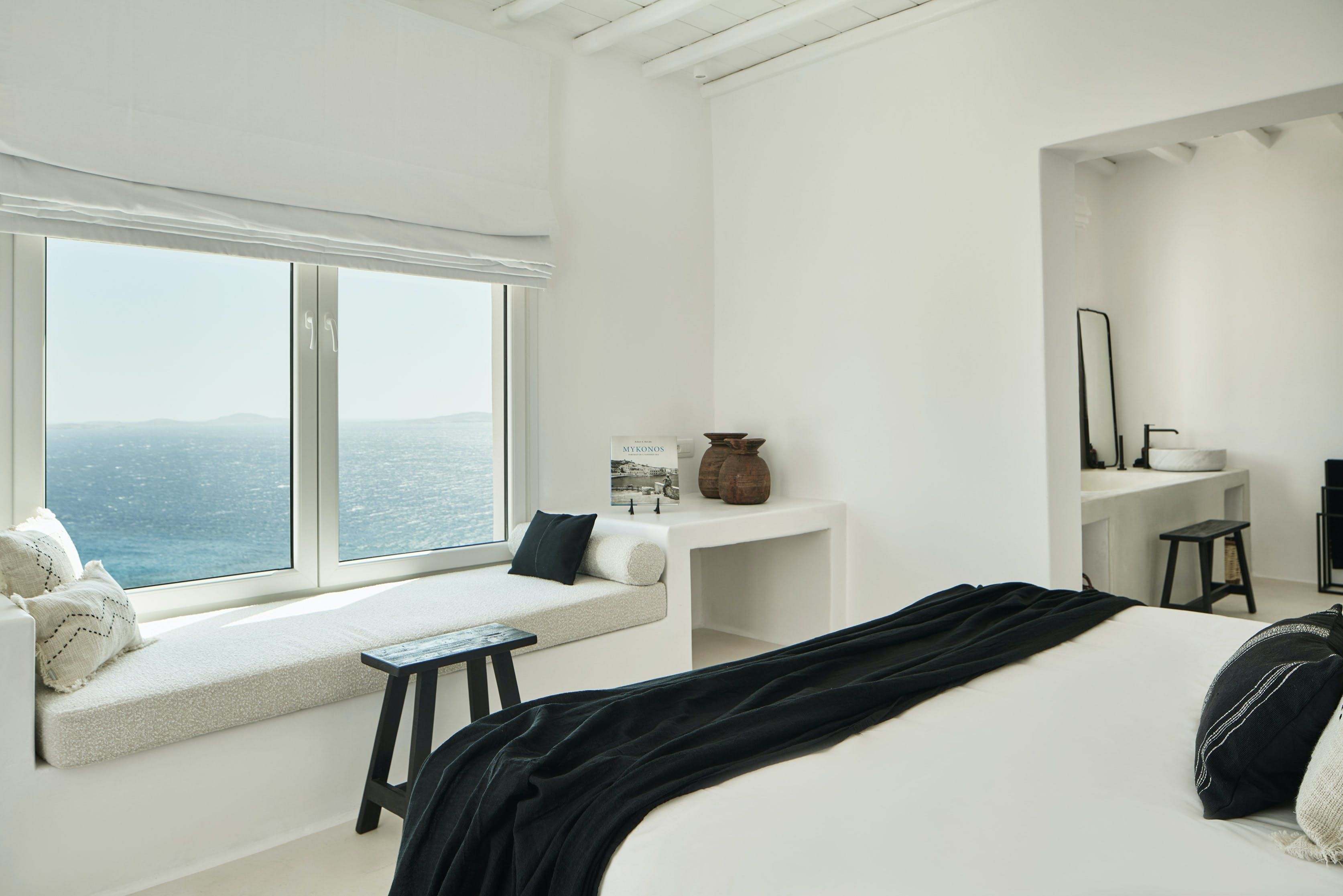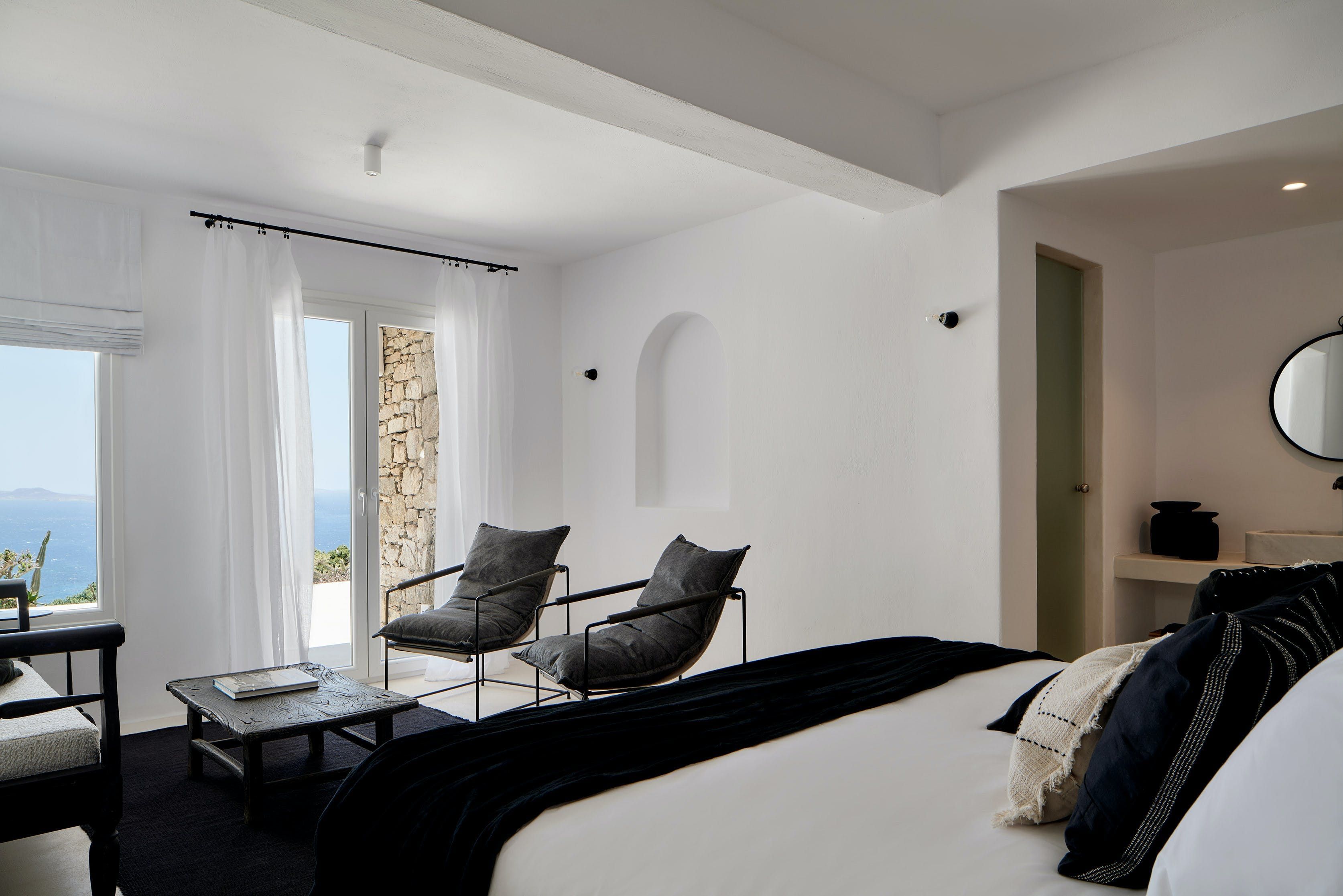 A fully renovated Μykonian luxury property situated in the serene area of Houlakia, located just 5.5 km from the picturesque Mykonos Town. The villa, now renamed 'Les Cyclades', enjoys a magnificent view of the ancient Delos & Rhenia islands, as well as the neighboring Tinos Island. This bohemian-style retreat blends modern amenities with minimalist Cycladic architecture, providing guests with an exclusive and private accommodation experience. The property's advantageous location on the western part of Mykonos offers stunning sunset views over the Aegean Sea and an unforgettable panorama. 'Les Cyclades' features a large infinity pool, perfect for a refreshing dip while enjoying the breathtaking view. With spacious outdoor areas, built-in sunbeds and lounges, guests can relax and soak up the Mediterranean sun. The villa unfolds over three levels, offering luxurious bedrooms with ensuite bathrooms and terraces that capture the island's captivating beauty.