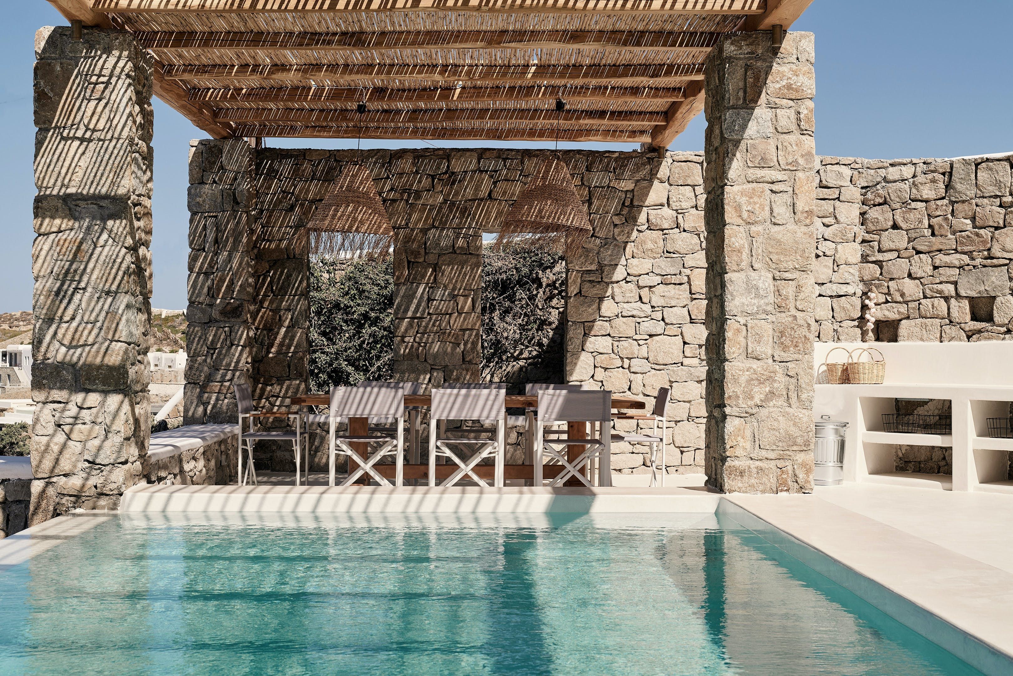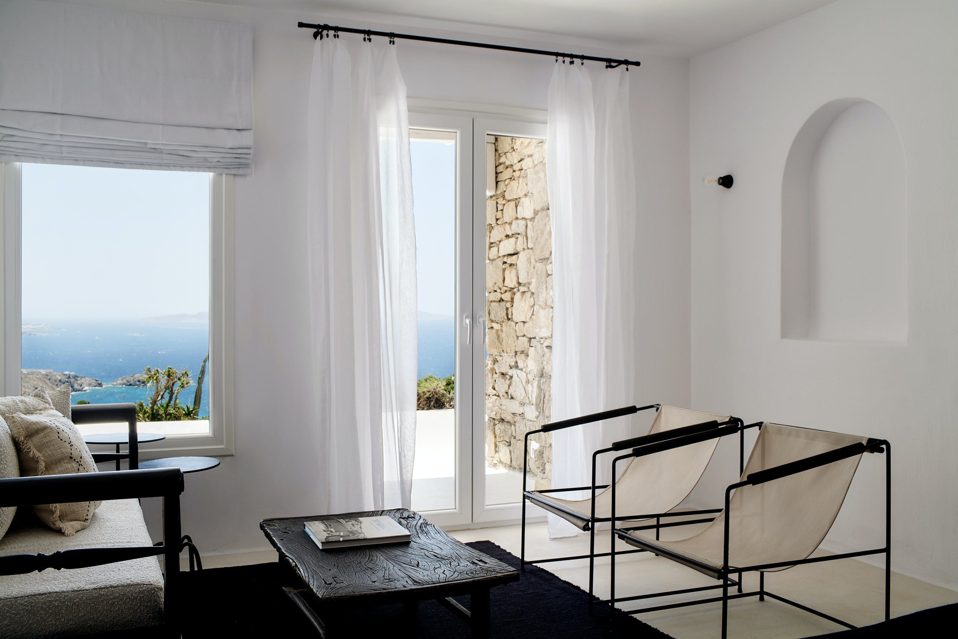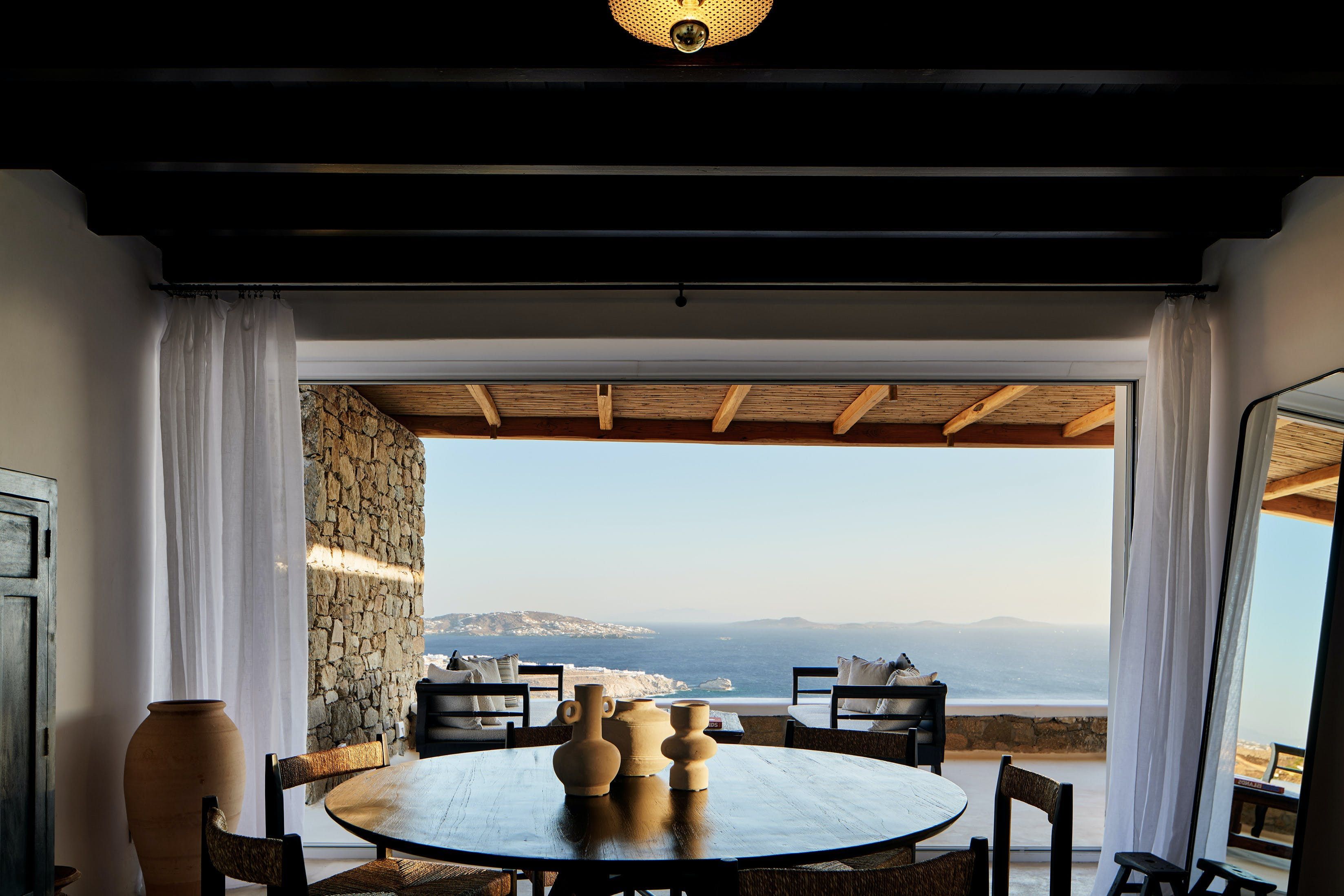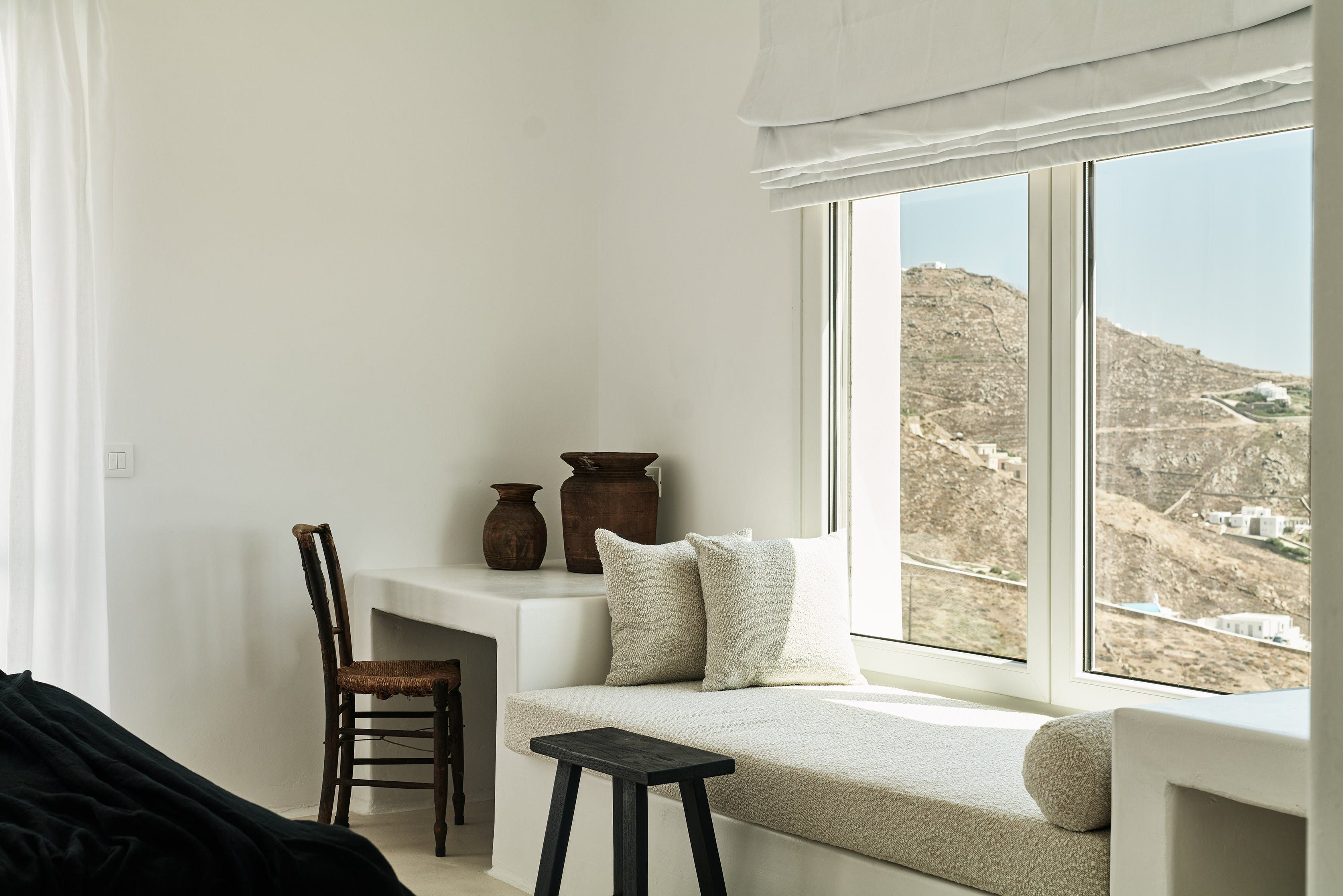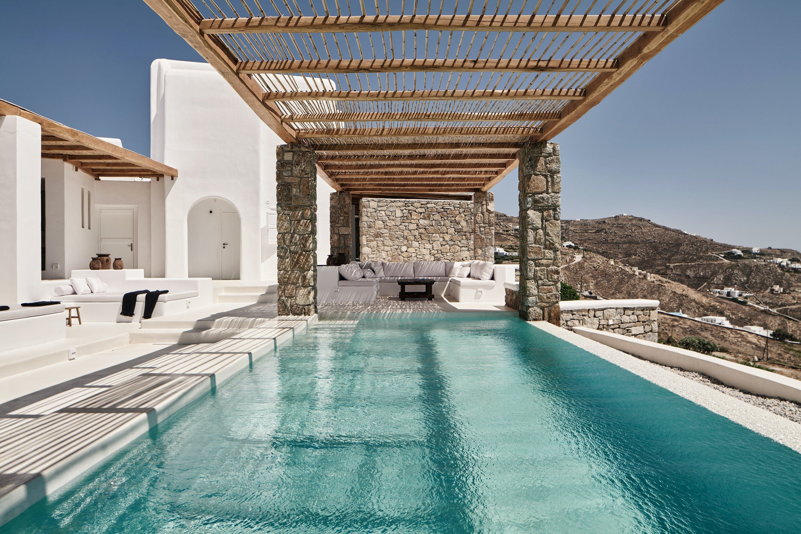 A fully renovated Μykonian luxury property situated in the serene area of Houlakia, located just 5.5 km from the picturesque Mykonos Town. The villa, now renamed 'Les Cyclades', enjoys a magnificent view of the ancient Delos & Rhenia islands, as well as the neighboring Tinos Island. This bohemian-style retreat blends modern amenities with minimalist Cycladic architecture, providing guests with an exclusive and private accommodation experience. The property's advantageous location on the western part of Mykonos offers stunning sunset views over the Aegean Sea and an unforgettable panorama. 'Les Cyclades' features a large infinity pool, perfect for a refreshing dip while enjoying the breathtaking view. With spacious outdoor areas, built-in sunbeds and lounges, guests can relax and soak up the Mediterranean sun. The villa unfolds over three levels, offering luxurious bedrooms with ensuite bathrooms and terraces that capture the island's captivating beauty.