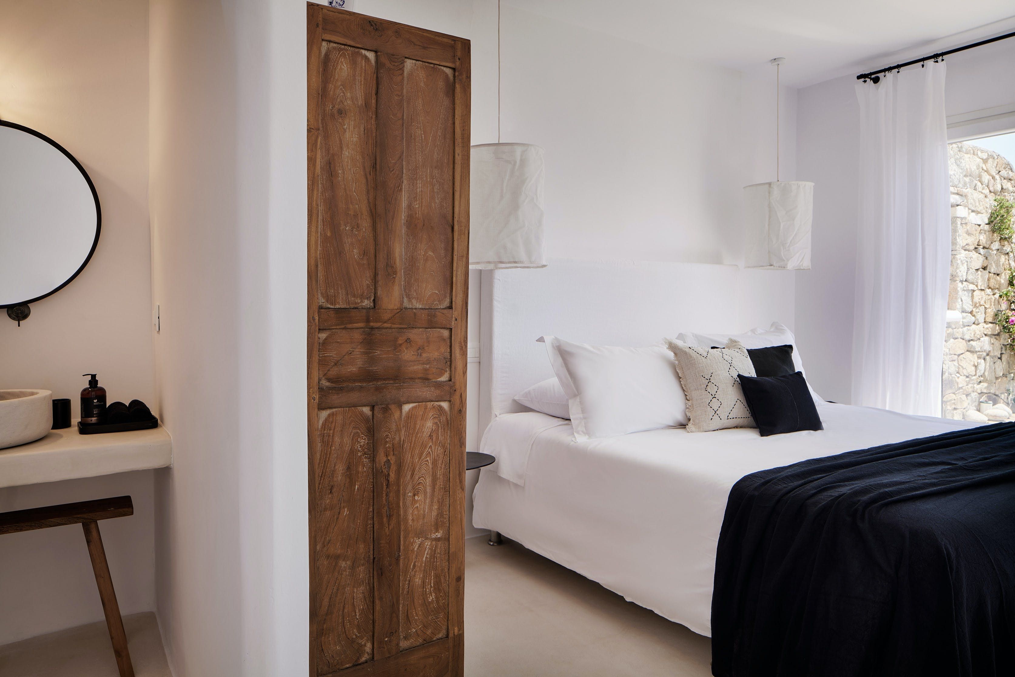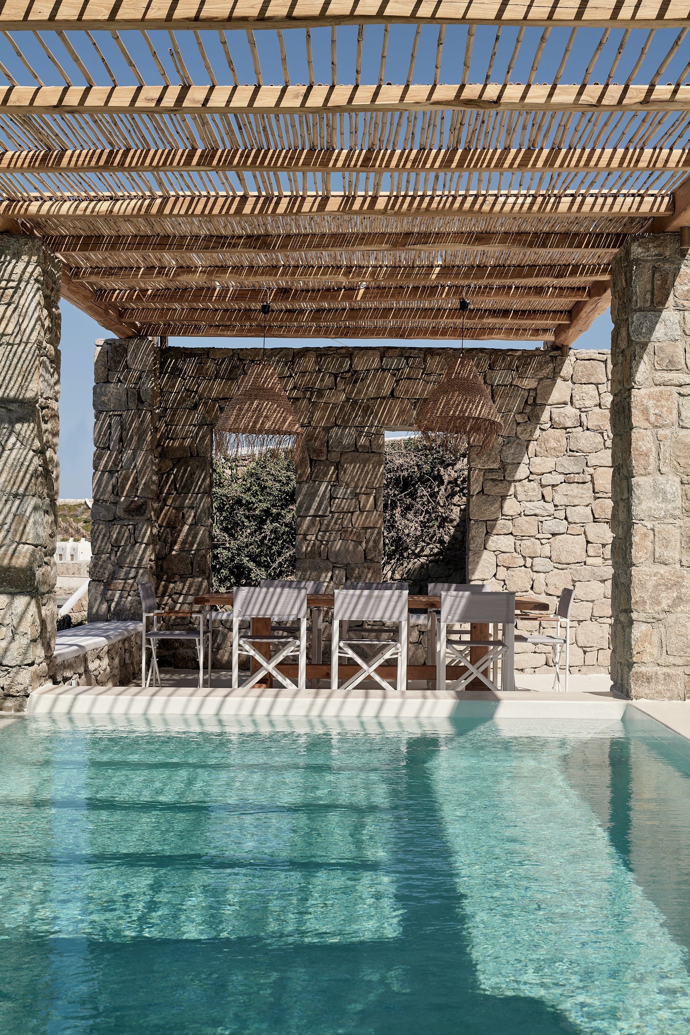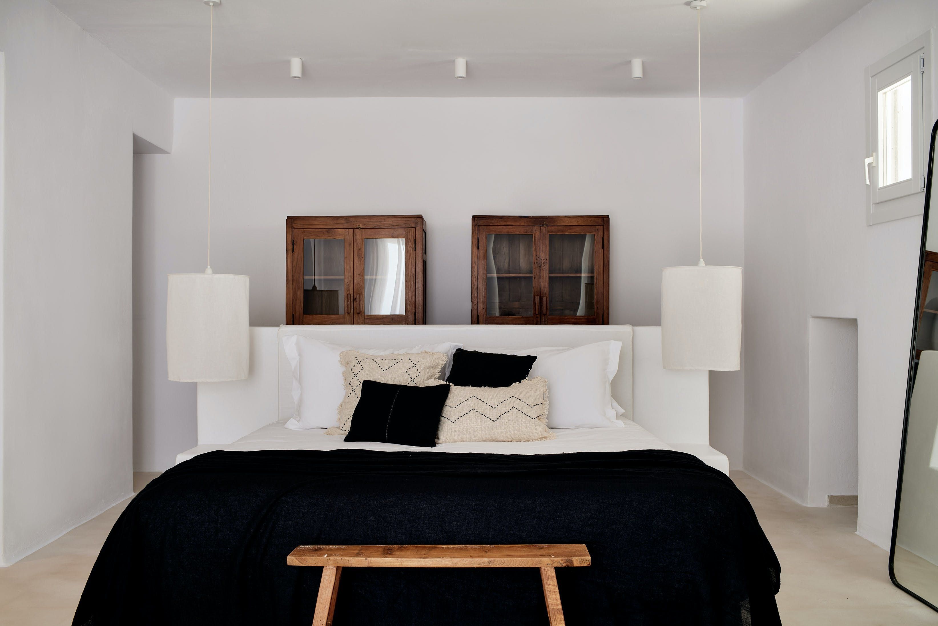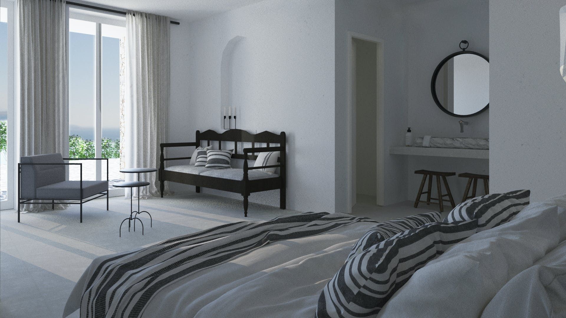 A fully renovated Μykonian luxury property situated in the serene area of Houlakia, located just 5.5 km from the picturesque Mykonos Town. The villa, now renamed 'Les Cyclades', enjoys a magnificent view of the ancient Delos & Rhenia islands, as well as the neighboring Tinos Island. This bohemian-style retreat blends modern amenities with minimalist Cycladic architecture, providing guests with an exclusive and private accommodation experience. The property's advantageous location on the western part of Mykonos offers stunning sunset views over the Aegean Sea and an unforgettable panorama. 'Les Cyclades' features a large infinity pool, perfect for a refreshing dip while enjoying the breathtaking view. With spacious outdoor areas, built-in sunbeds and lounges, guests can relax and soak up the Mediterranean sun. The villa unfolds over three levels, offering luxurious bedrooms with ensuite bathrooms and terraces that capture the island's captivating beauty.