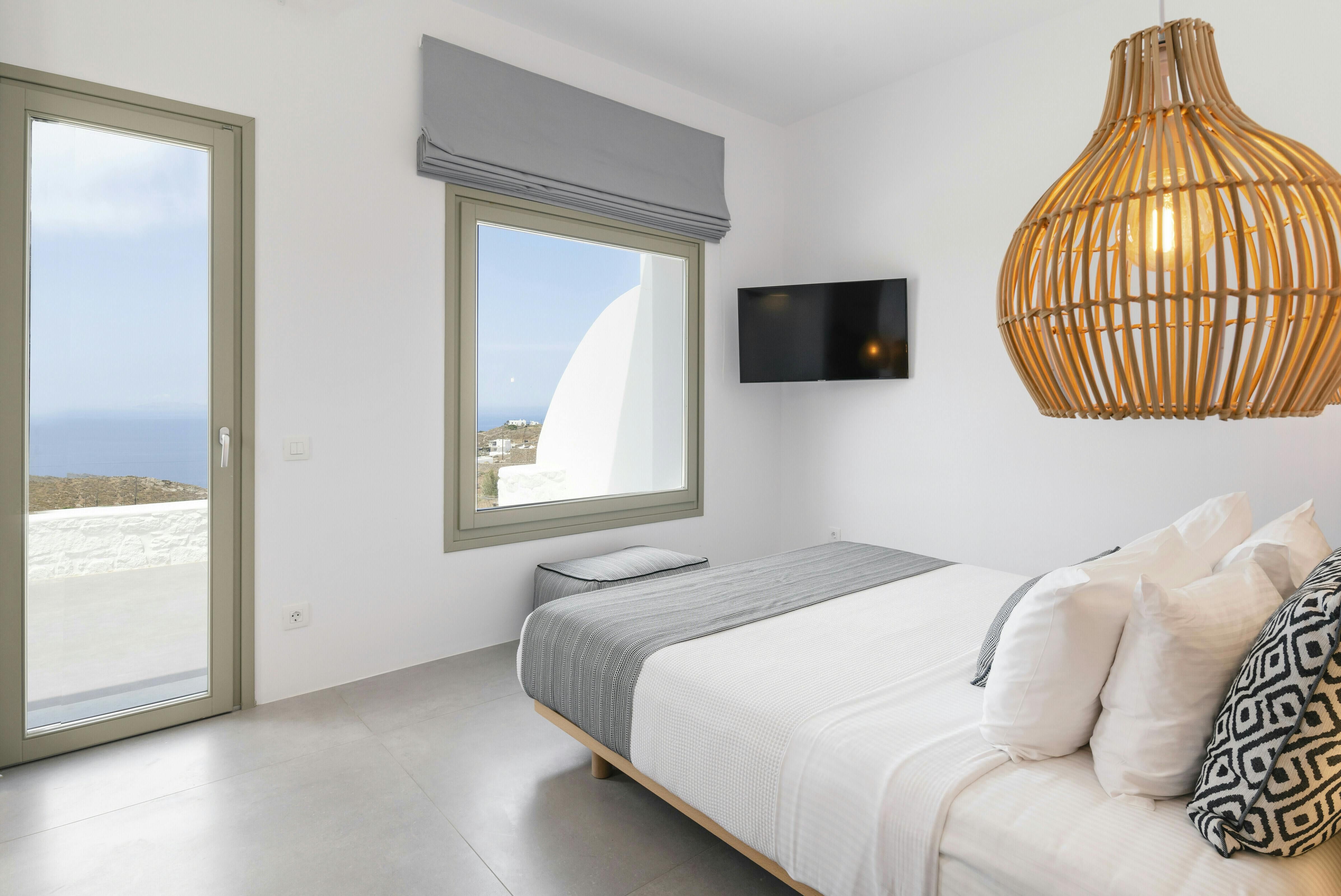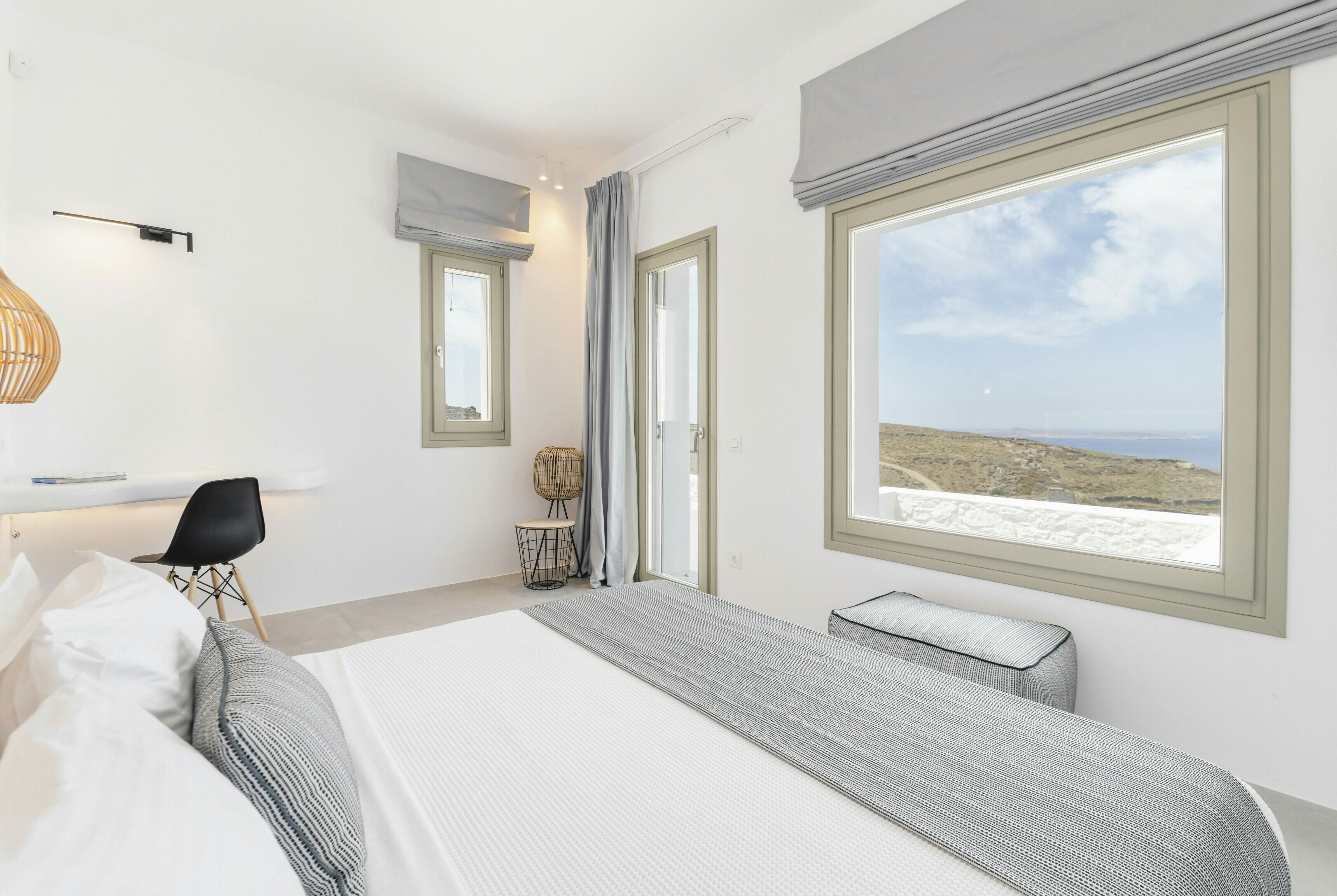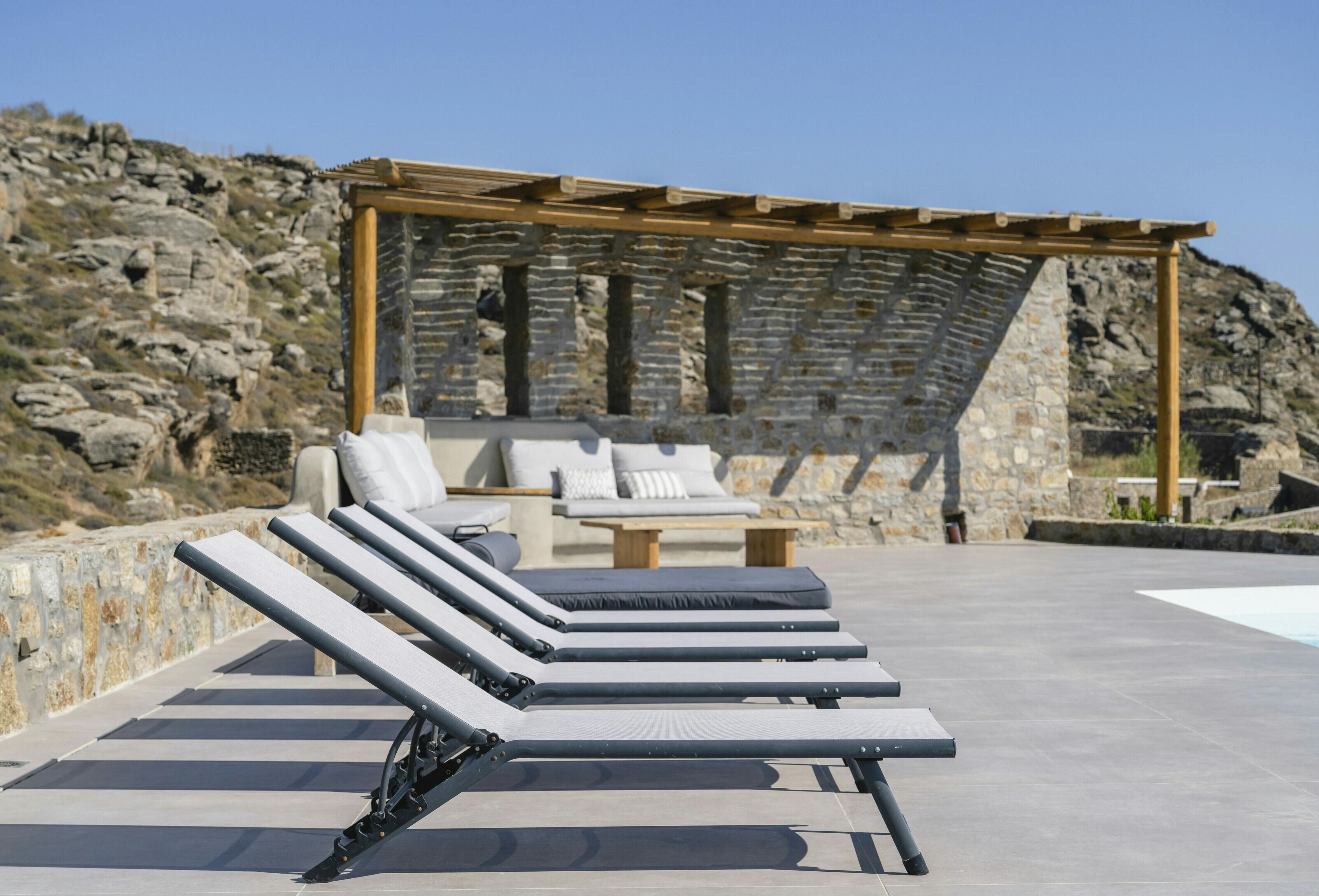 Away from the island's party hubs, this chic clifftop villa in Faros Armenistis is perfectly equipped for basking in the island sunshine. On the expansive terrace, there are spots for sunbathing, dining, and sipping cocktails – all accompanied by Aegean views. The more private lounge areas are tempting for a quiet afternoon – or perhaps you want a break from the sunshine in the hammam or gym? A mini-annexe offers additional privacy for two, and daily housekeeping is the perfect accompaniment to a relaxed break. Nearby, enjoy a hike to picturesque Armenistis Lighthouse, or head down the road to Agios Stefanos for a beach day. Mykonos Town is less than fifteen minutes away, too.