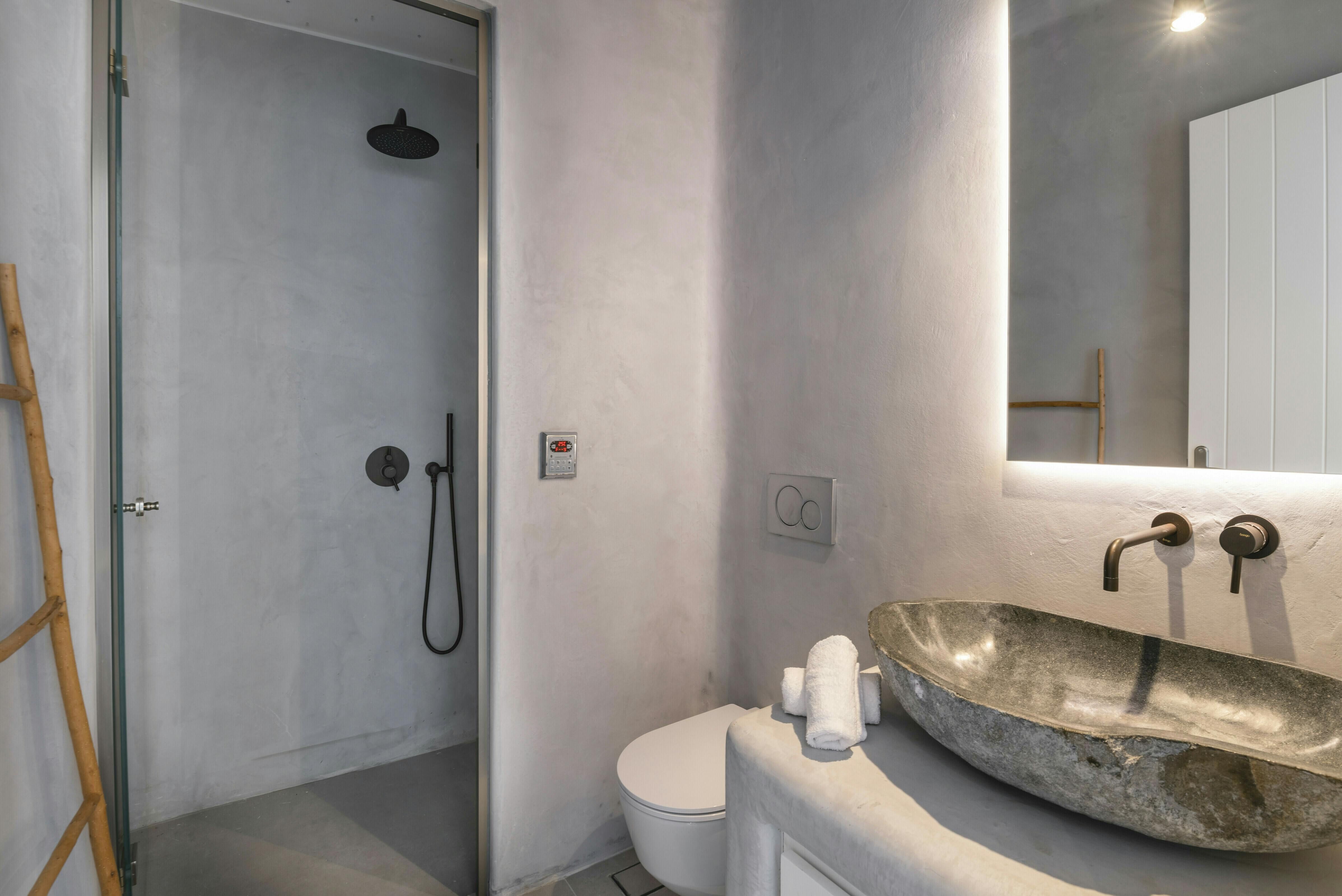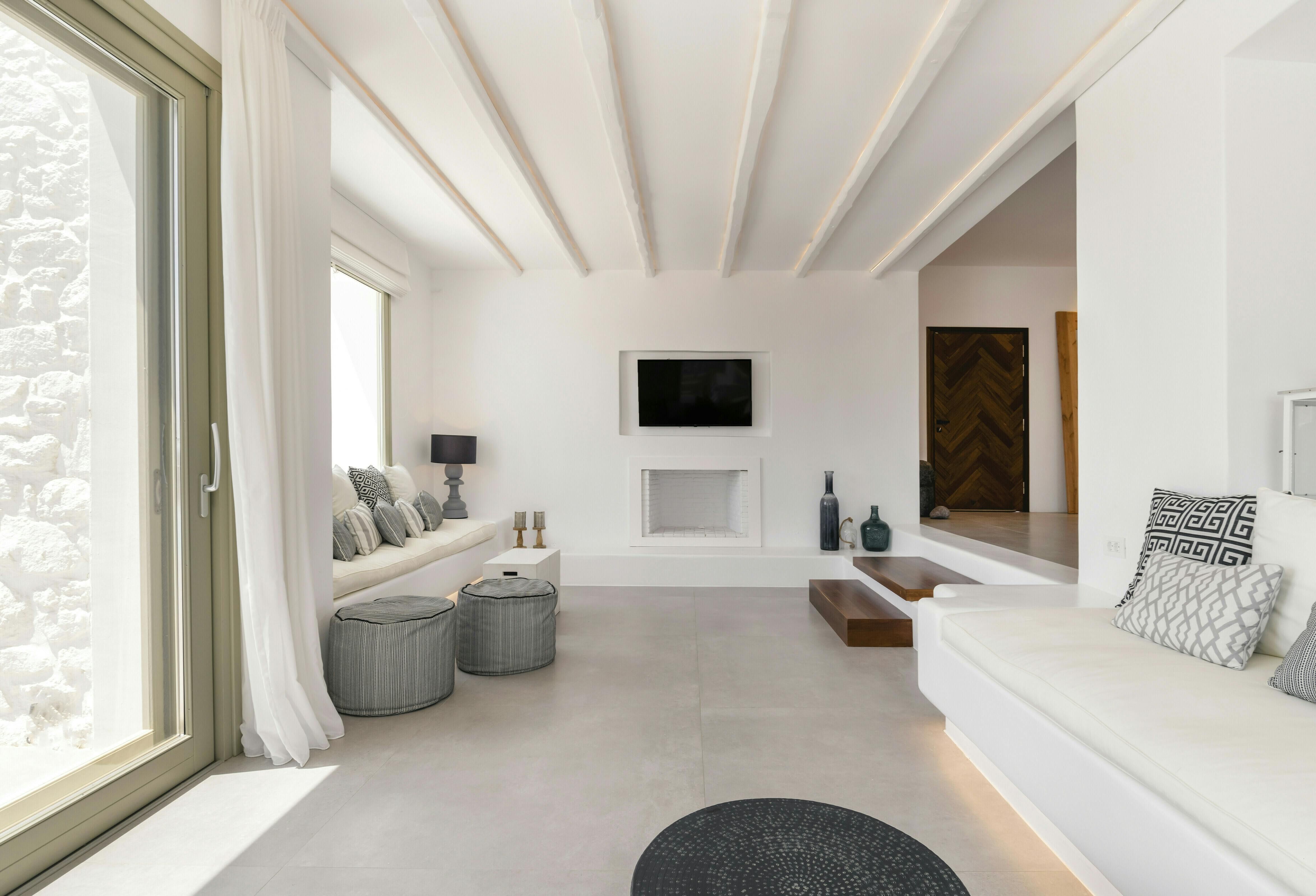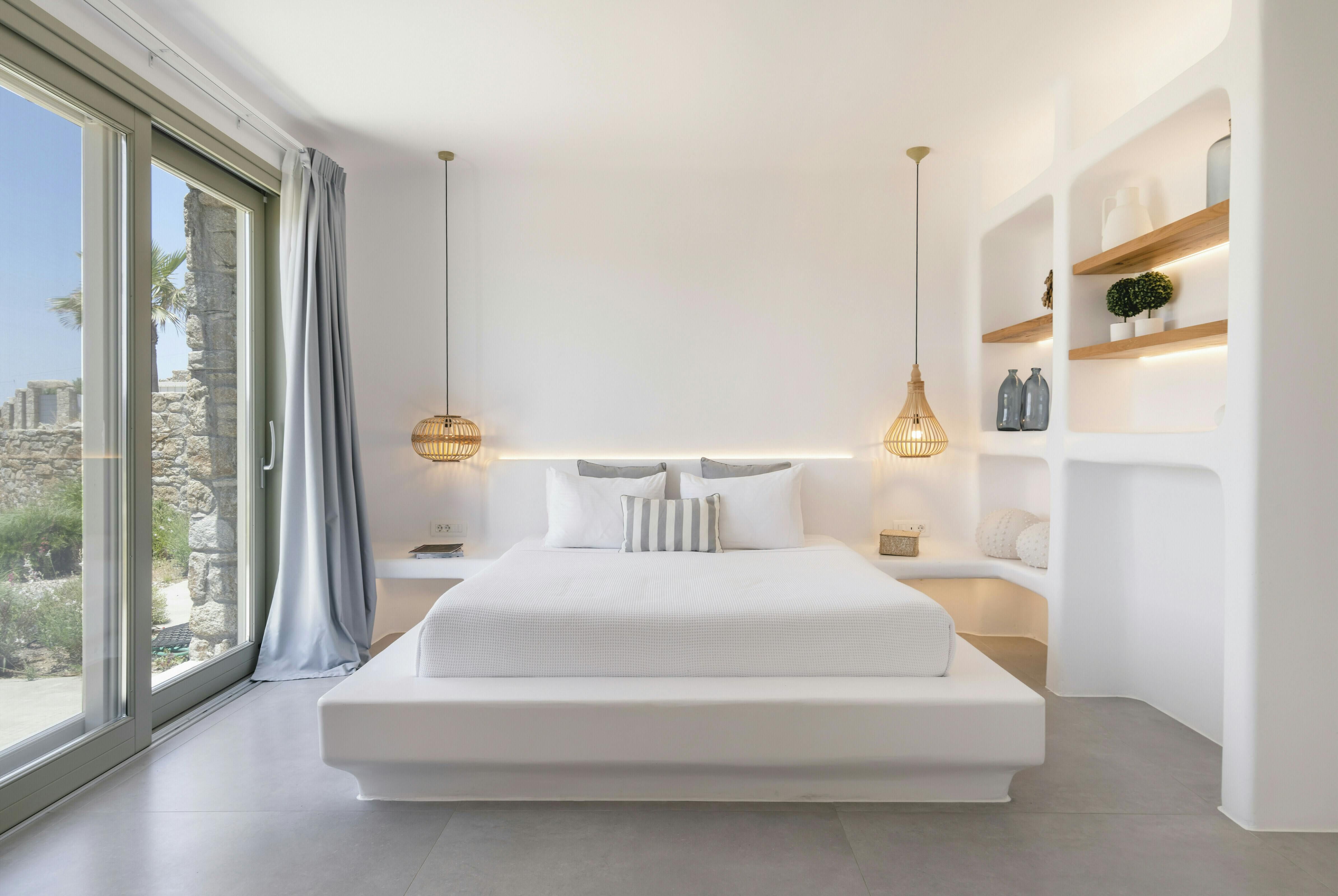 Away from the island's party hubs, this chic clifftop villa in Faros Armenistis is perfectly equipped for basking in the island sunshine. On the expansive terrace, there are spots for sunbathing, dining, and sipping cocktails – all accompanied by Aegean views. The more private lounge areas are tempting for a quiet afternoon – or perhaps you want a break from the sunshine in the hammam or gym? A mini-annexe offers additional privacy for two, and daily housekeeping is the perfect accompaniment to a relaxed break. Nearby, enjoy a hike to picturesque Armenistis Lighthouse, or head down the road to Agios Stefanos for a beach day. Mykonos Town is less than fifteen minutes away, too.
