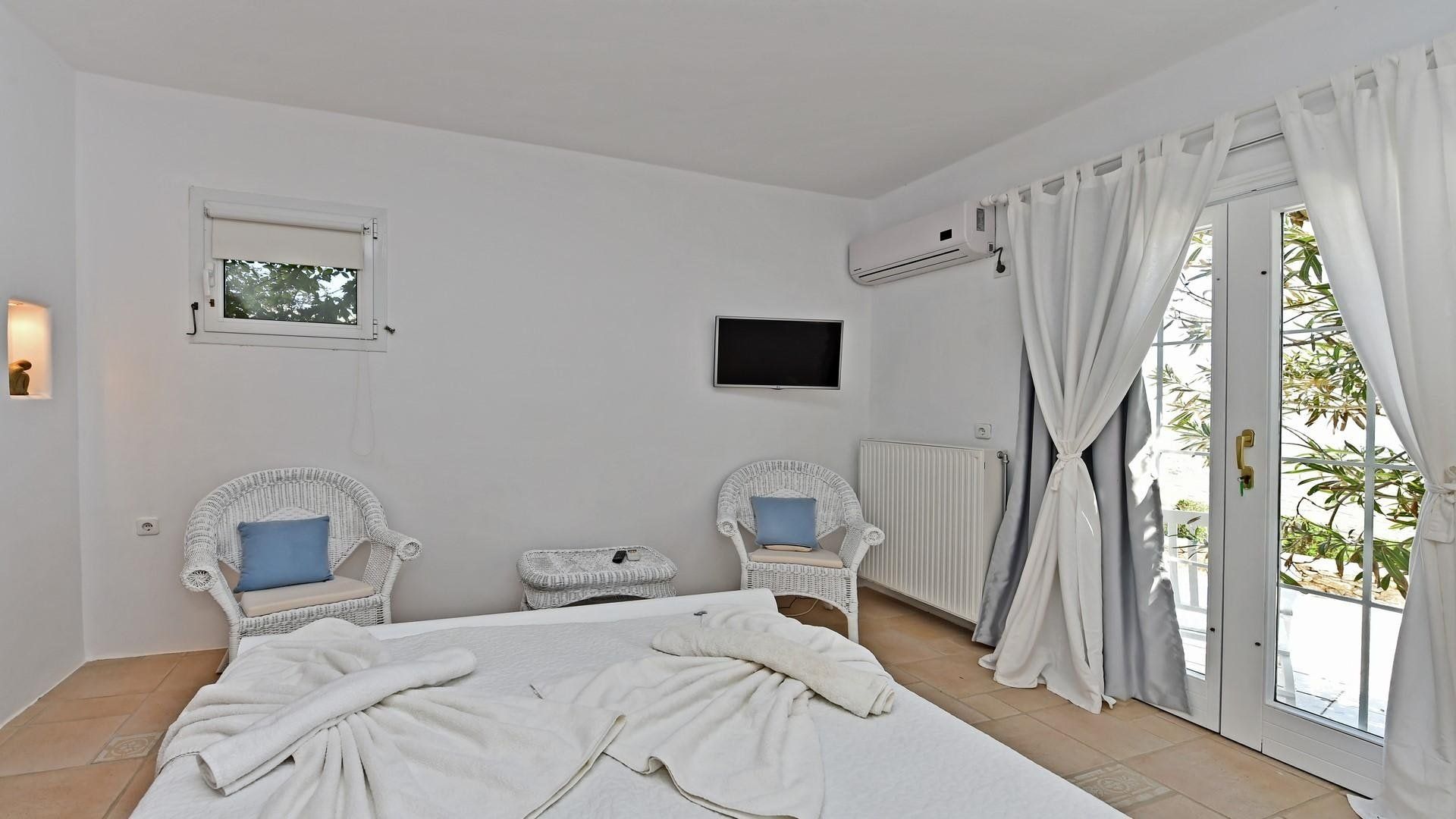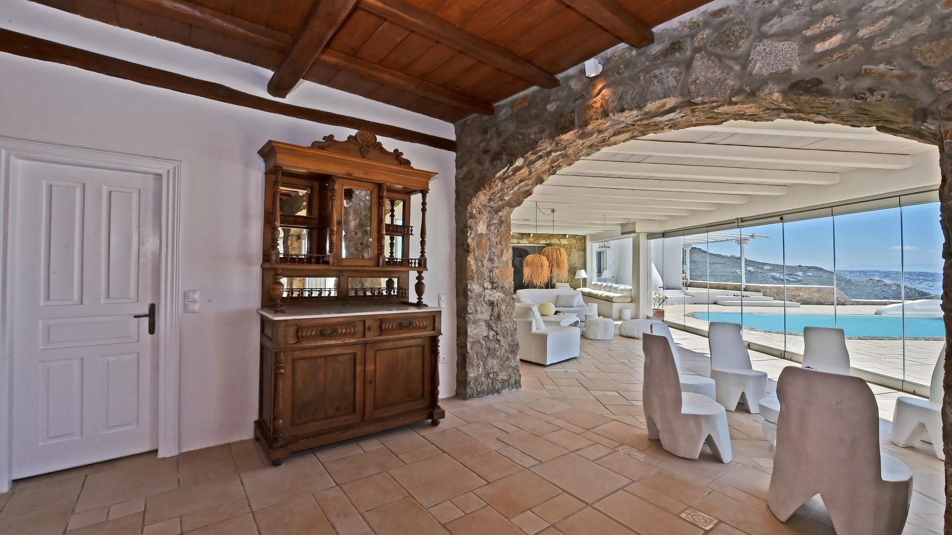 You’re up in the quiet hills of northern Mykonos here, but the lively hub of Mykonos Town is just a ten-minute drive away and Agios Stefanos Beach is a six-minute drive.
