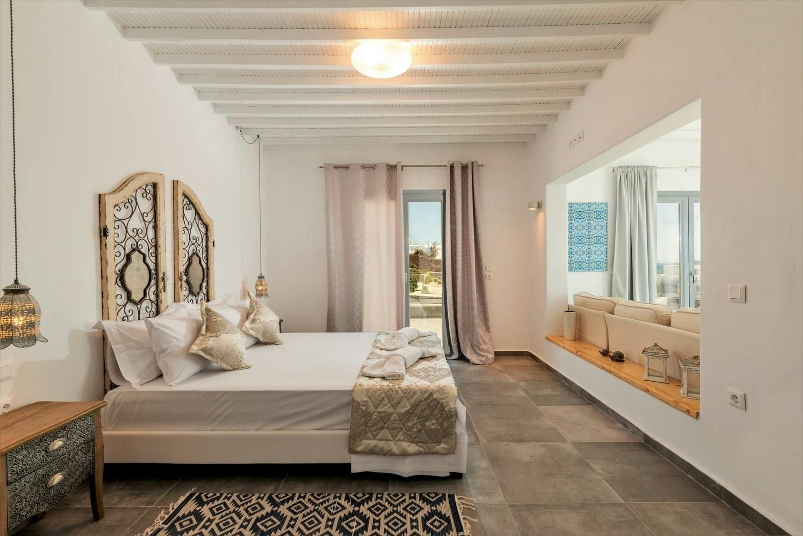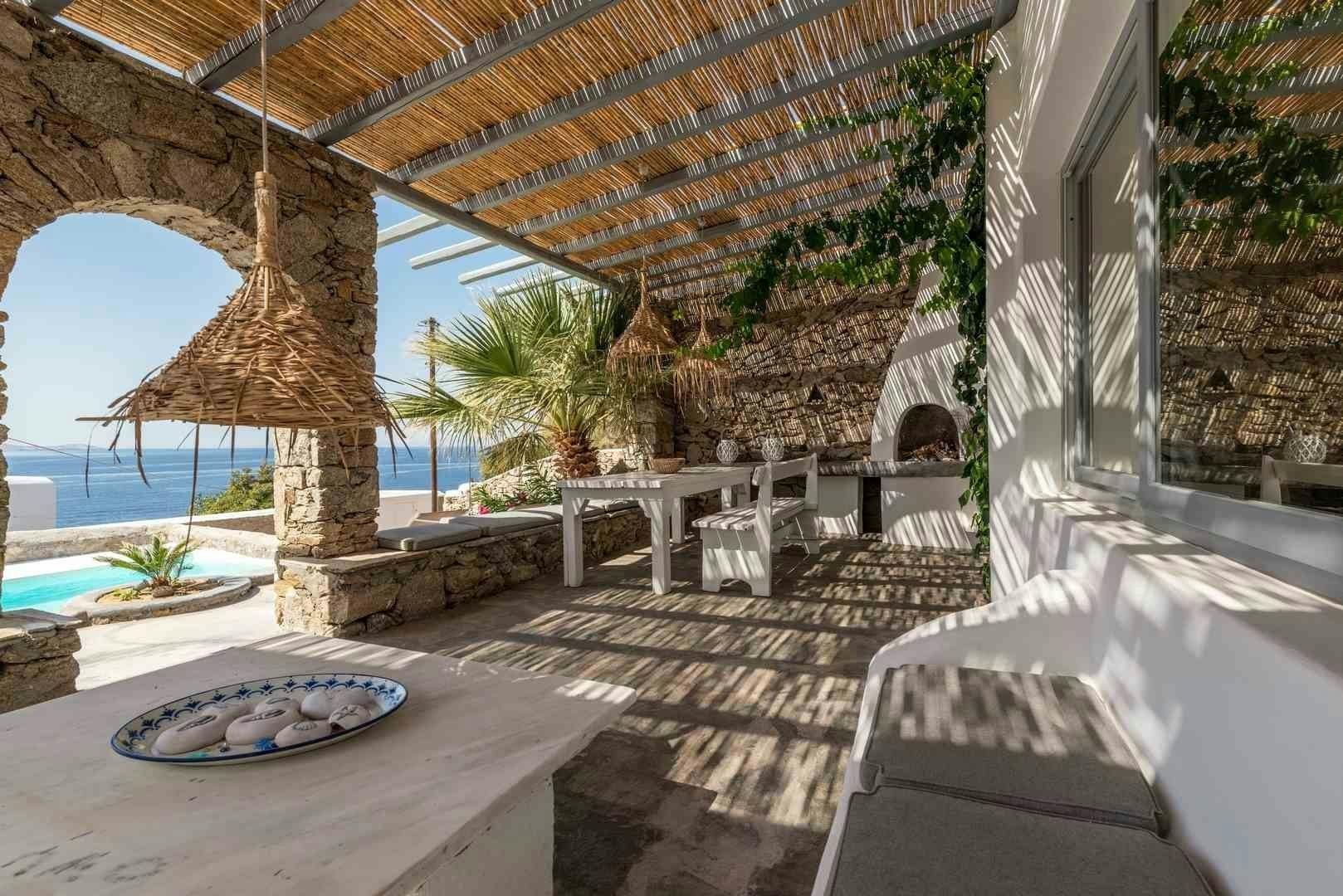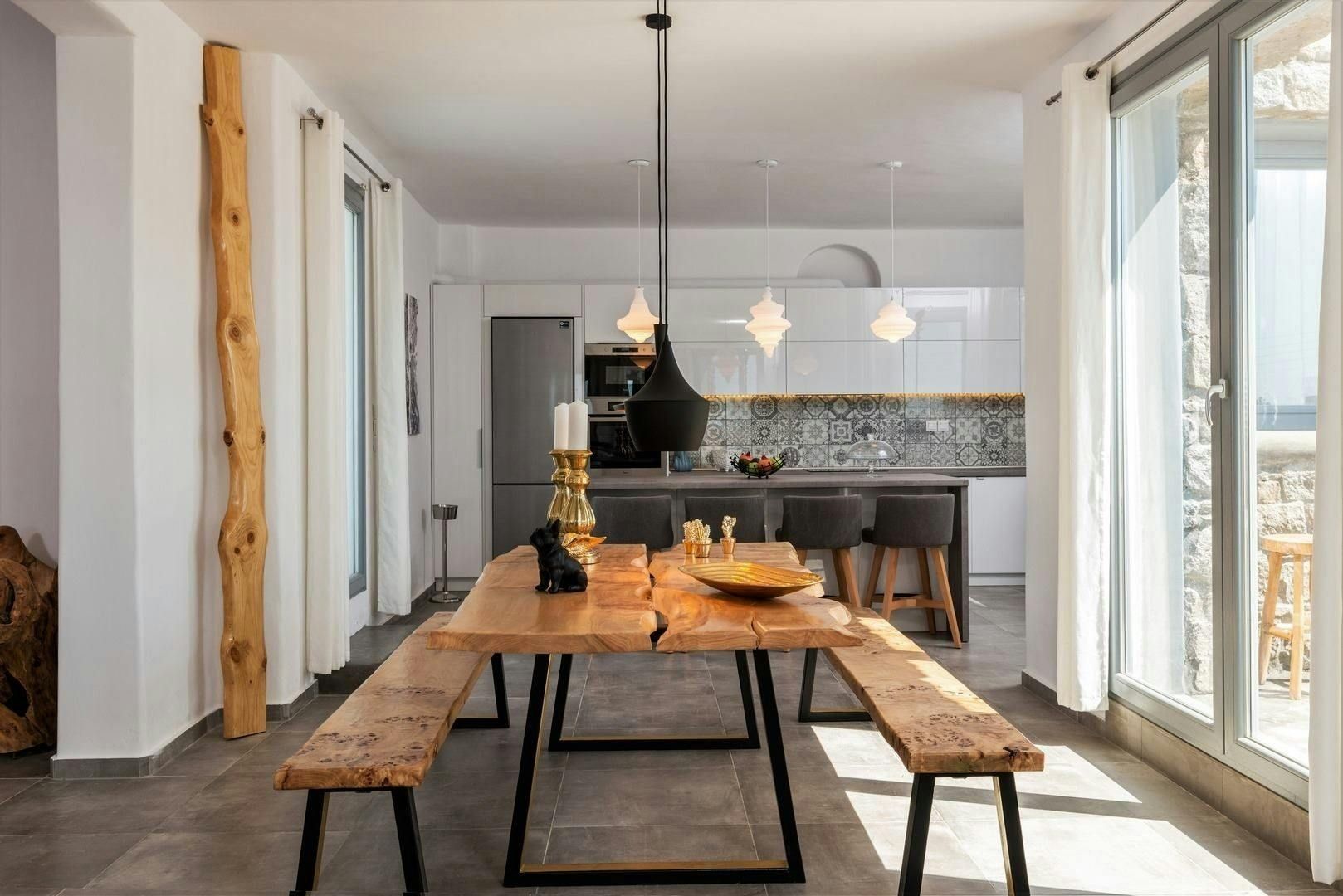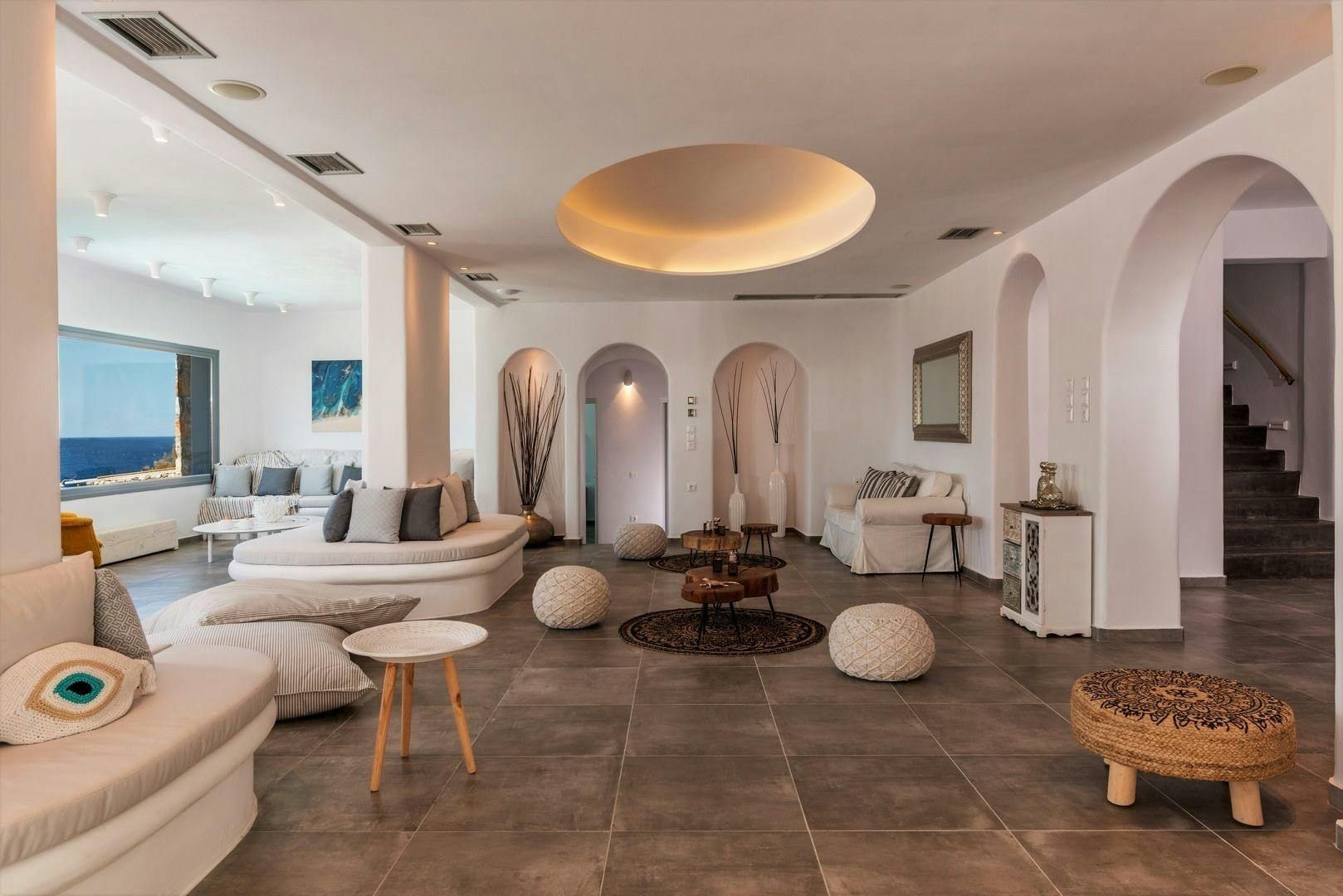For the ultimate island escape, head to this home on the shores of Agios Stefanos. Consisting of two independent villas alongside two guest houses, you’ll find an abundance of space along with two swimming pools and beautiful sea views. There is also an outdoor bar, a sound system and a barbecue – perfect for magical group gatherings under the stars. Exercise enthusiasts will appreciate the on-site gym, while beach lovers will find perfect contentment on the seafront – just a short walk away.